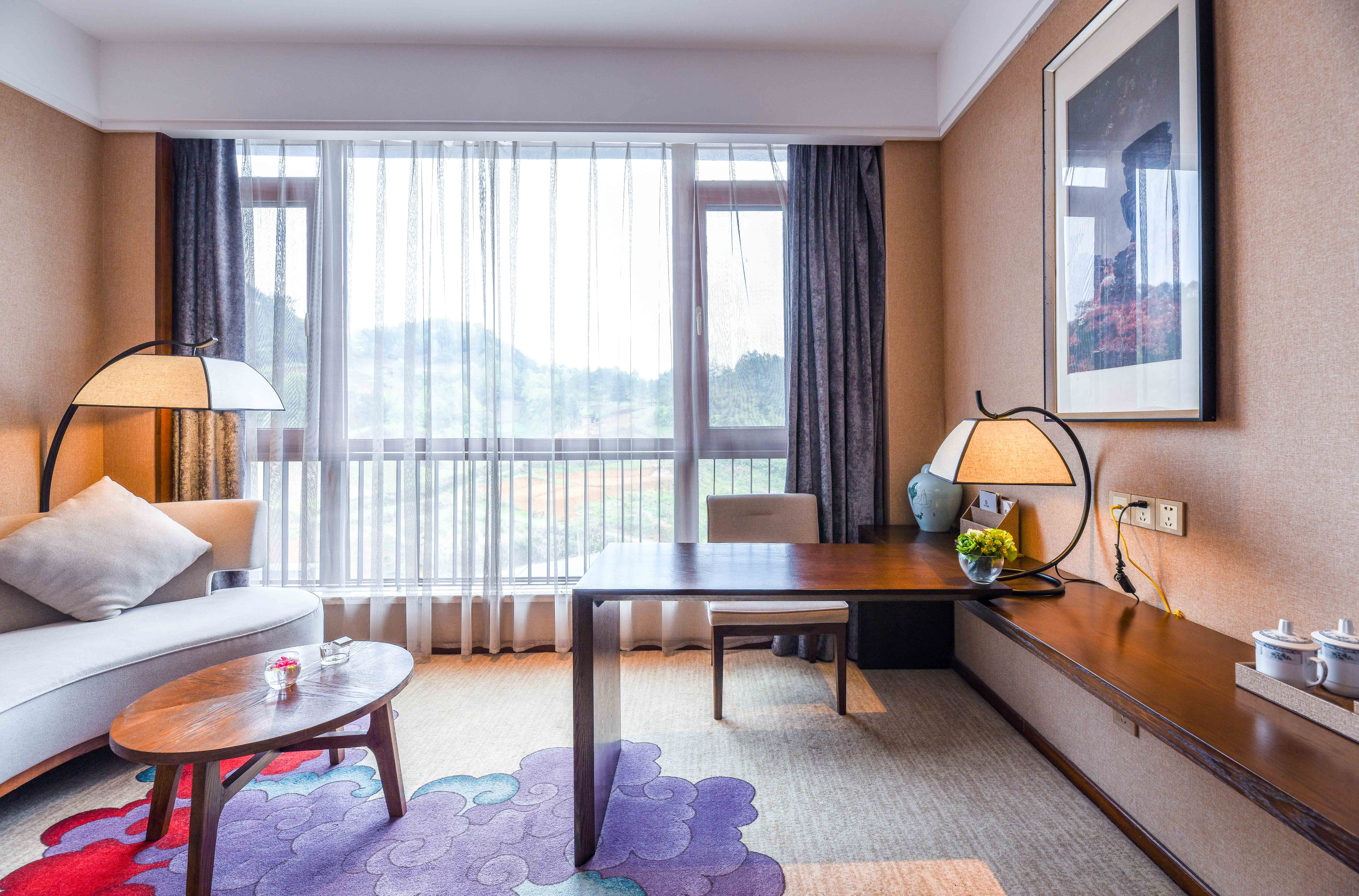 雅奢茶韵大床房【180度全景落地窗+小型冰箱】