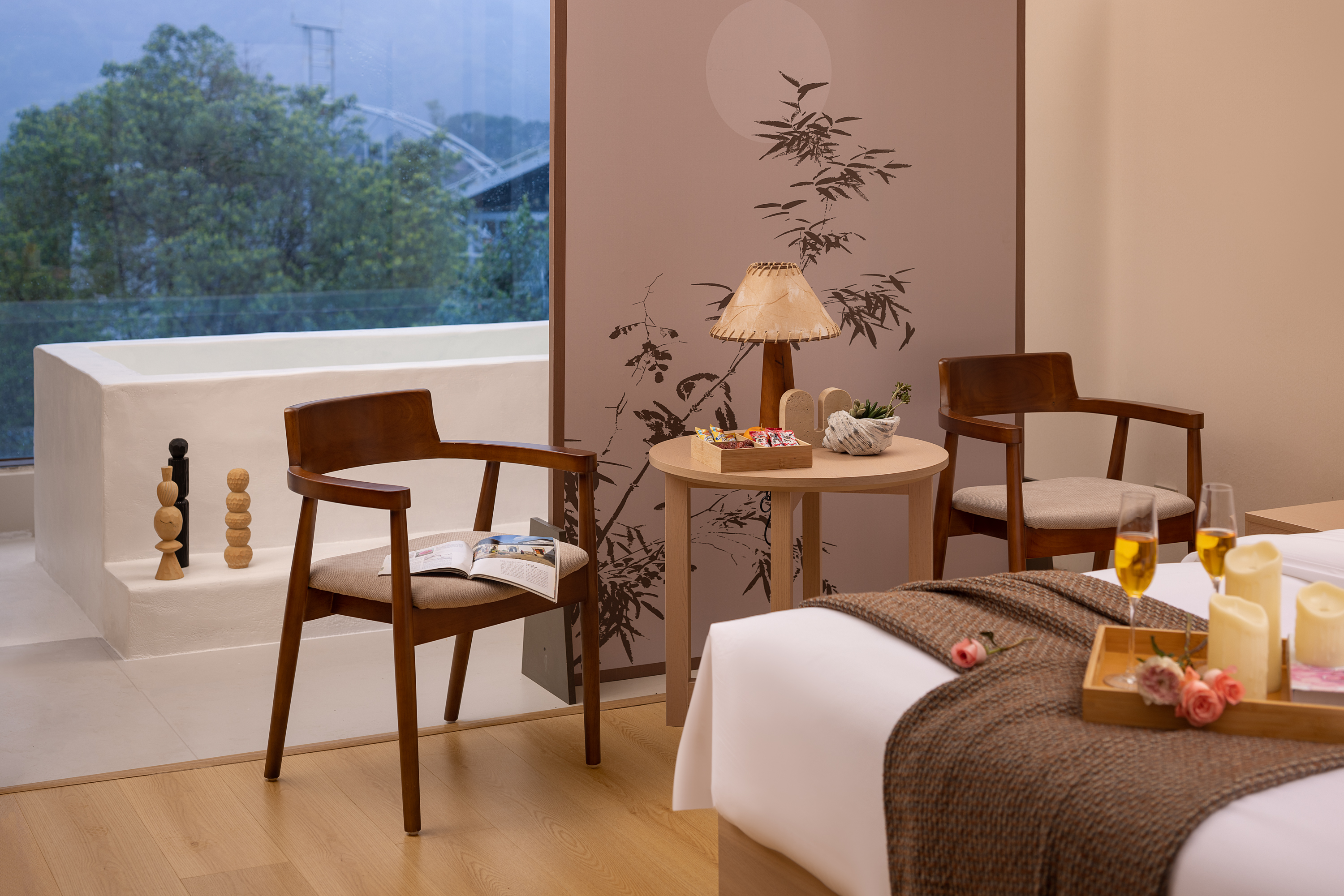Floral Shadow Mountain-View Private Bath Double Bed Room
