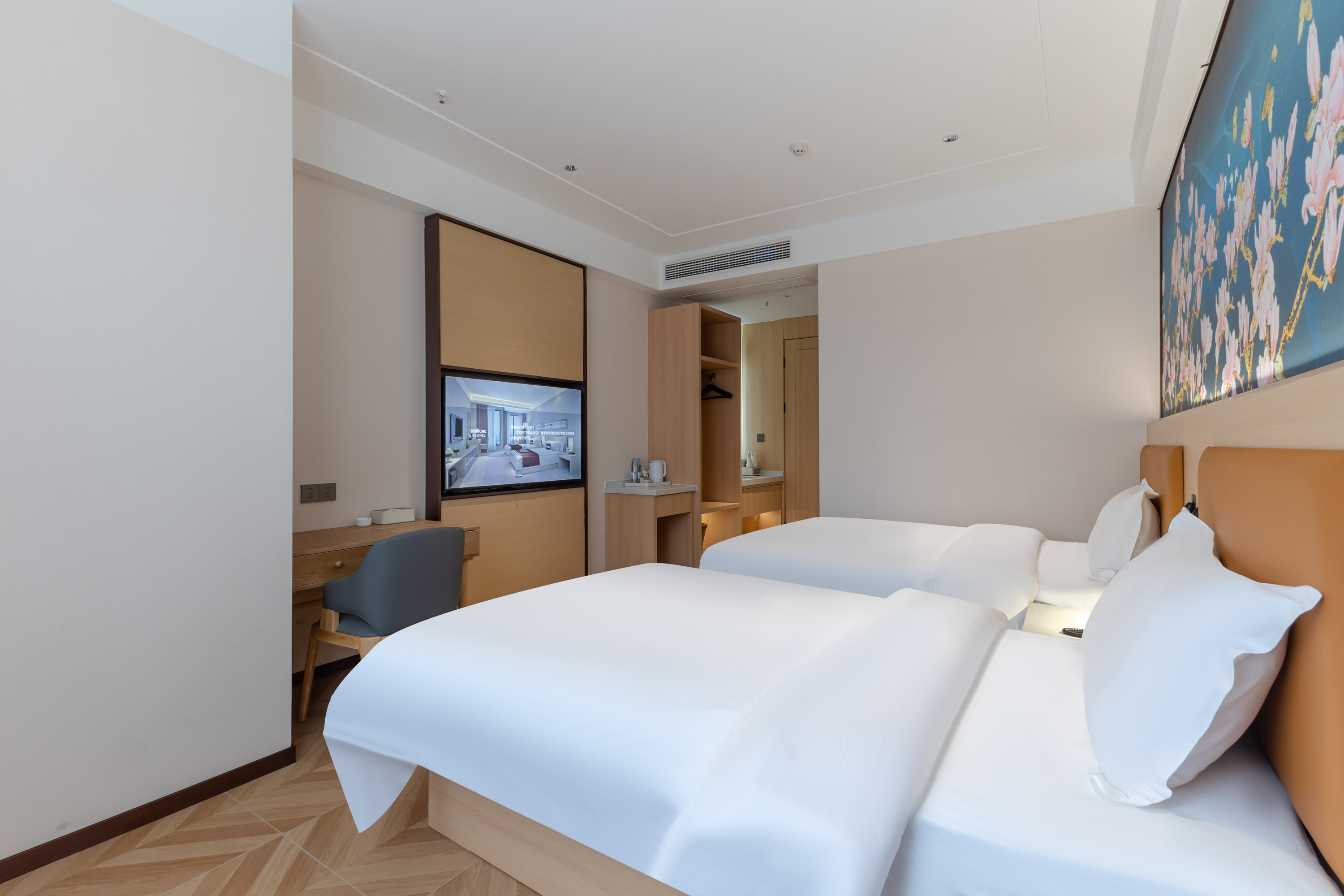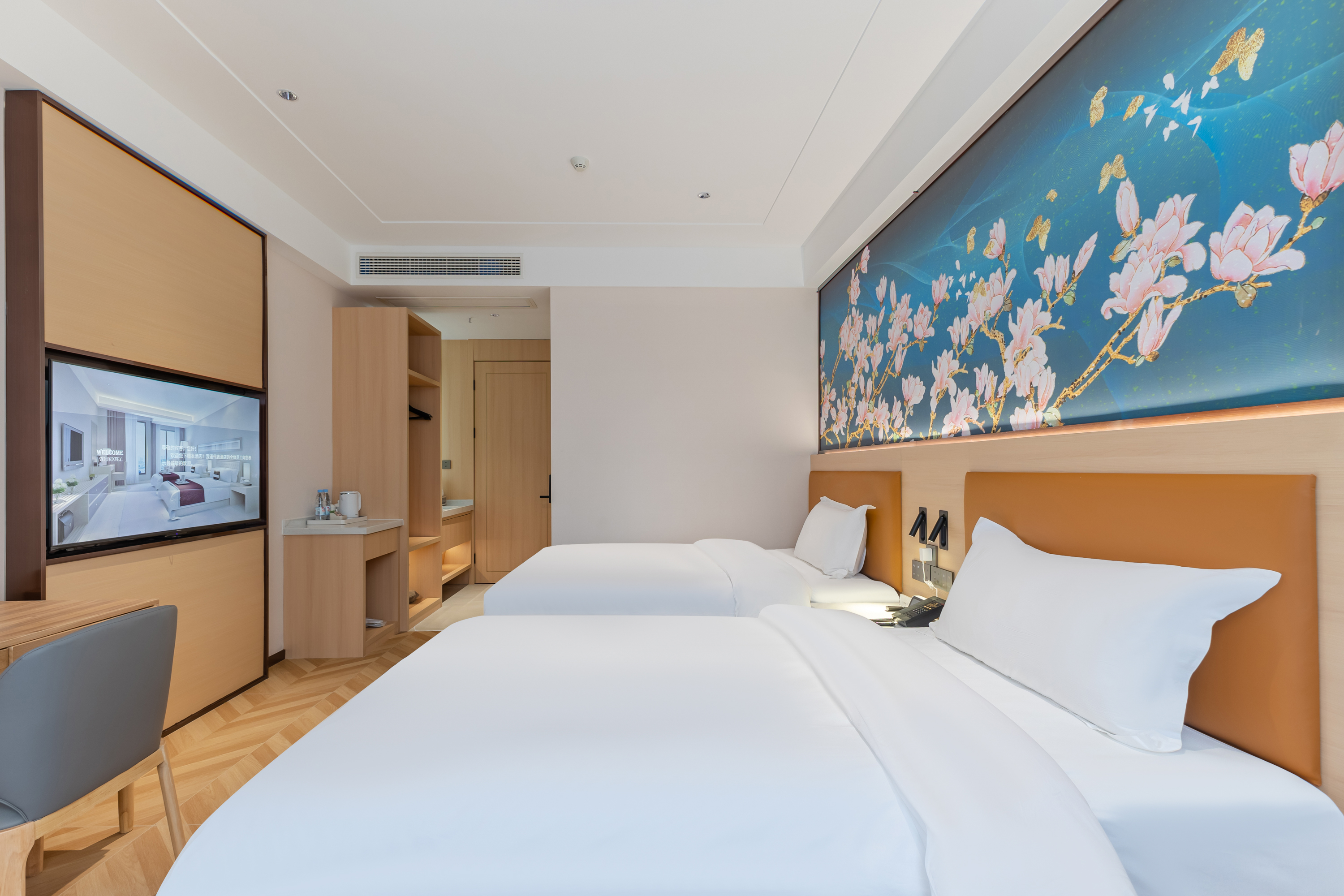 君美·尊享商务双床房|智能语音+乳胶床垫+高压淋浴