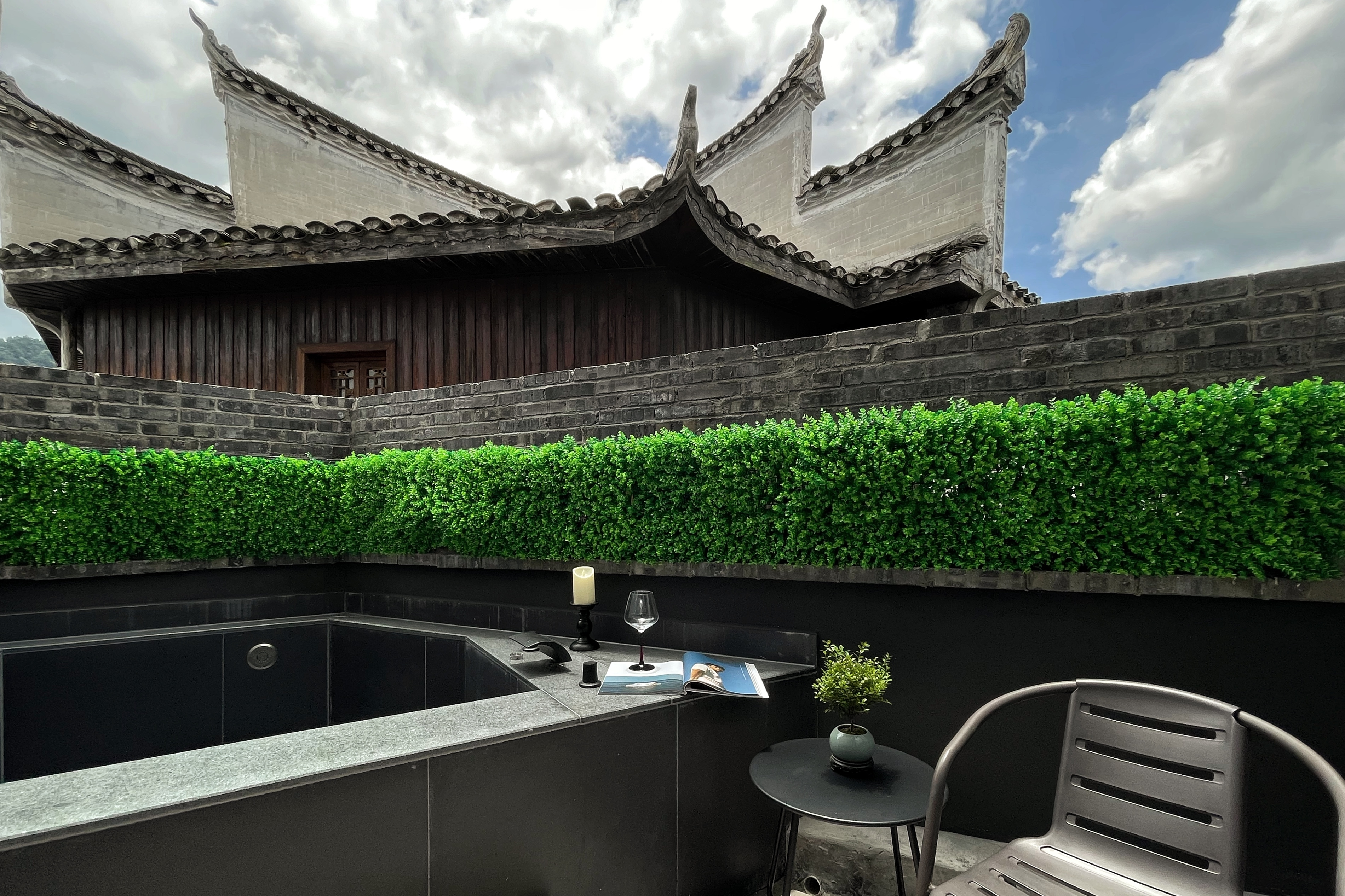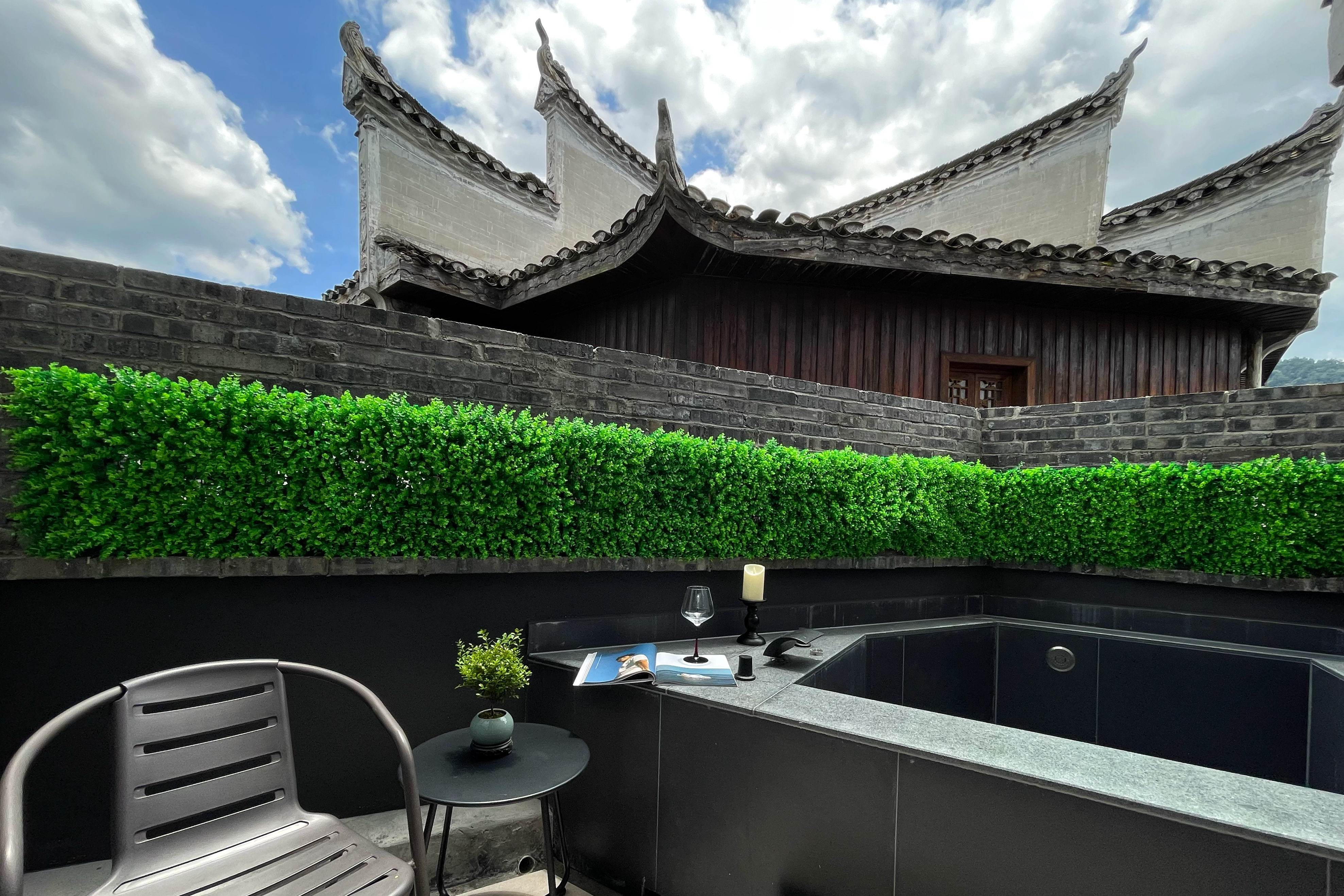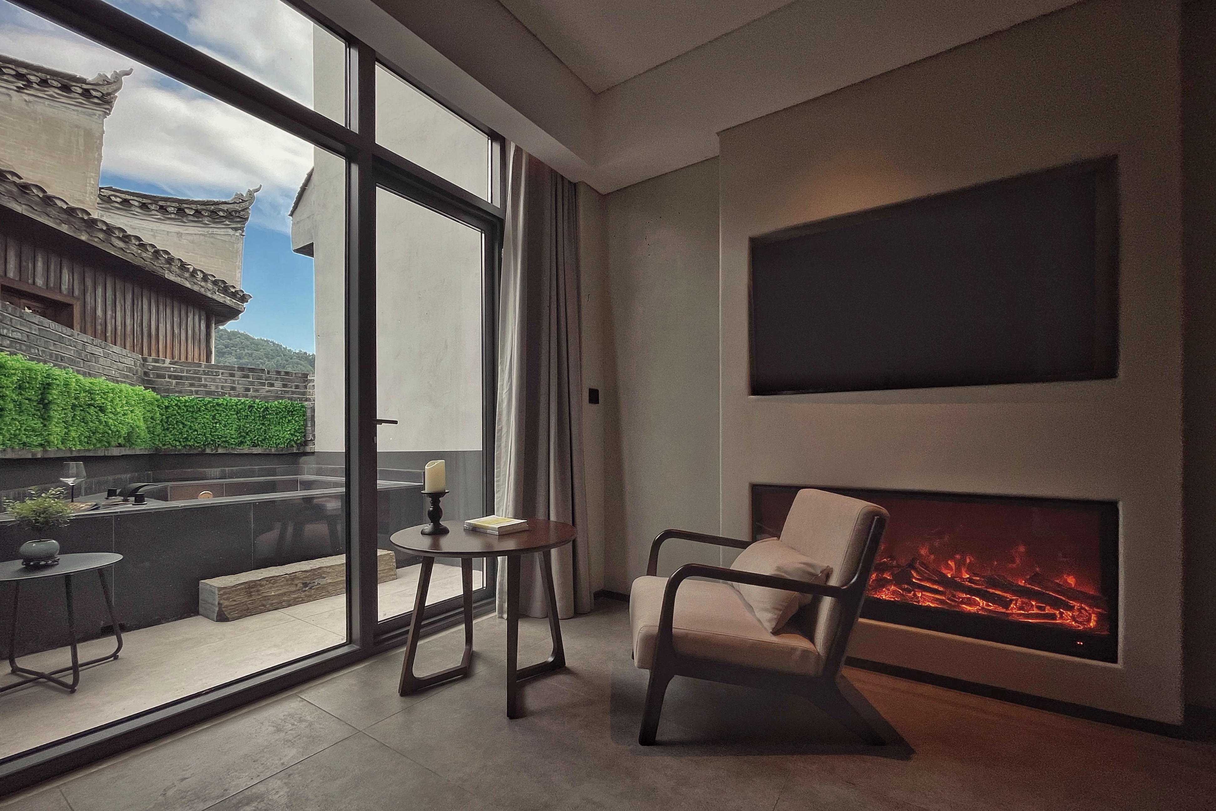 堂庭-露台私汤大床房『天井露台+私汤泡池+智能客控+澳洲DOWNIA床品+暖心壁炉+Duravit汉斯格雅衞浴』
