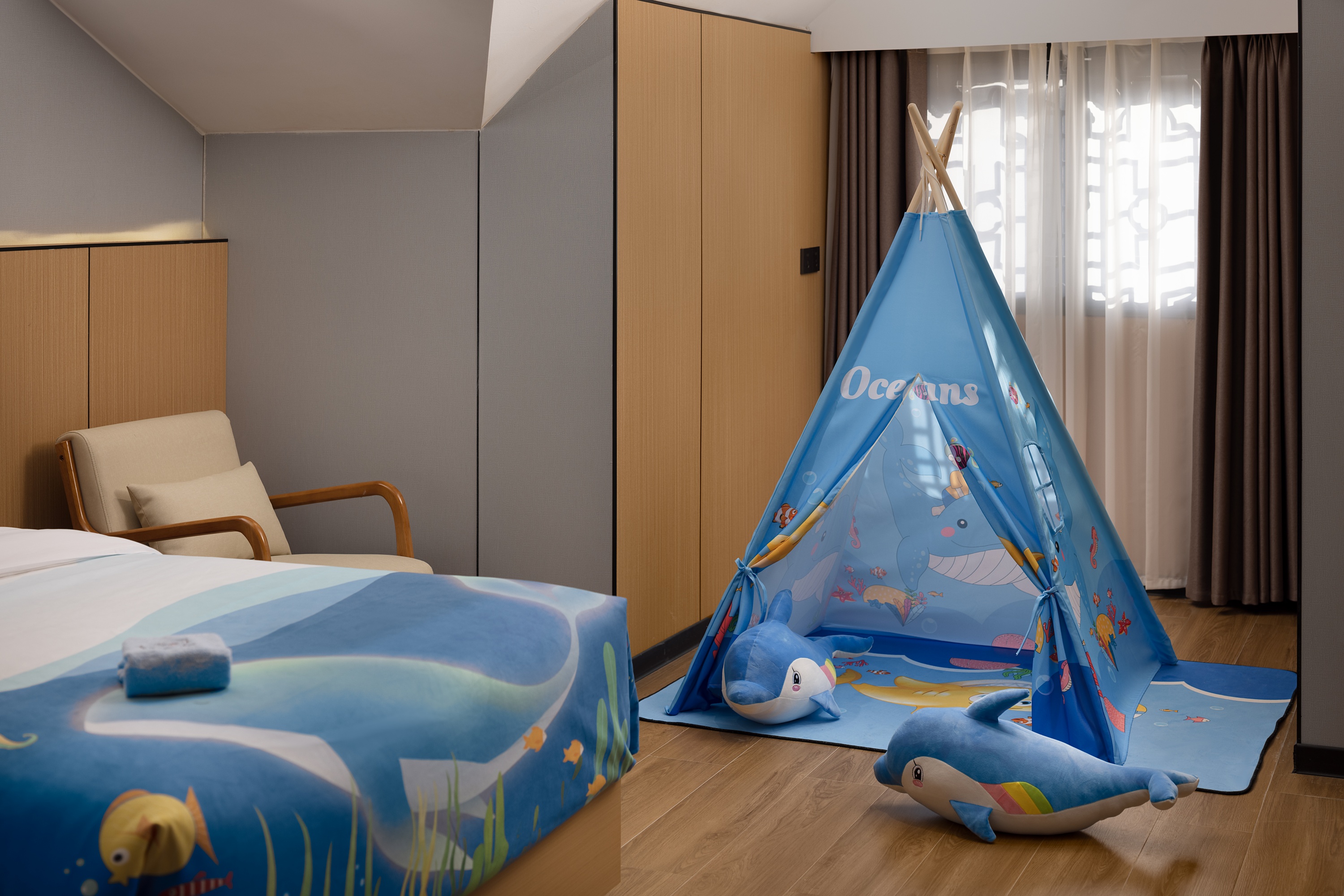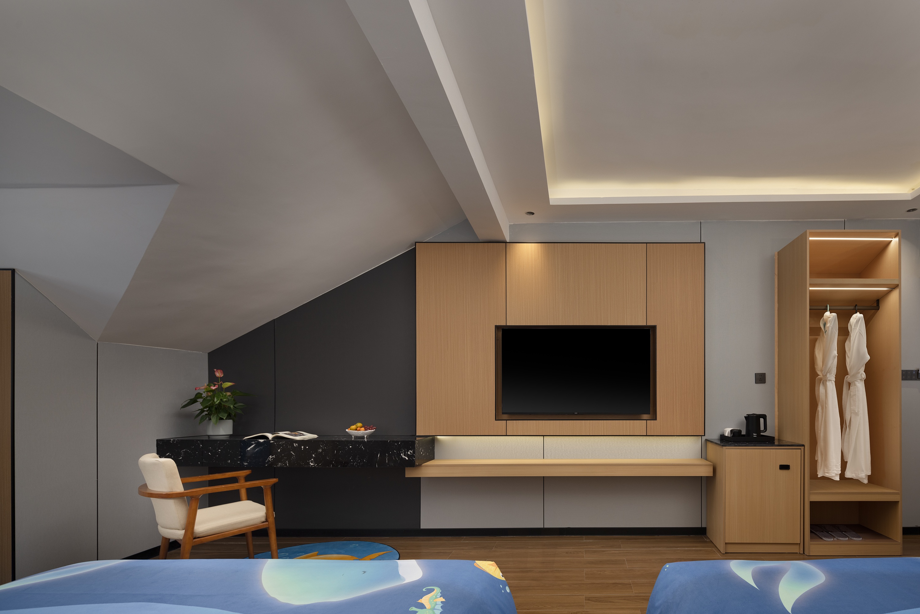 Mingdu Full House Smart Pitched Roof Featured Double Bed Room