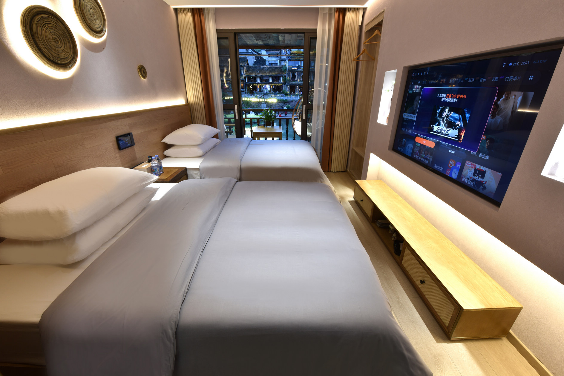 侯雨·180°江景豪華雙床房(觀景一線大陽台+全屋智能客控+智能馬桶+直飲機)