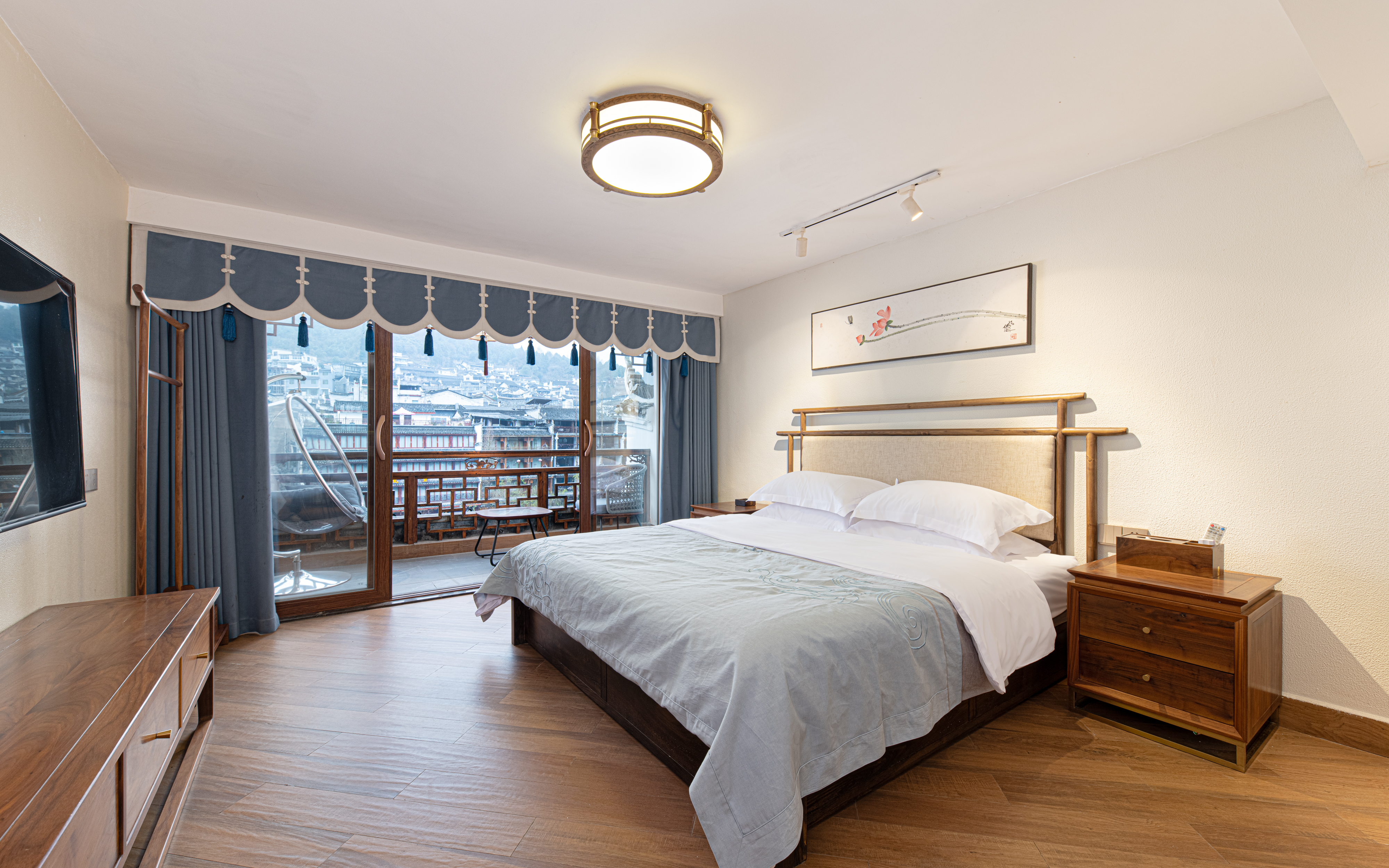 踏雪江景陽台大床房『江景陽台+電動窗簾+隔音玻璃 』