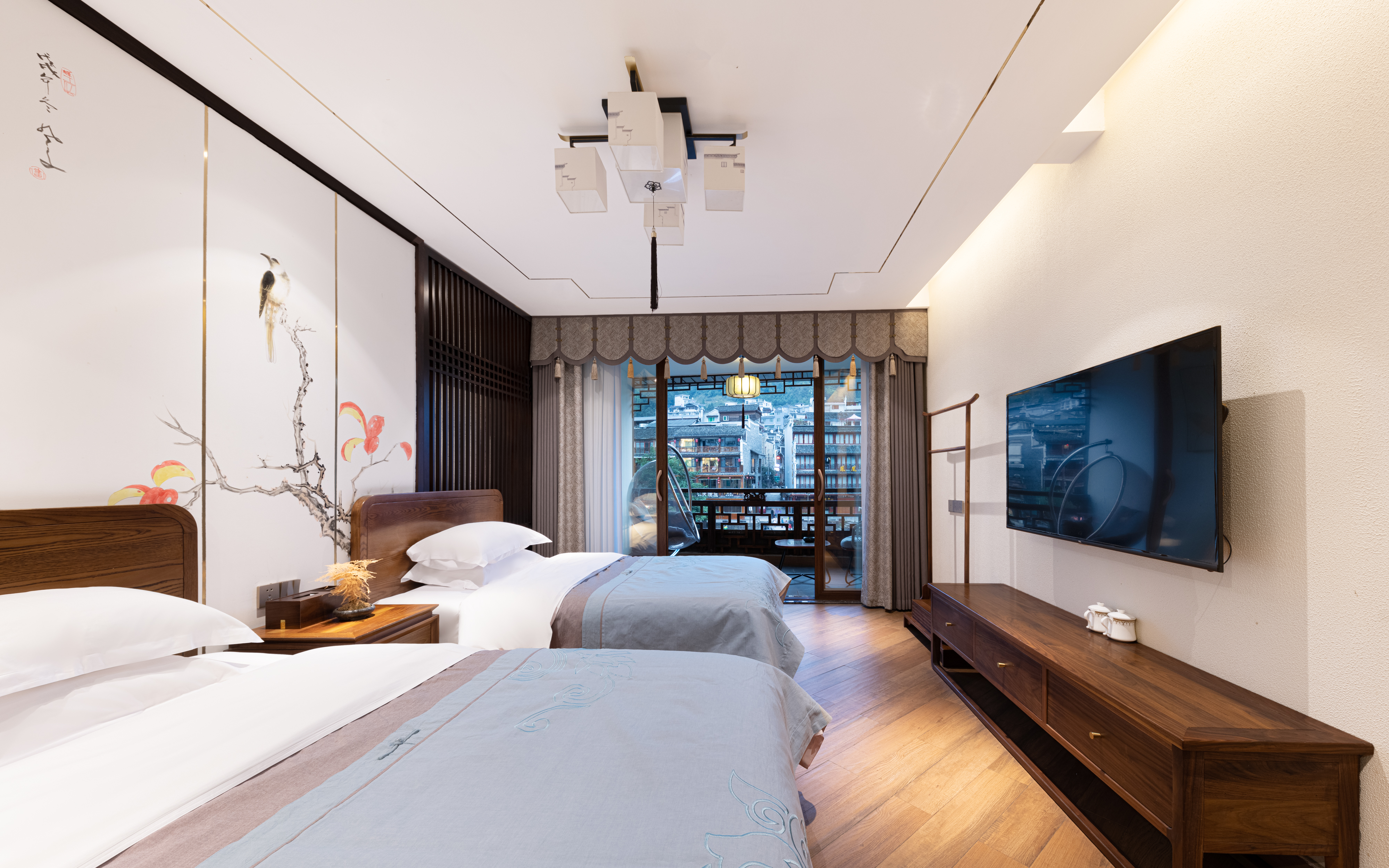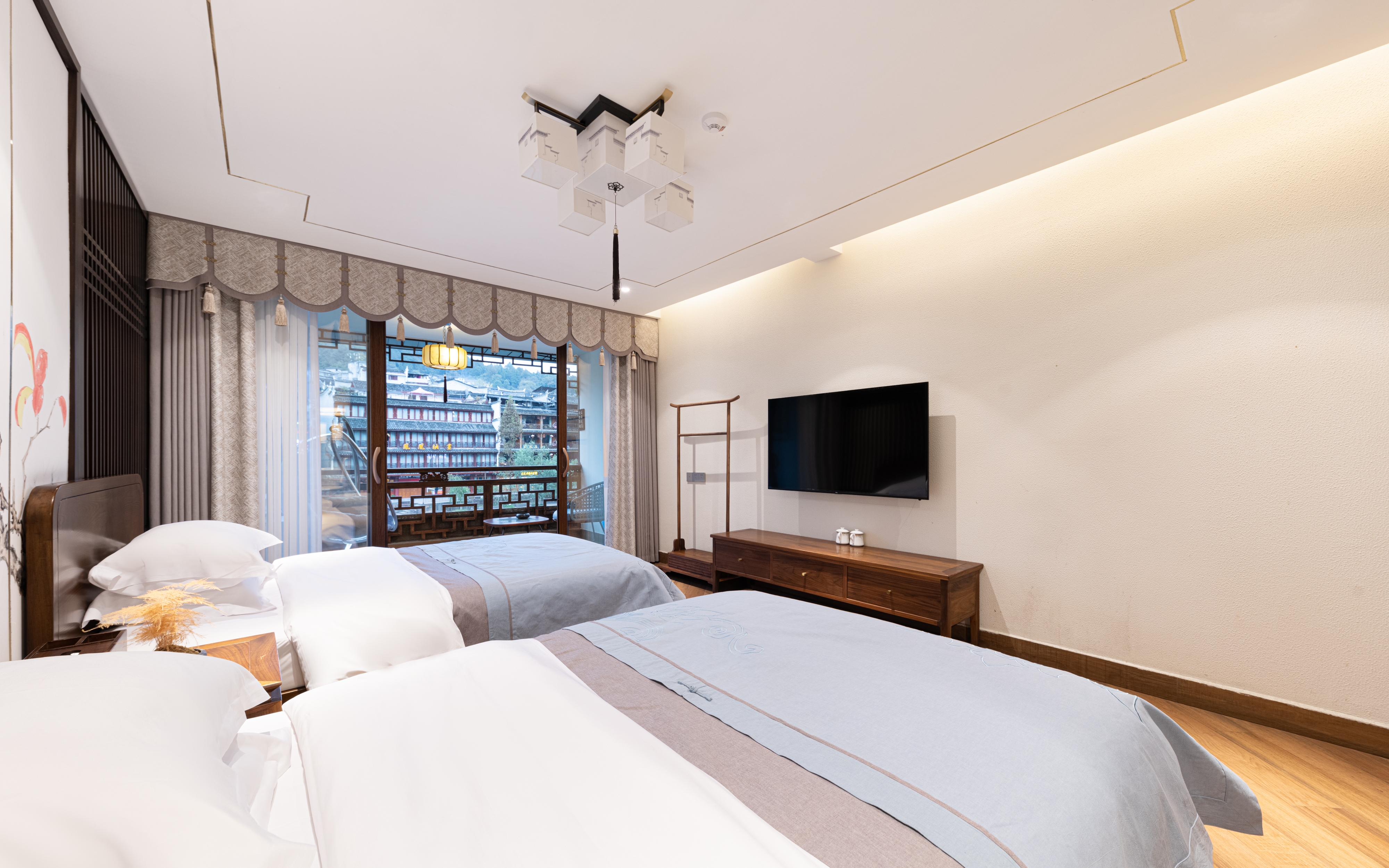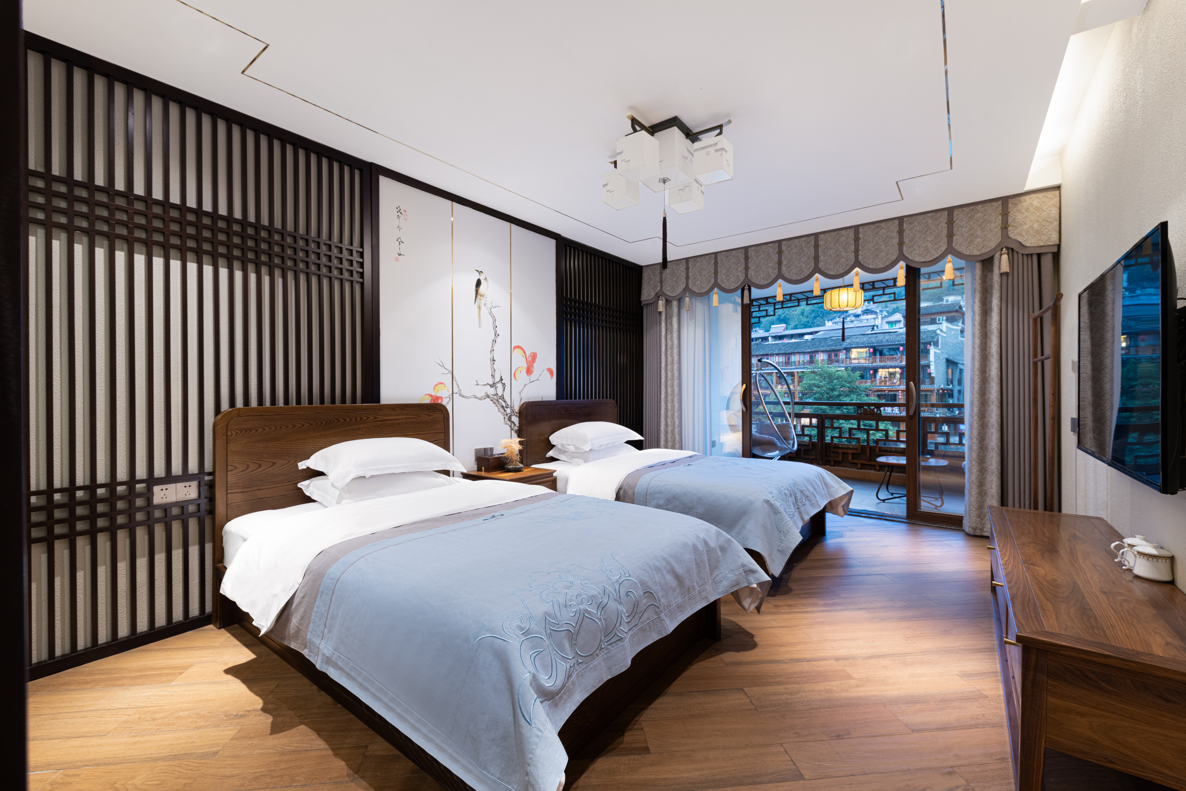 星辰江景陽台雙床房『江景陽台+電動窗簾+隔音玻璃 』