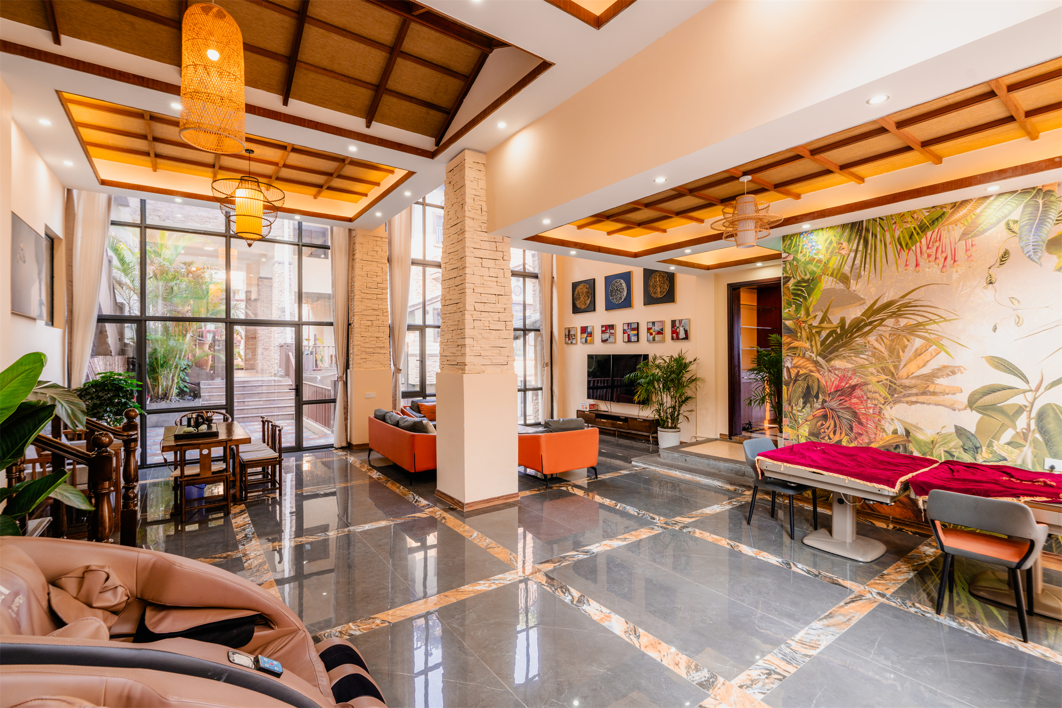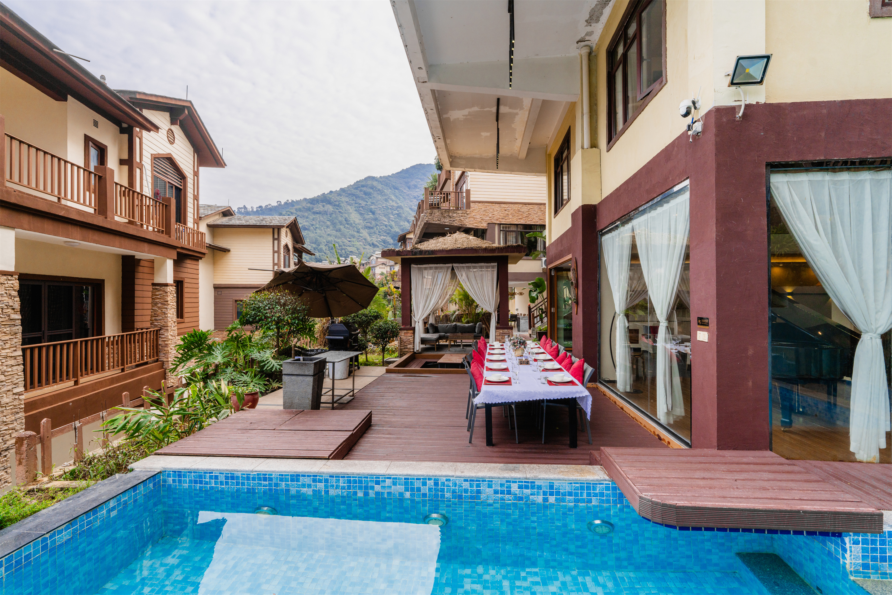 Southeast Asian 10-Bedroom Villa With 15 Beds, Meeting Room, Pool, Hot Spring, Ktv, Mahjong Table&Bbq Grill