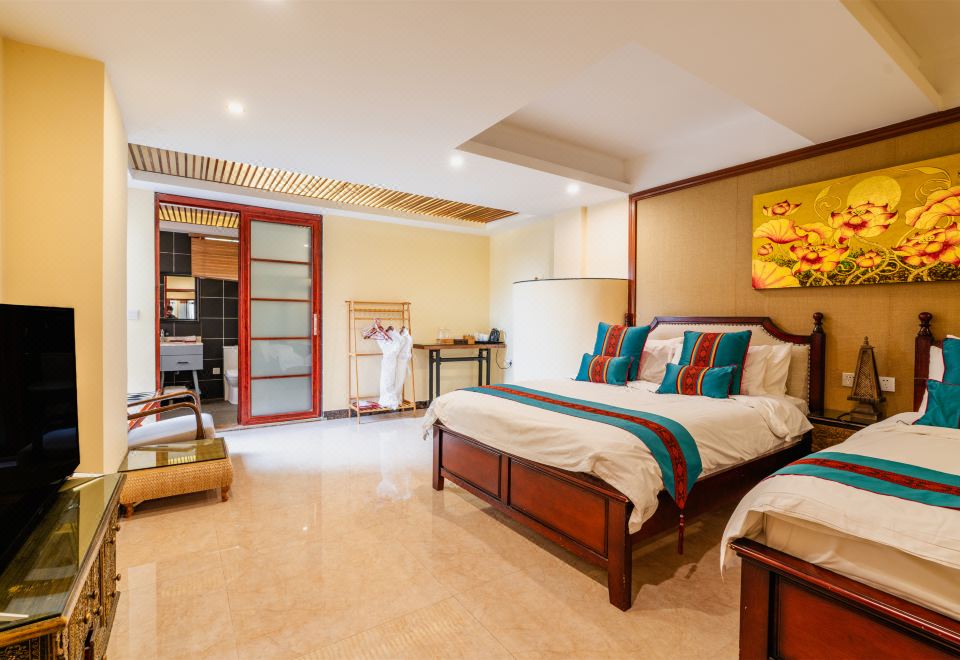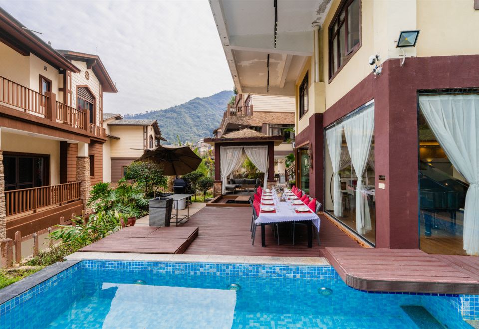 Southeast Asian 10-Bedroom Villa With 15 Beds, Meeting Room, Pool, Hot Spring, Ktv, Mahjong Table&Bbq Grill