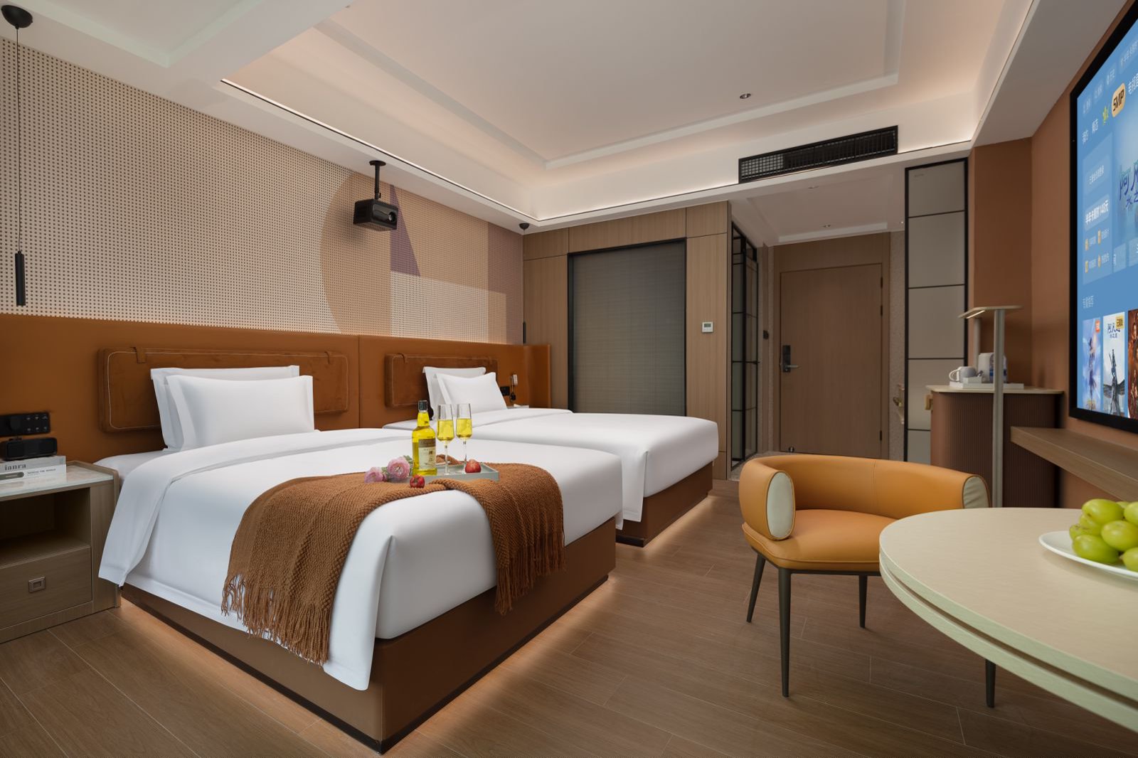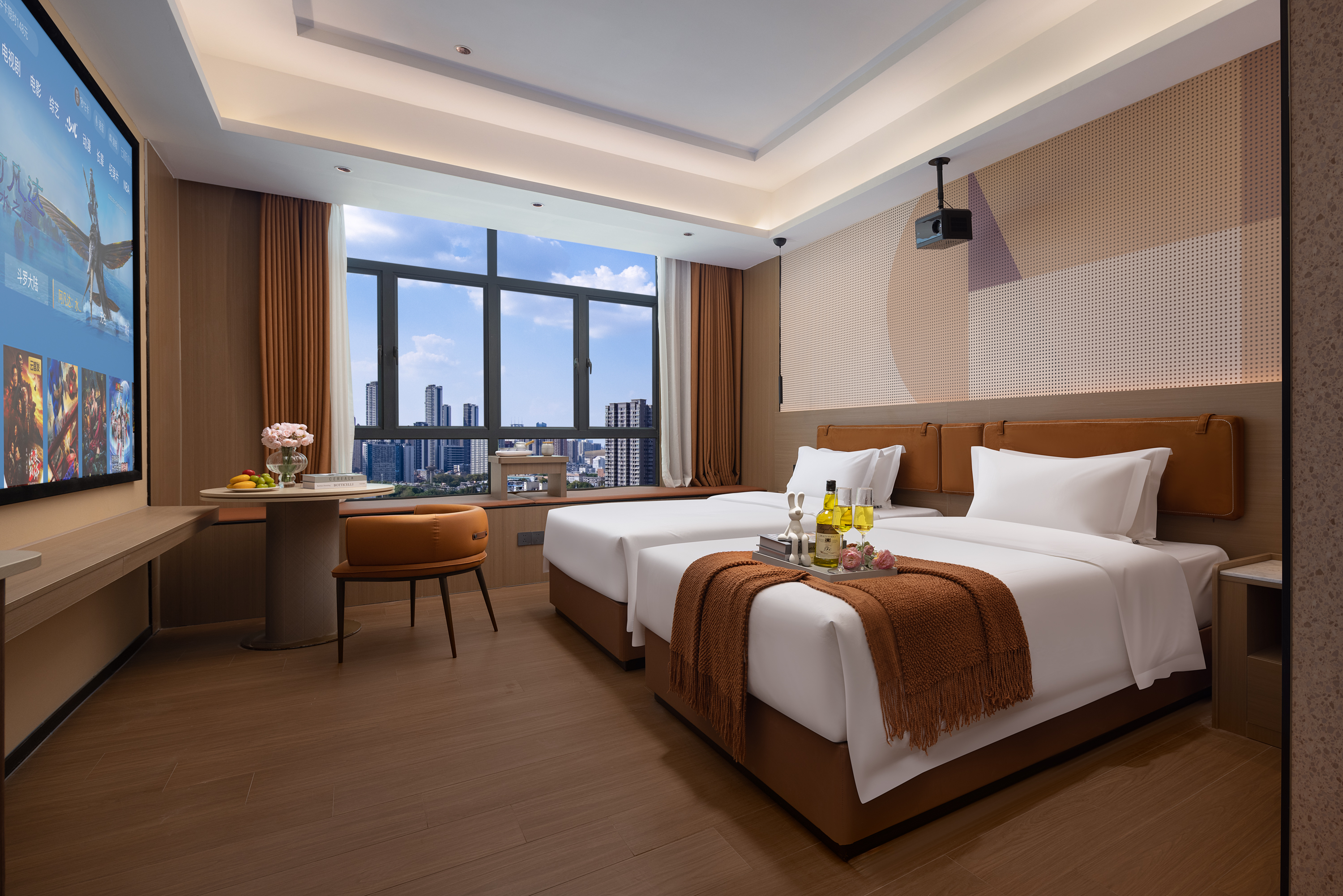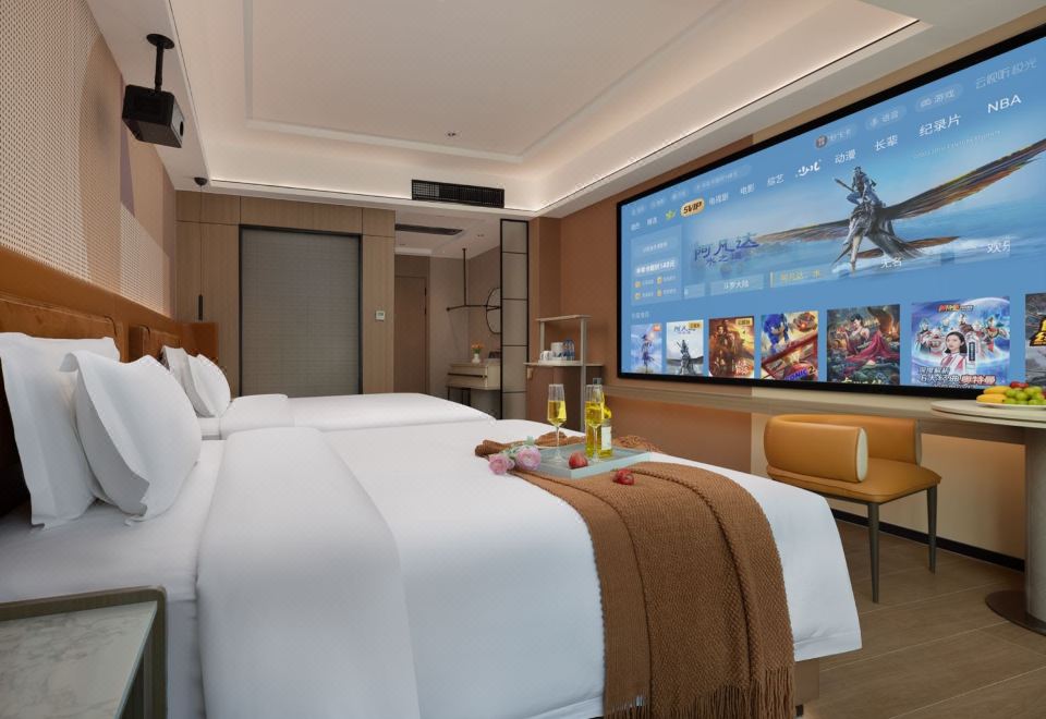 逸居-景观影院双床房-智能客控-120寸巨幕投屏-蓝牙音箱
