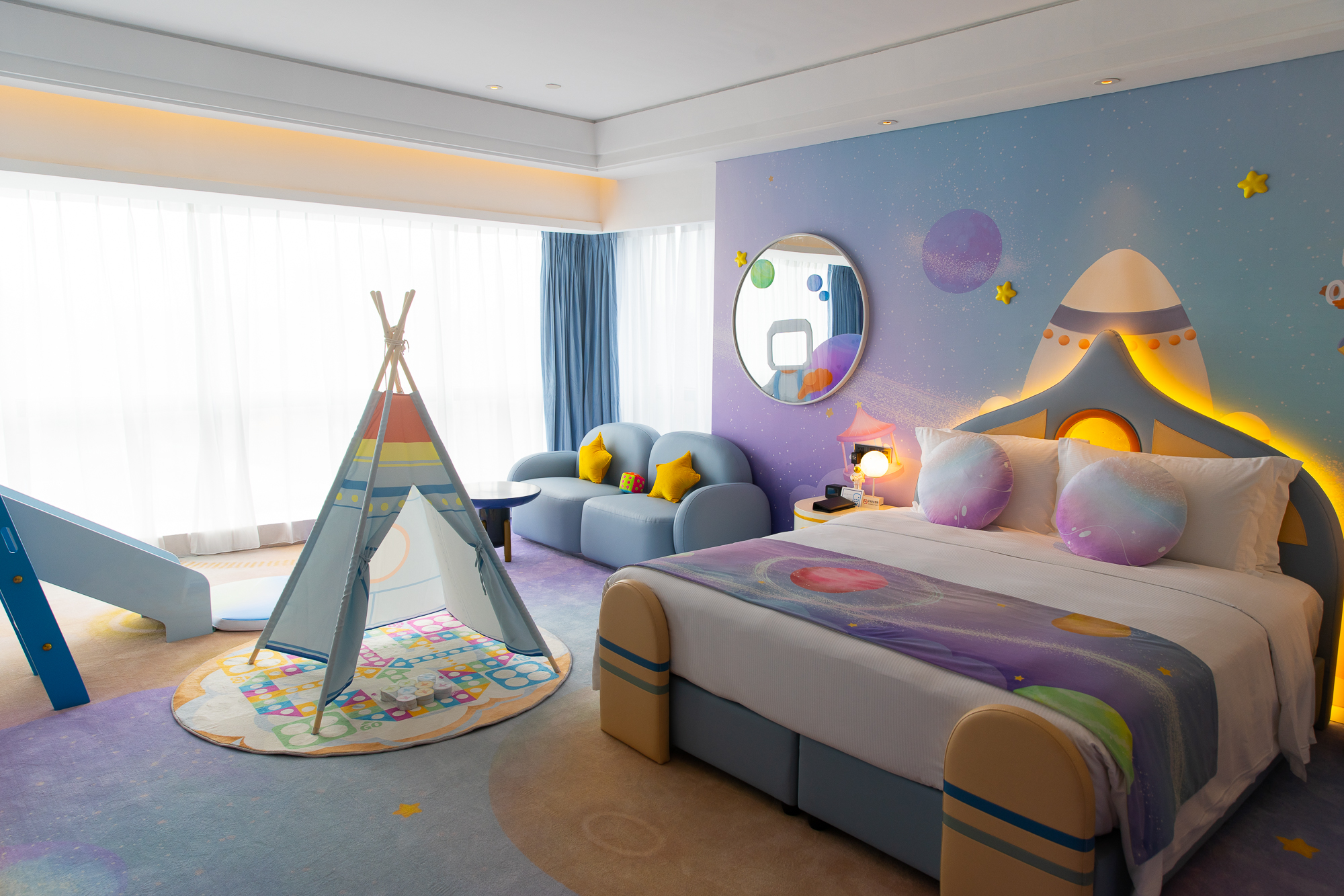 梦幻太空亲子房-享上下铺滑梯床