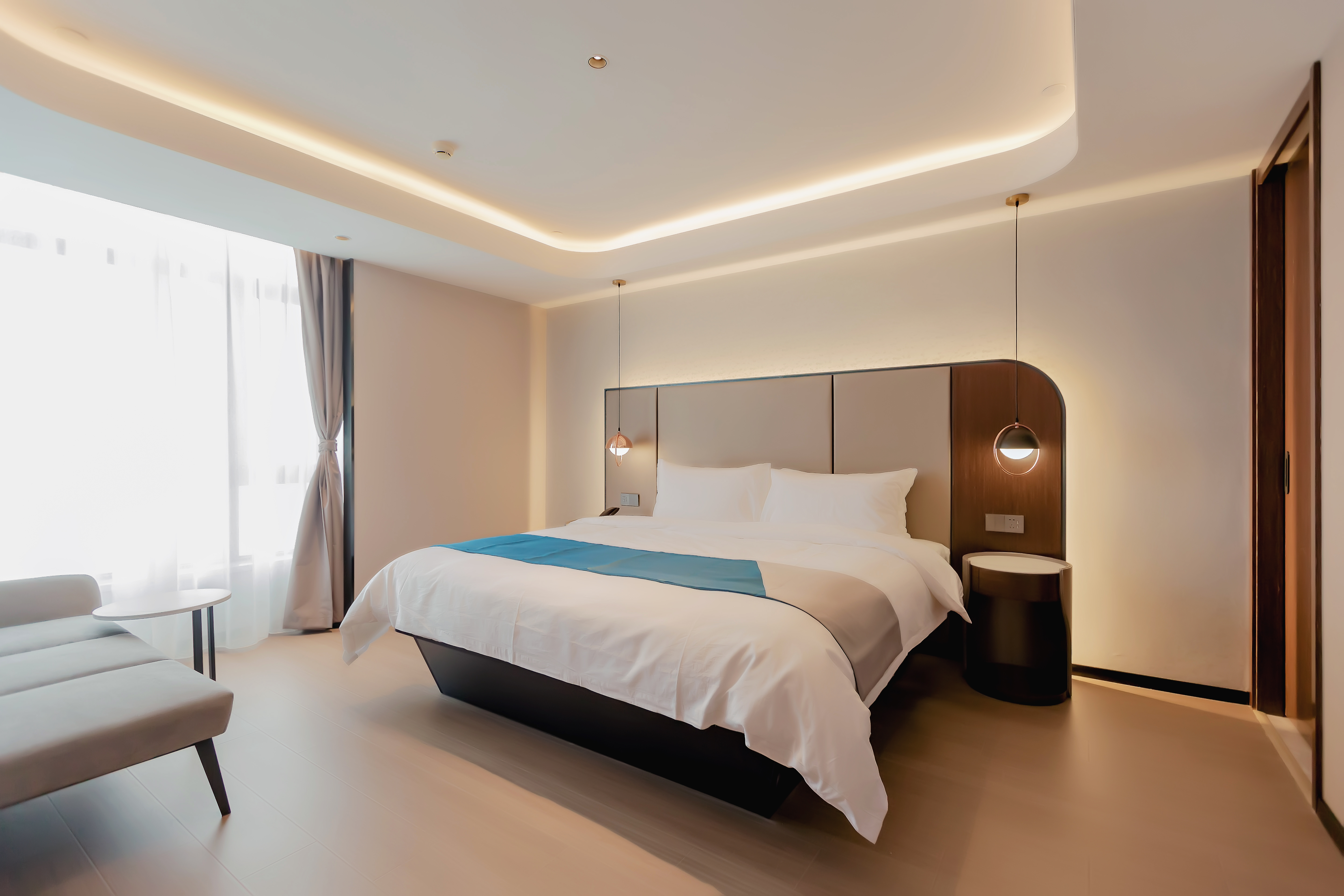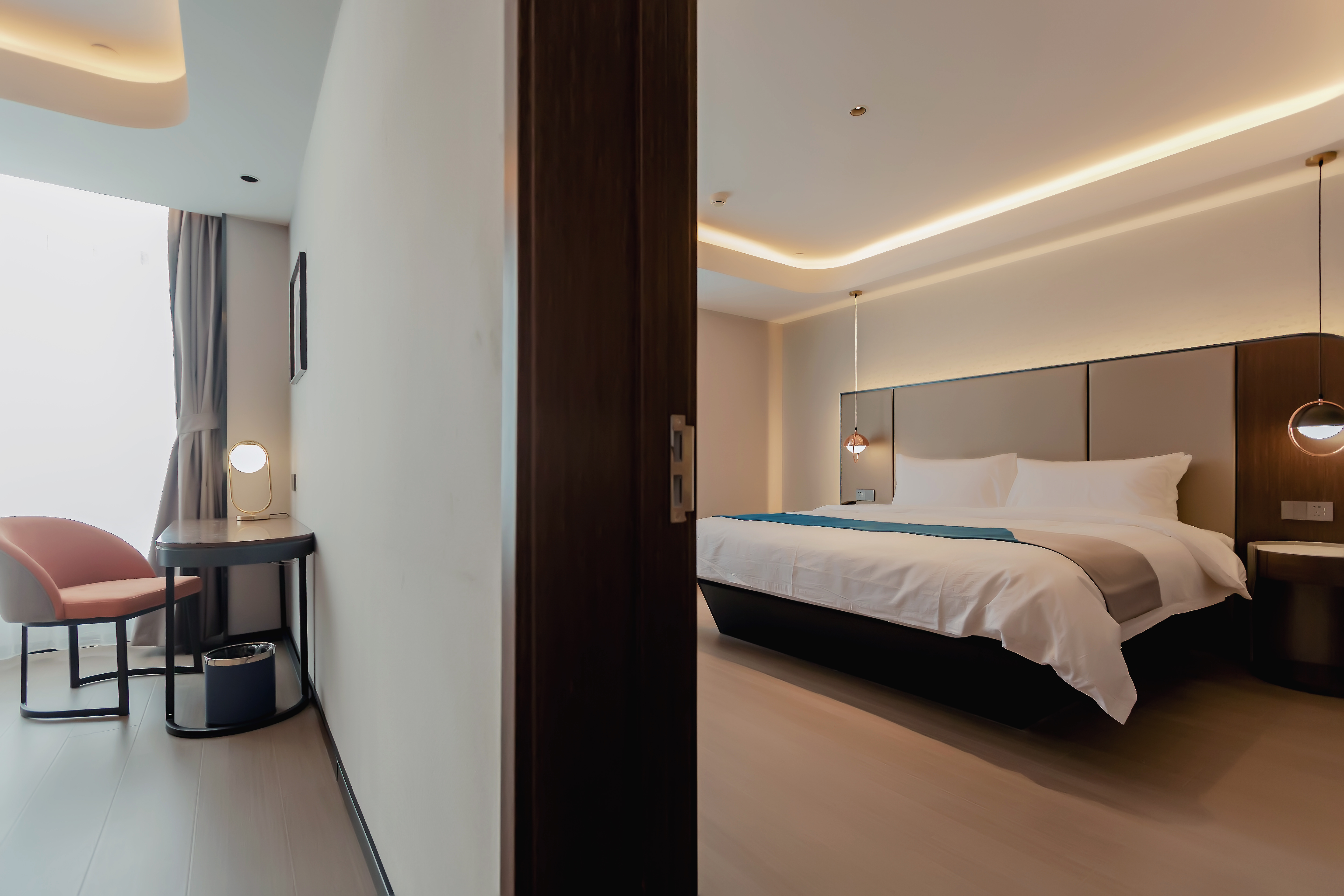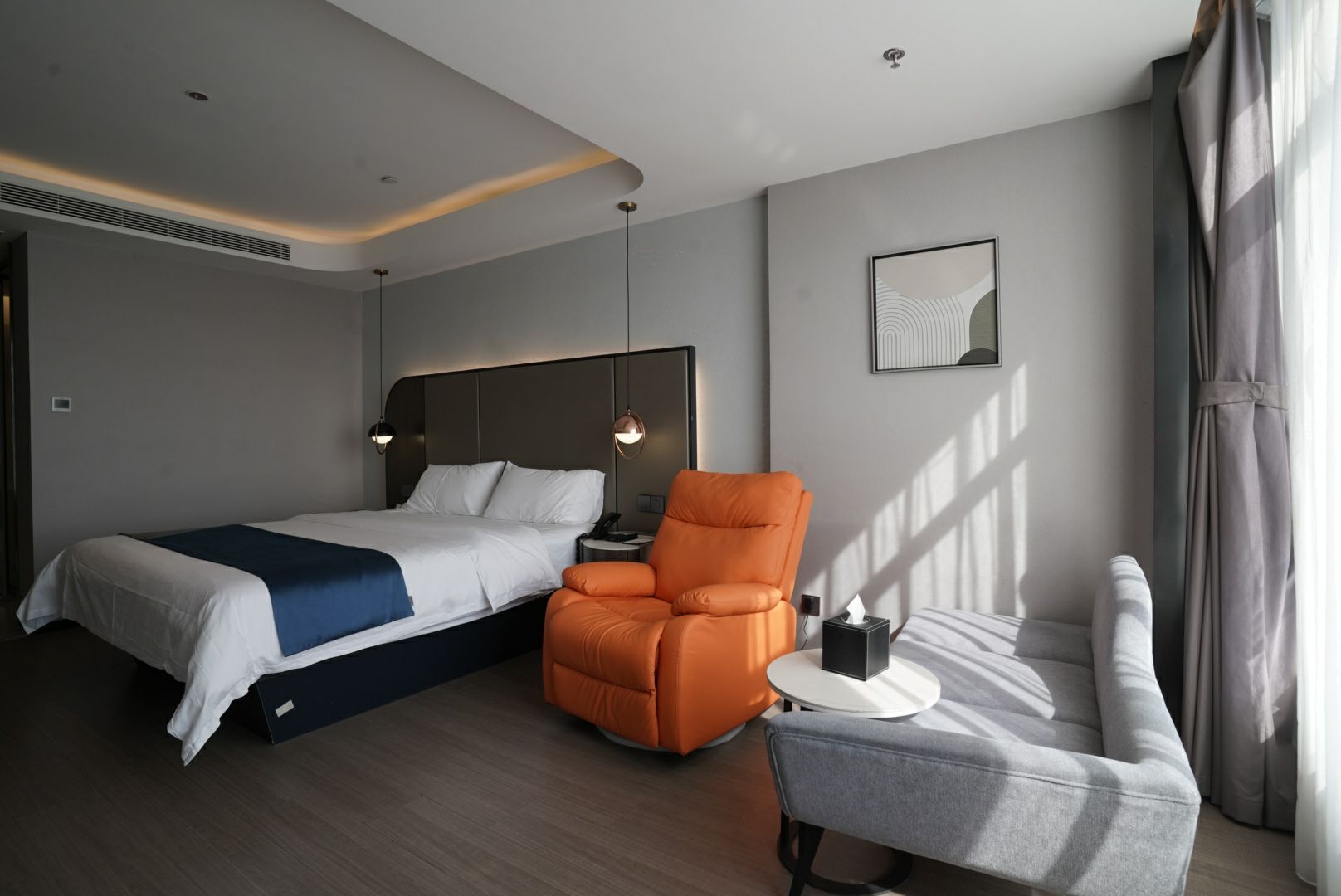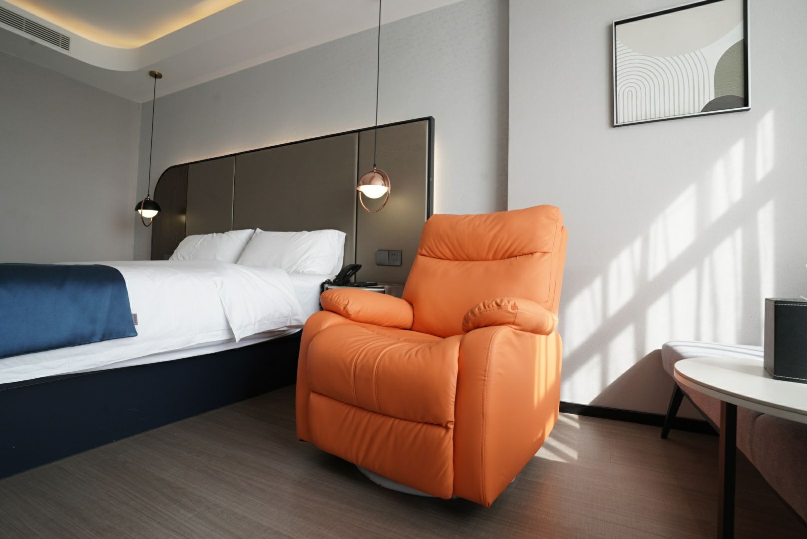 高級零壓大床房(助眠加濕器+精緻茶具+小冰箱+高級電動按摩沙發)