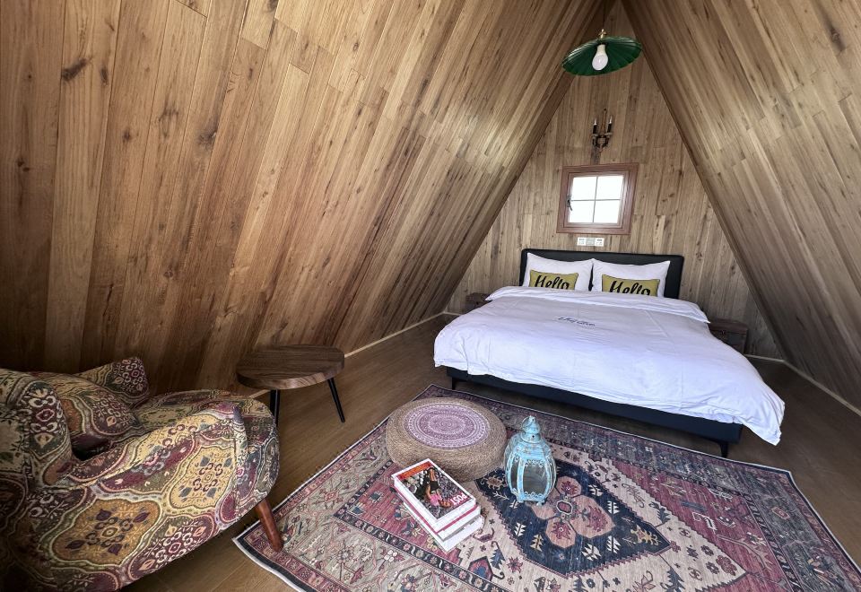 美式豪华室外私衞全木屋大床房(地暖+加湿器)