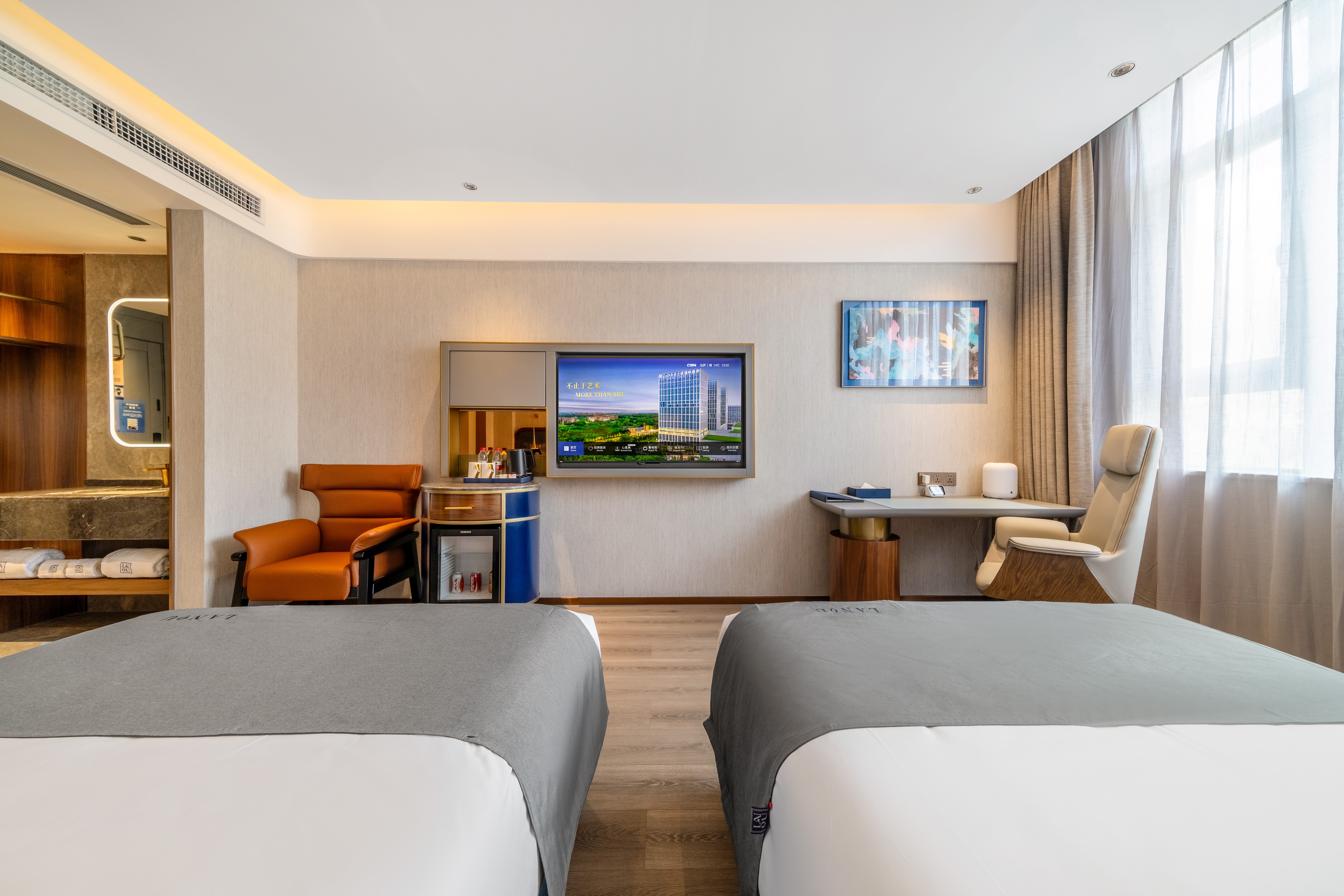 兰沁市景双床房(独立便携式供氧+中央空调+全屋智控+mini吧+加湿器)