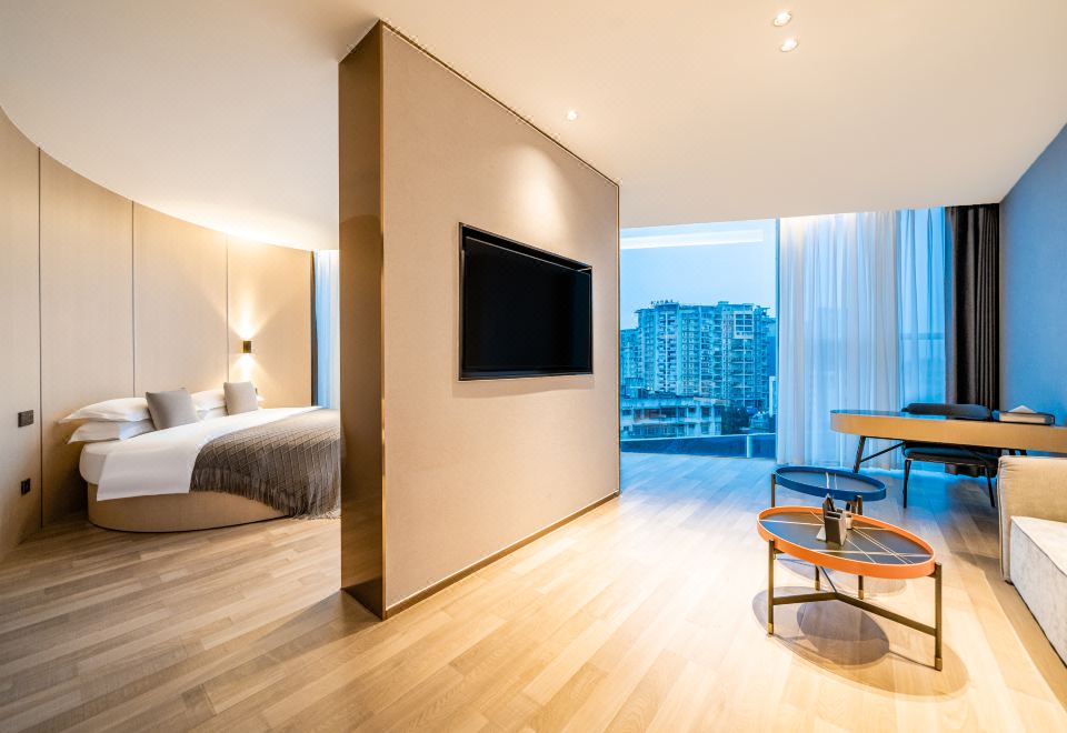 蓉悦浪漫圆床房【会客区+品牌床垫+独立浴缸】