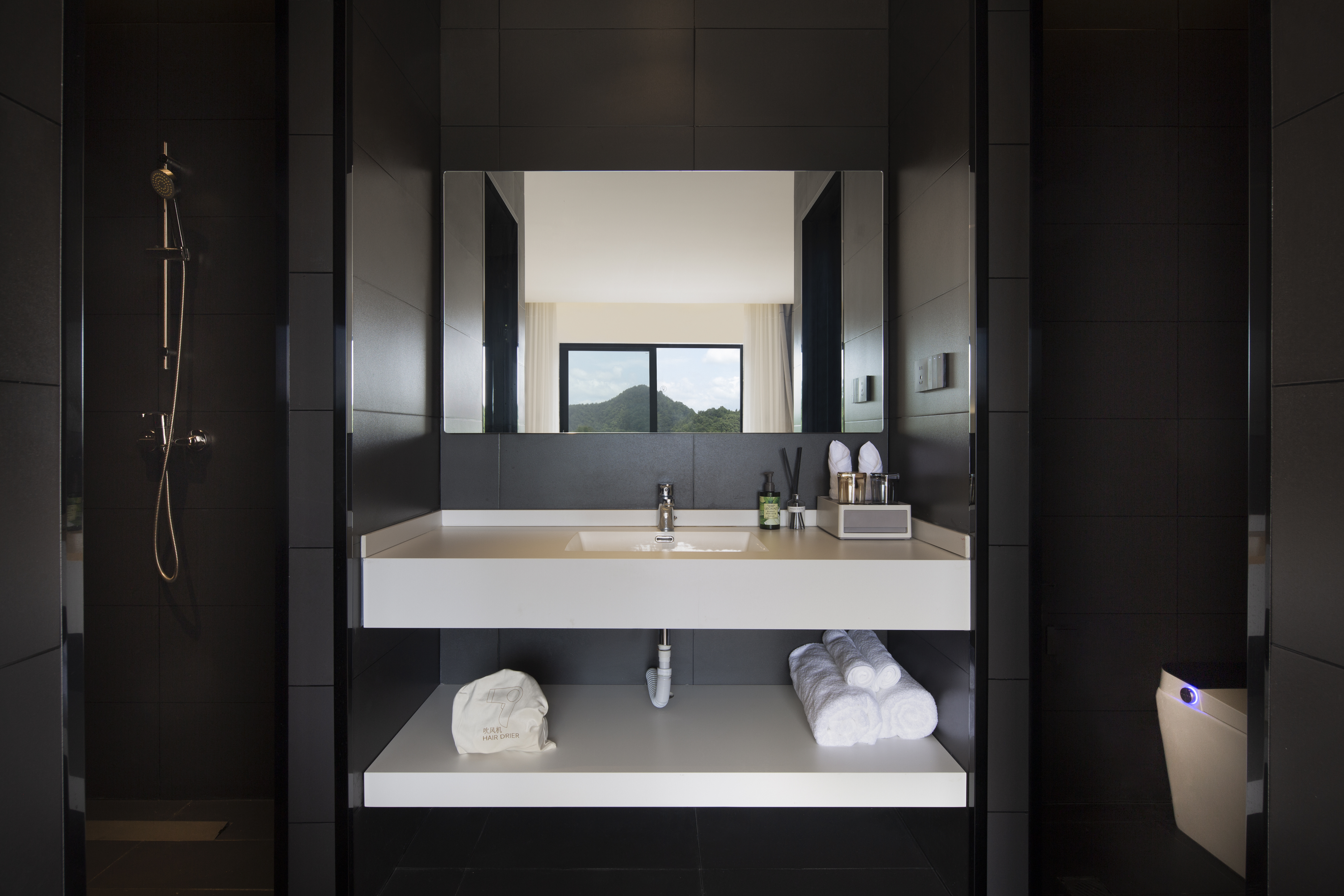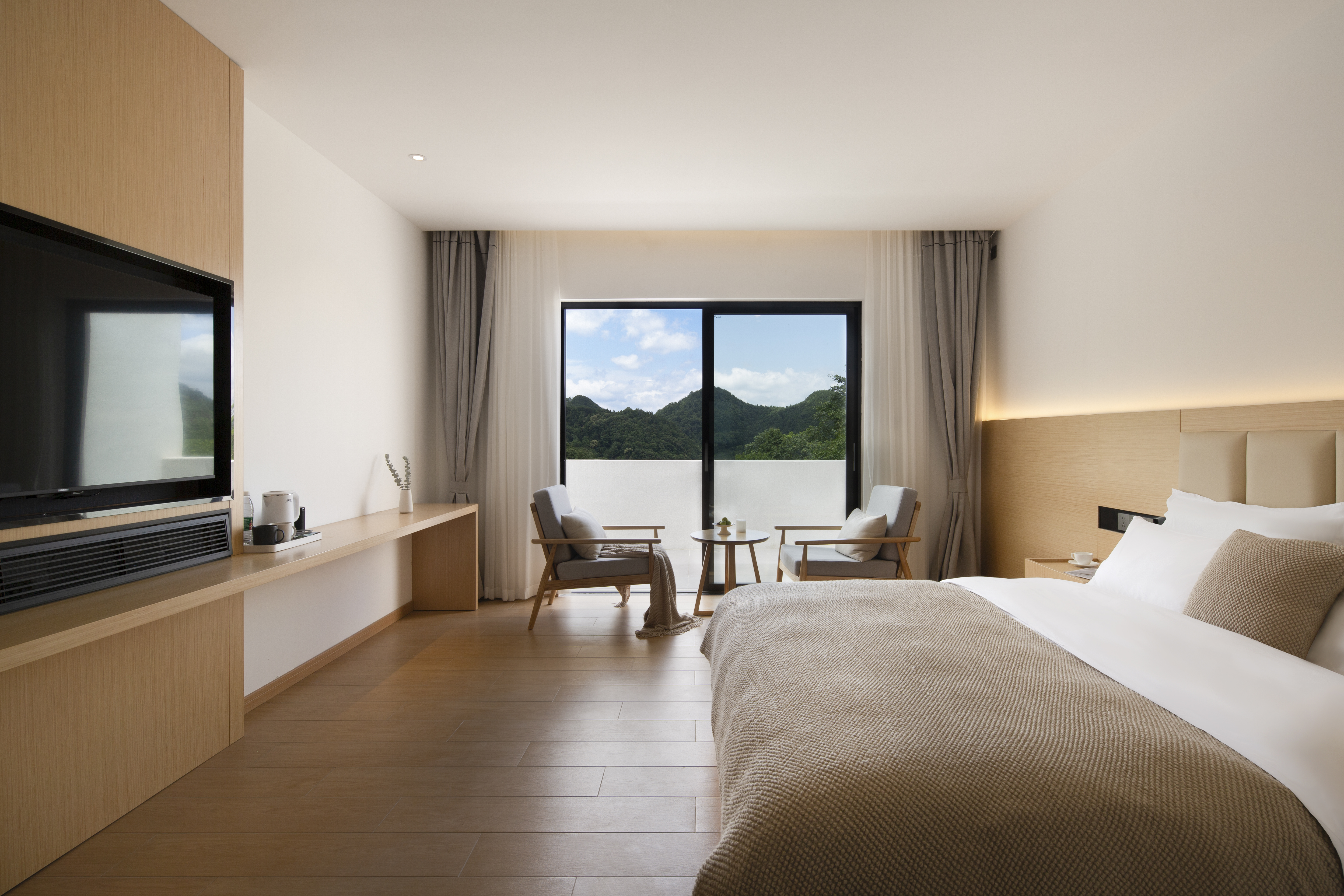 [山麓]山景阳台大床房+全景落地玻璃+可日落揽景+极佳视野+舒适桌椅+全屋智能+高级床品+独立衞浴+智能音响小度