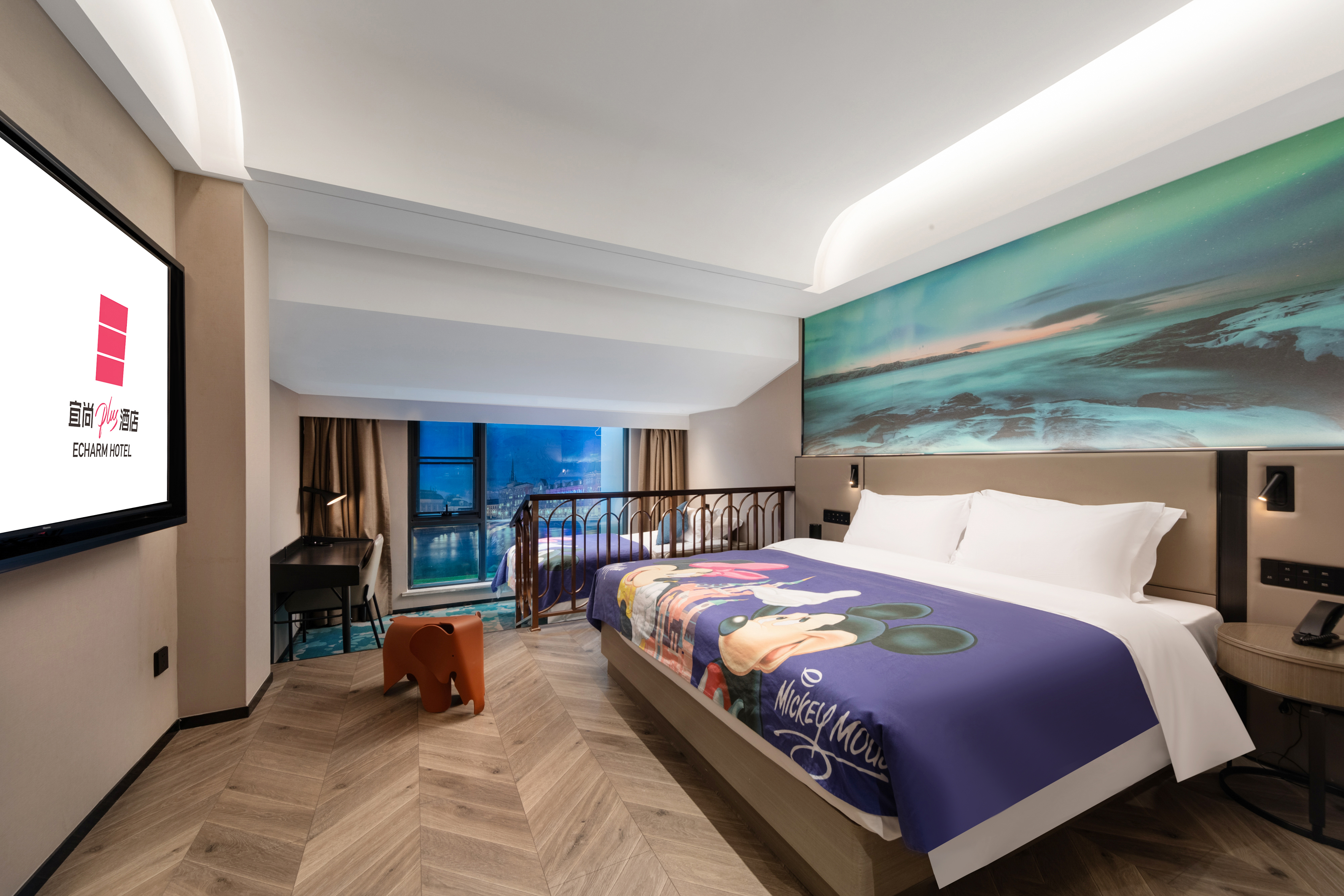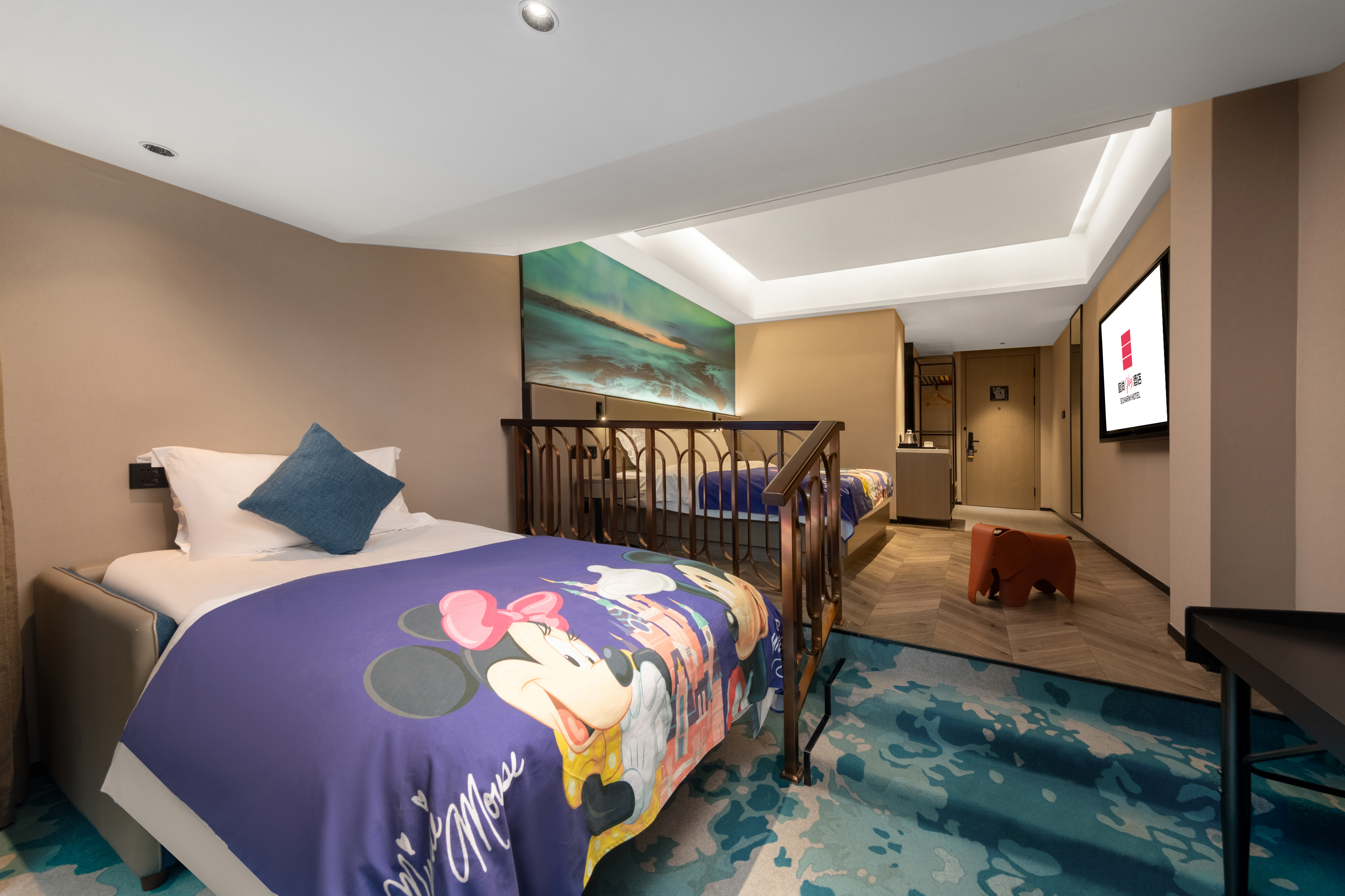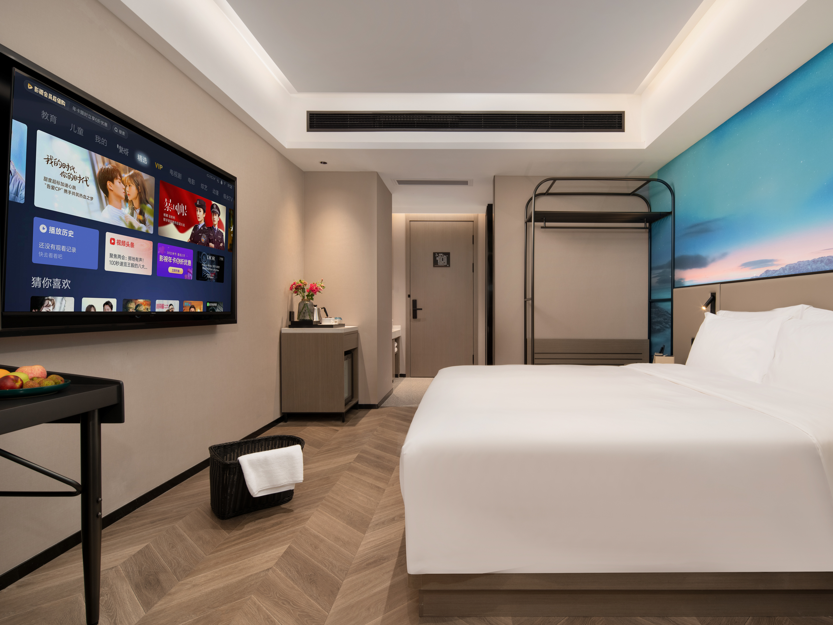 智能高级双床房(新风除湿+大小床组合+智能客控投屏)