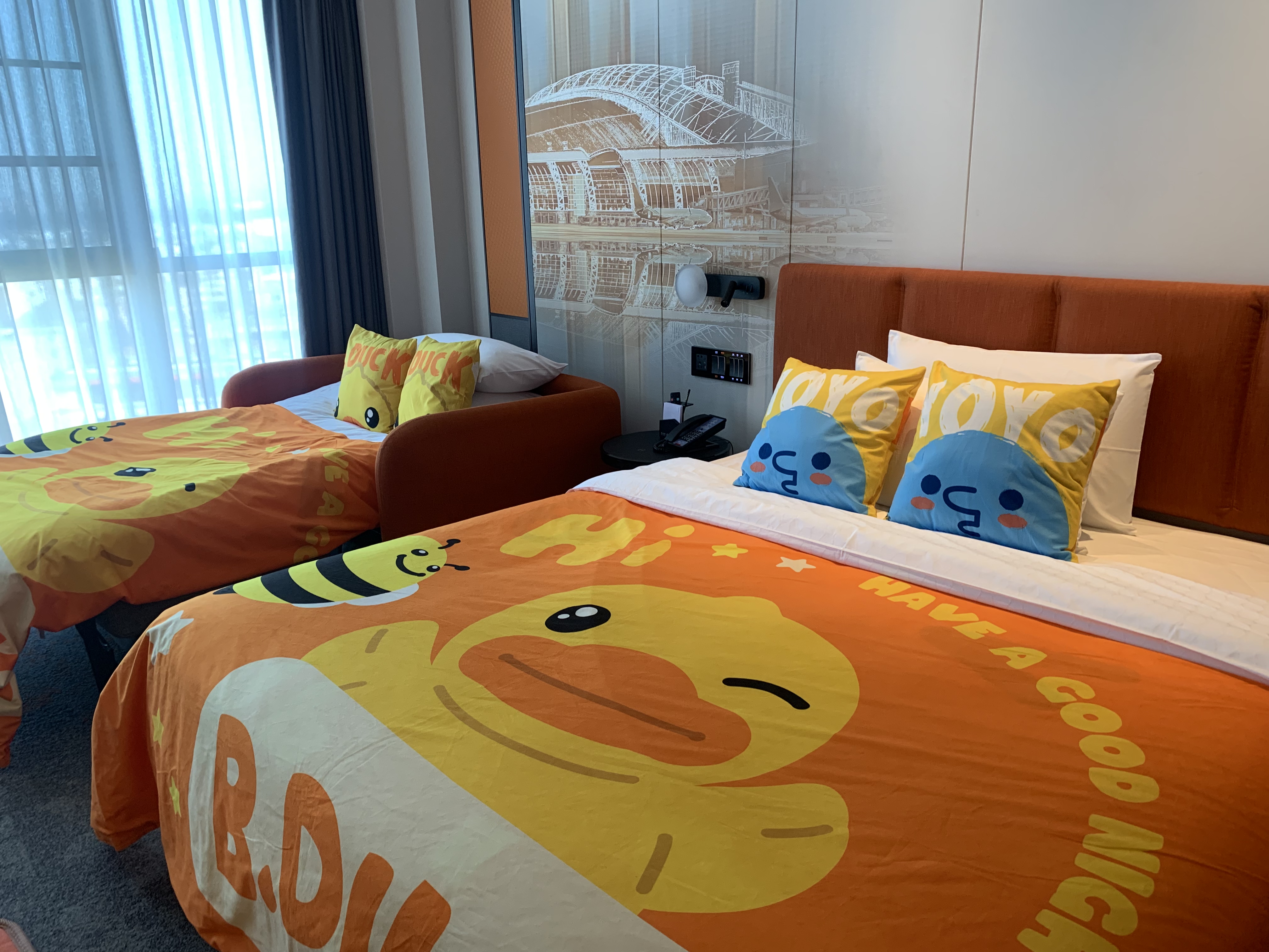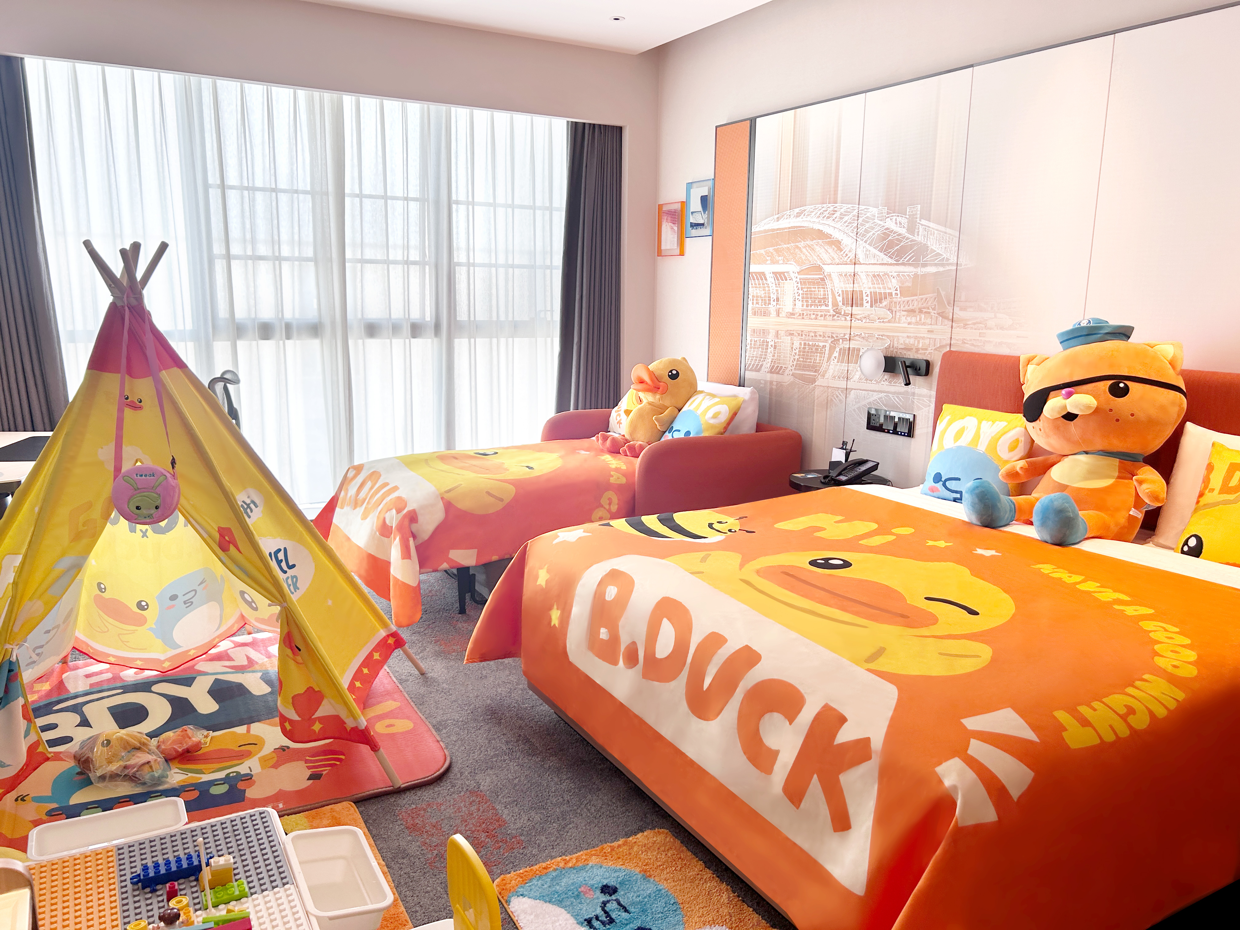 萌娃最爱·小黄鸭亲子主题房-大床带梳化床