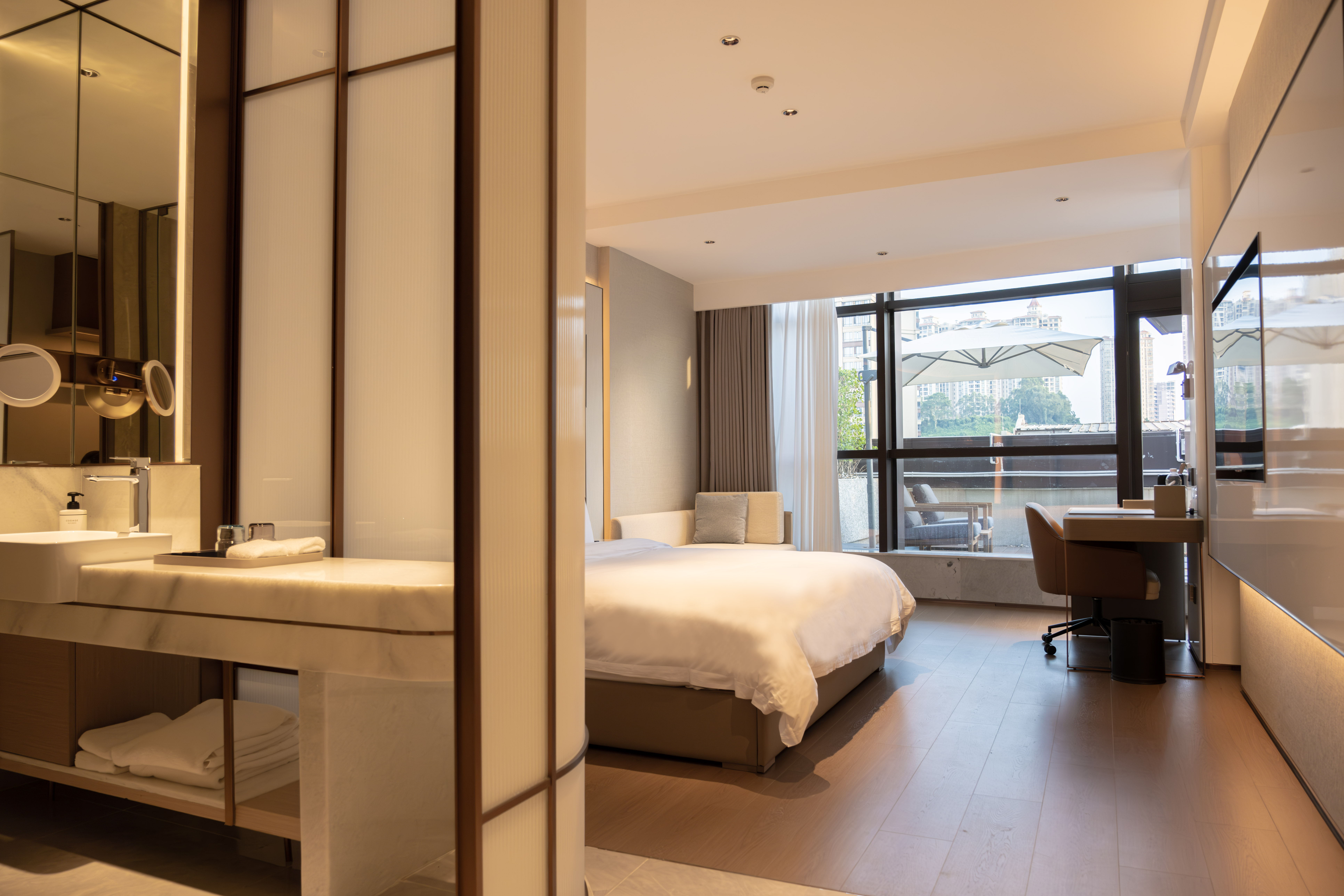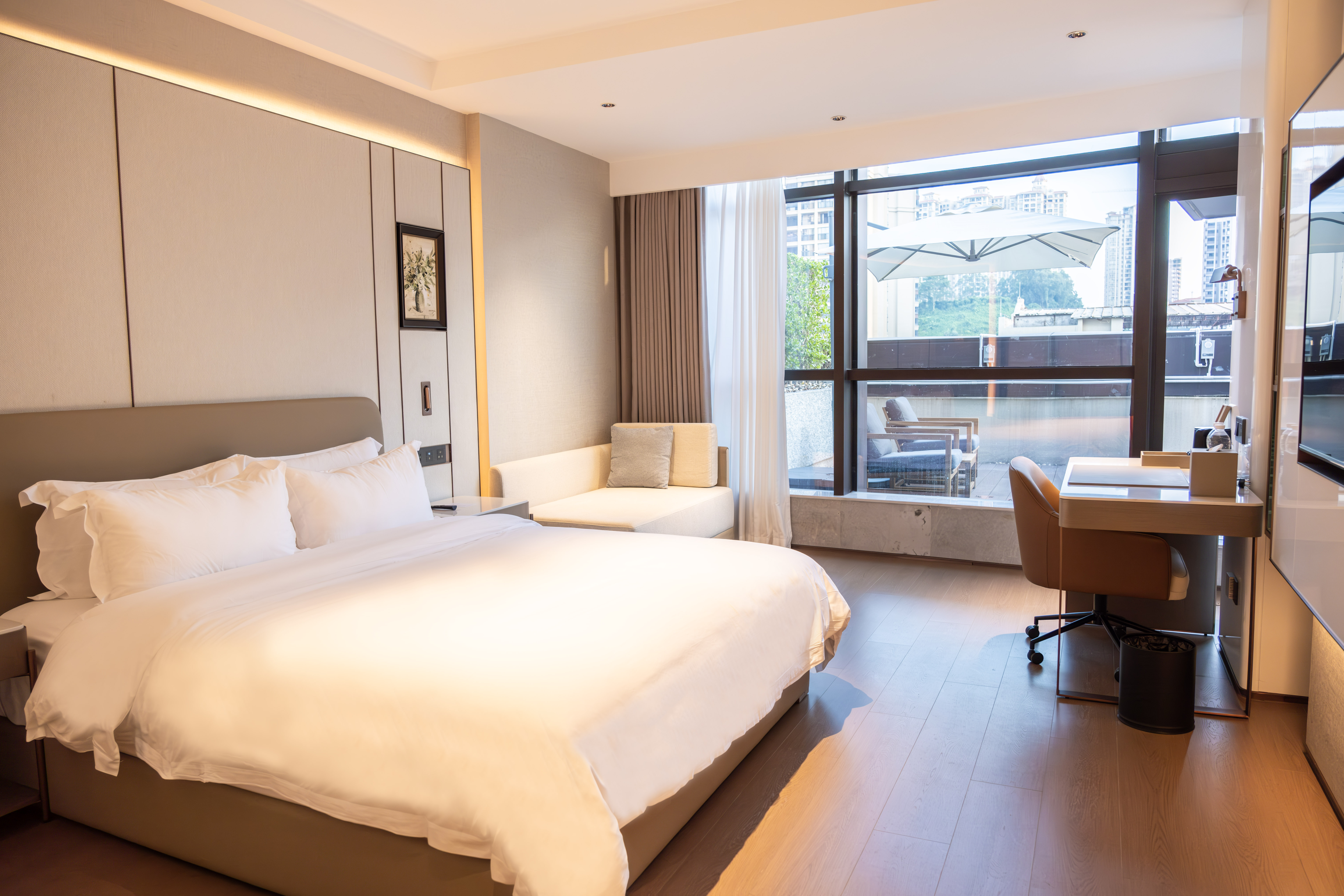 阳台行政豪华大床房(180度景观露台+茶具+小冰箱)