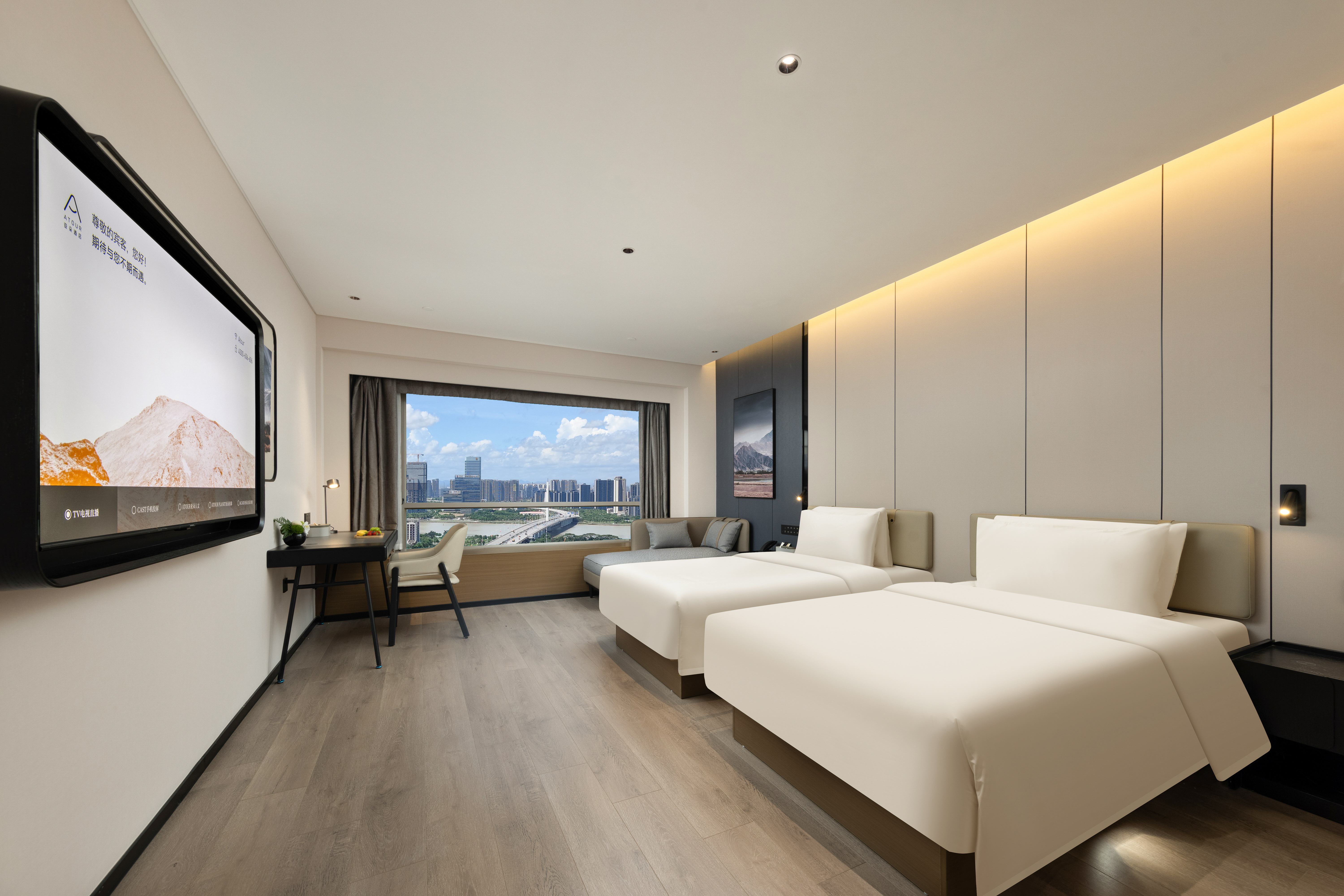 行政城景双床房(城市景+冰箱+双扇隔音窗户)