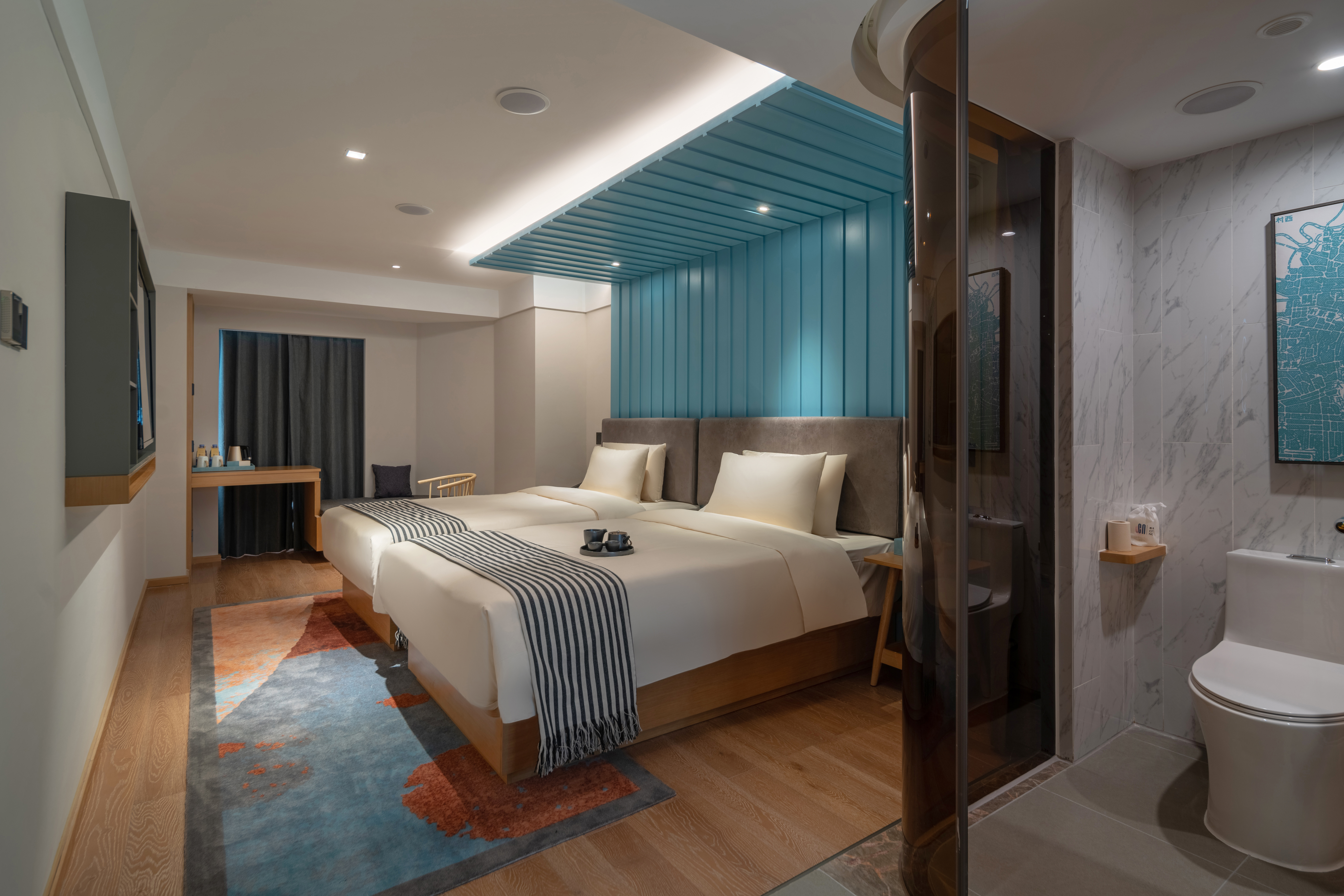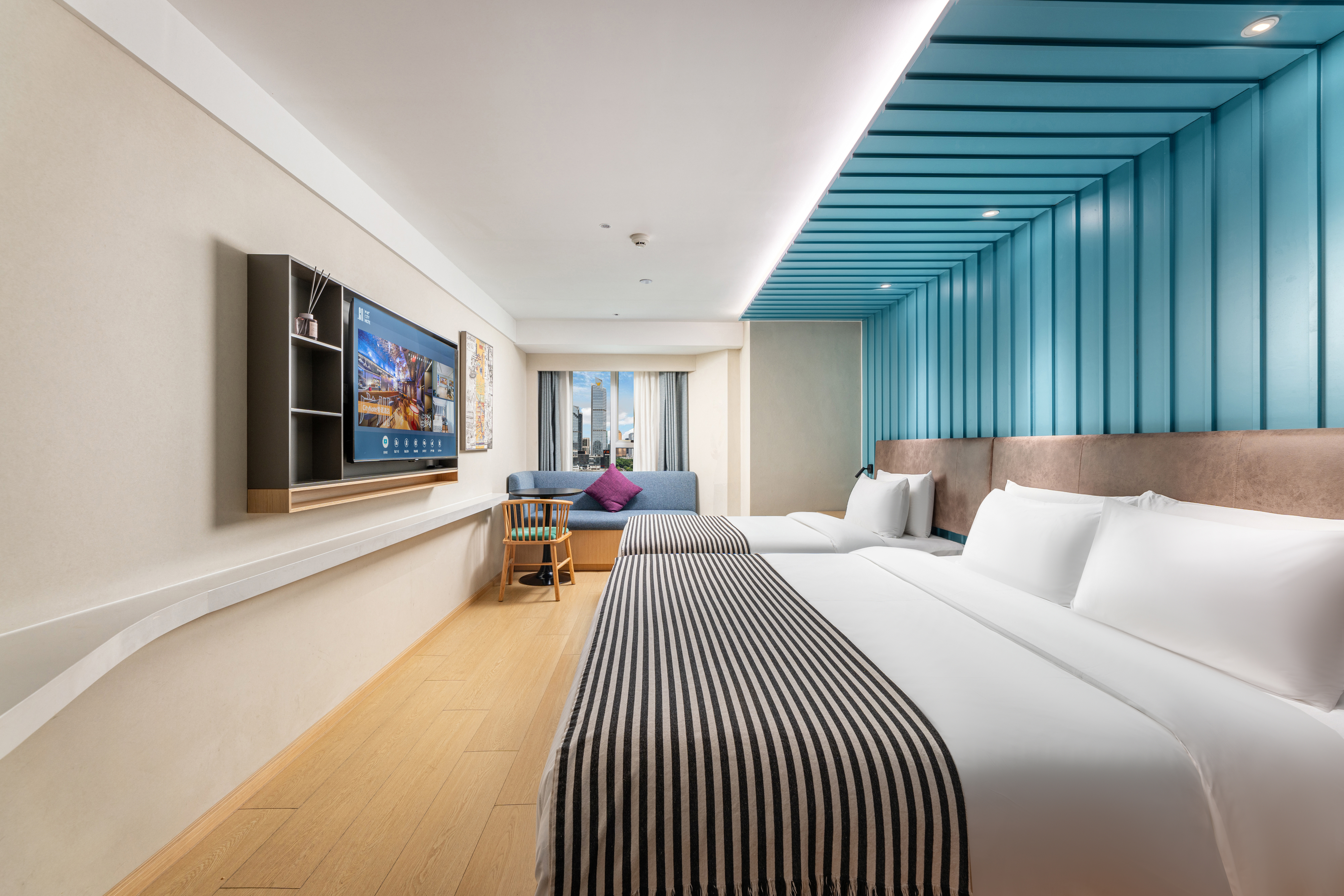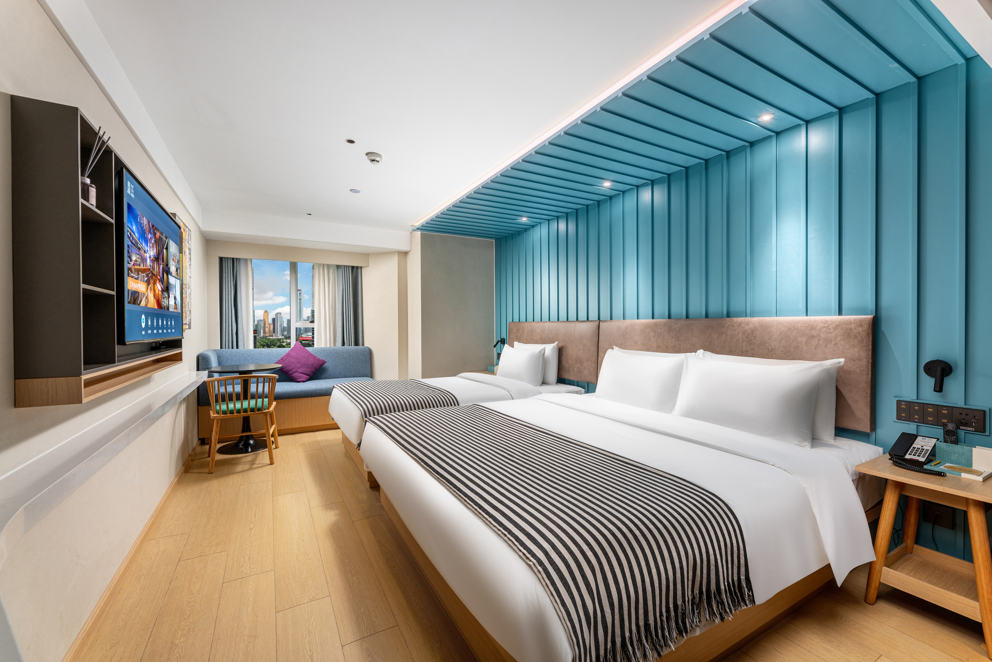 豪華雙床房(零壓床墊+獨立空氣凈化新風系統+電動窗簾)