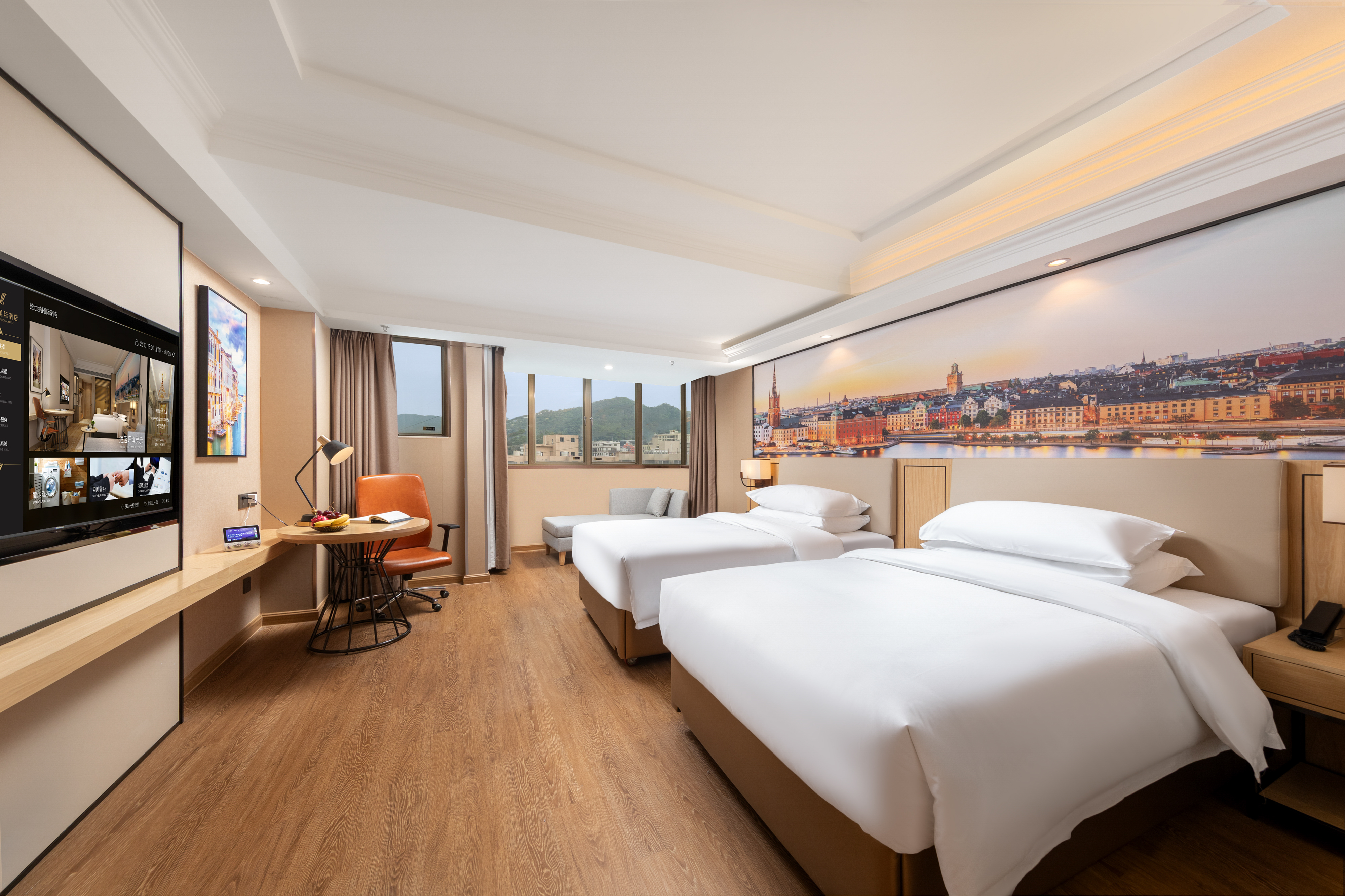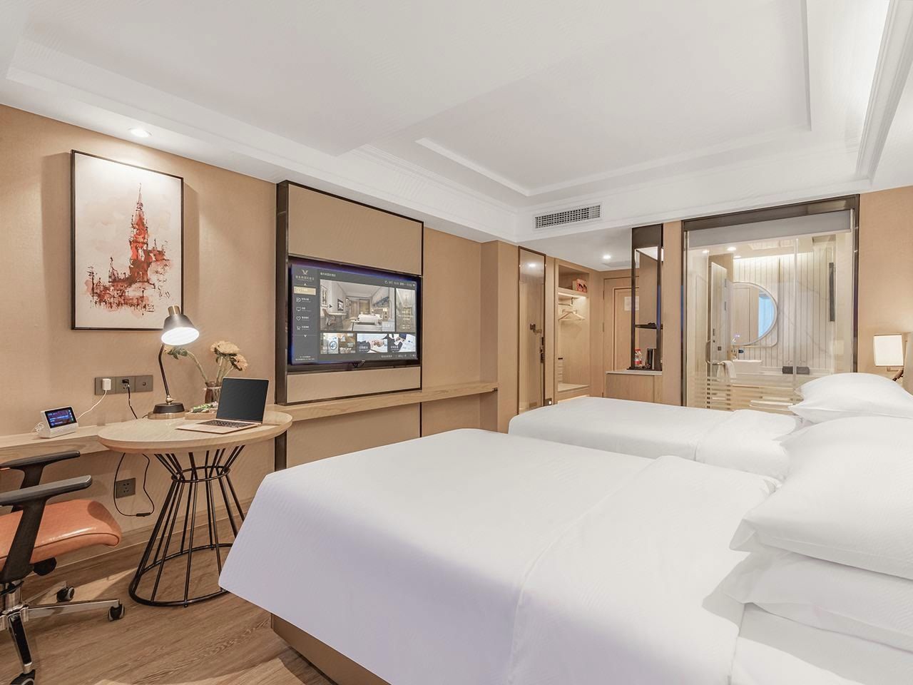 高级双床房(小度智控-梳粧镜-电动窗帘-小圆桌-外窗)