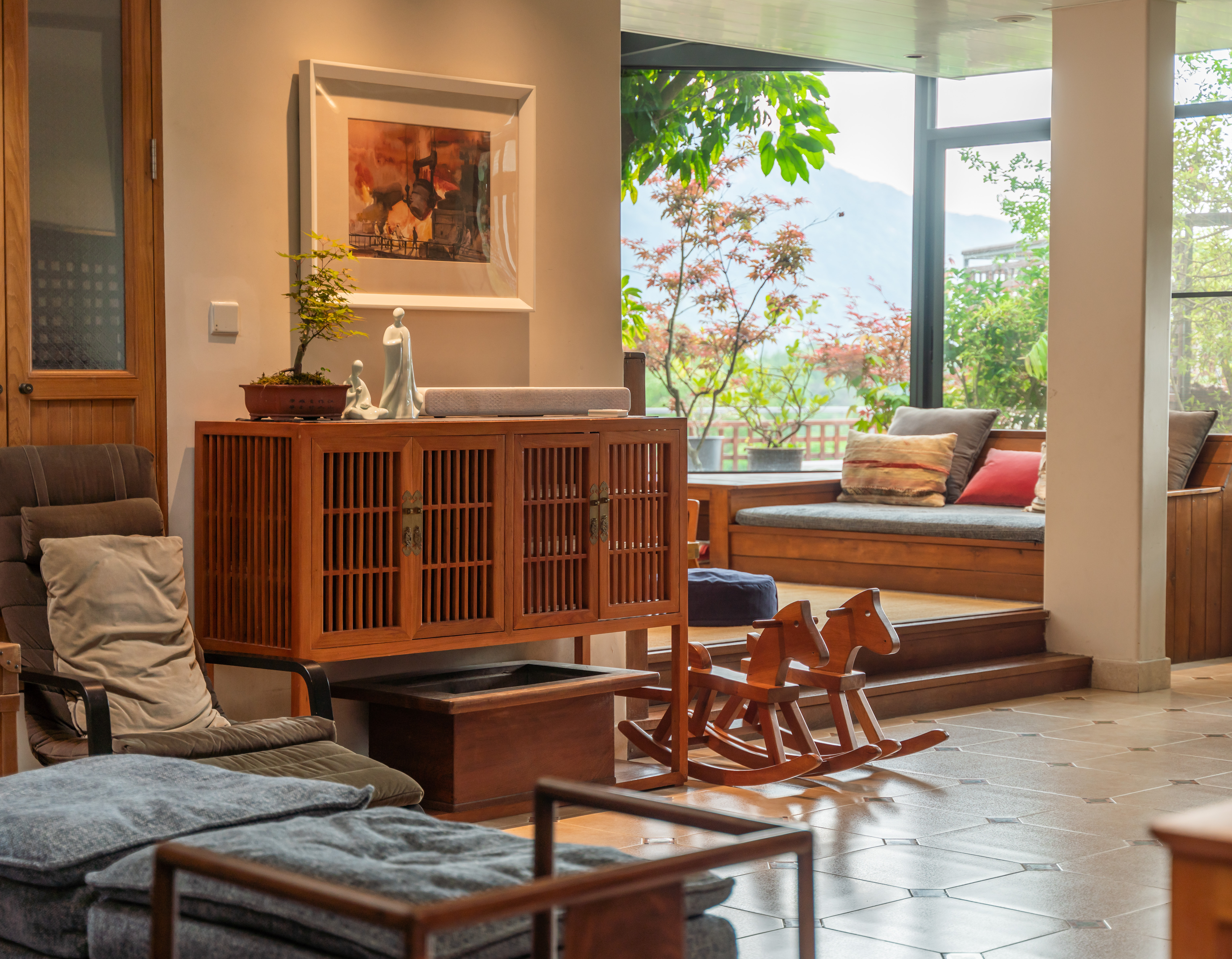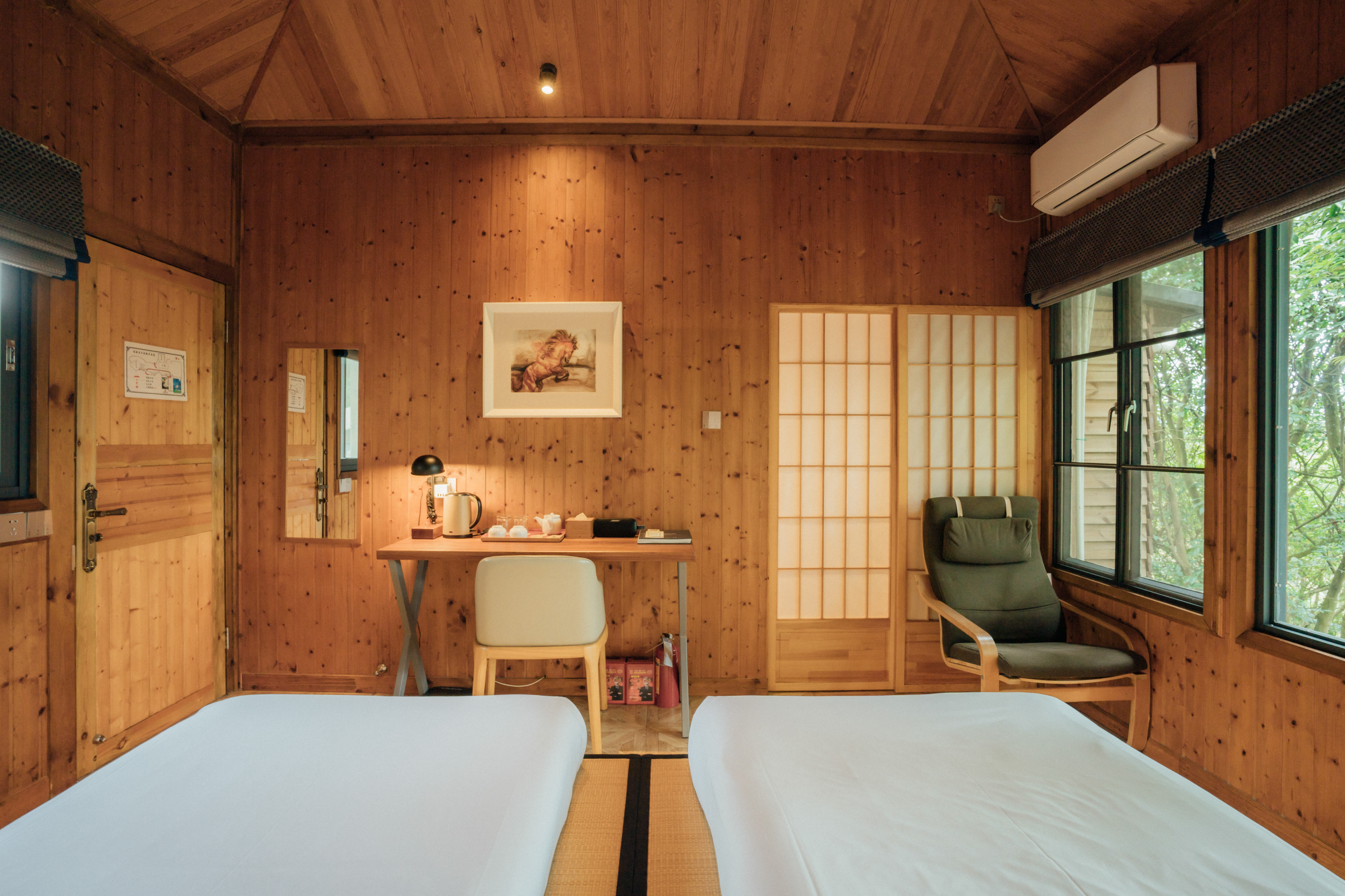玉兔山景榻榻米高级双床木屋房