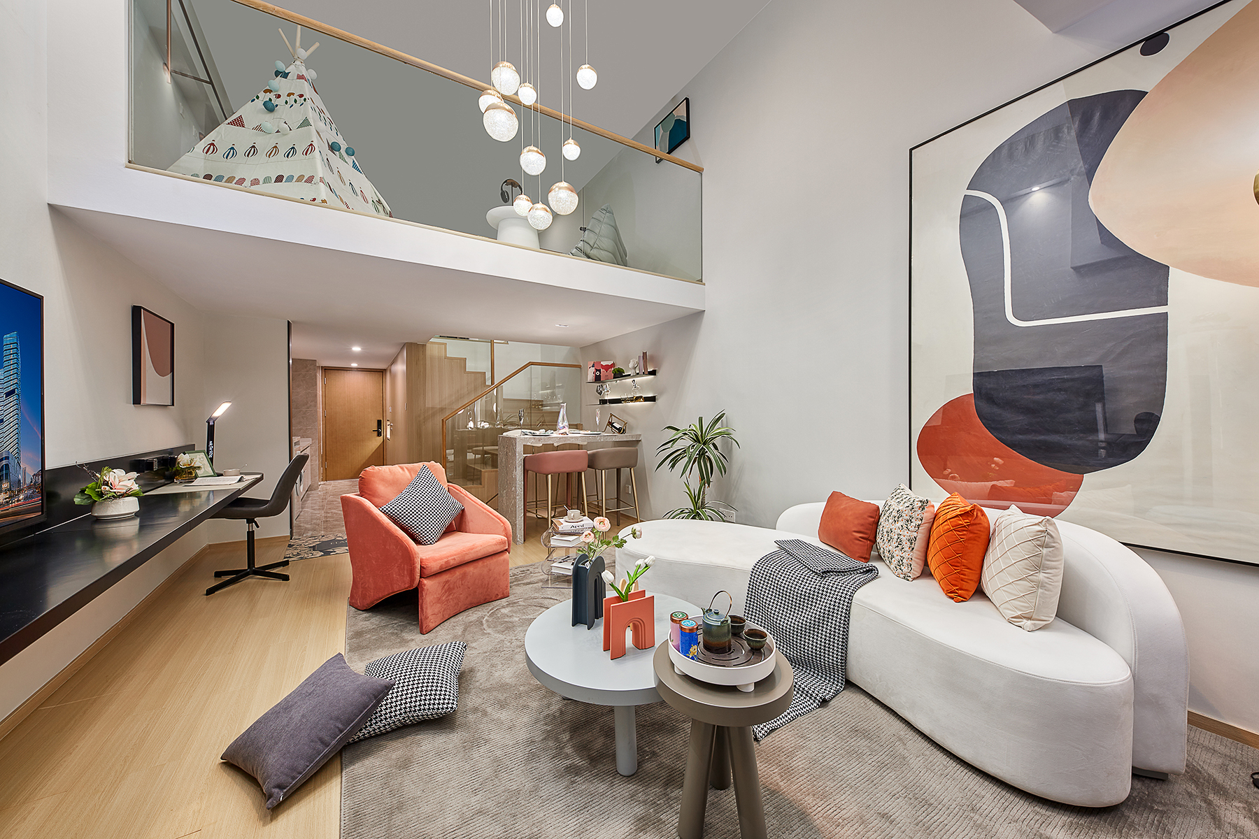 莫兰迪· 商务双床复式套房(大客厅+功夫茶具+65寸高清电视可投屏)