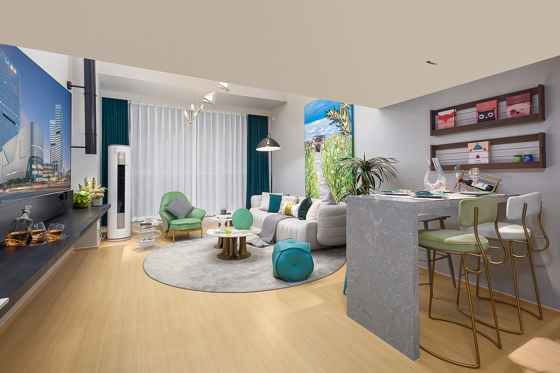 百寸巨幕臻品复式套房(商务办公桌+洗衣机+茶吧枱+挂烫机)