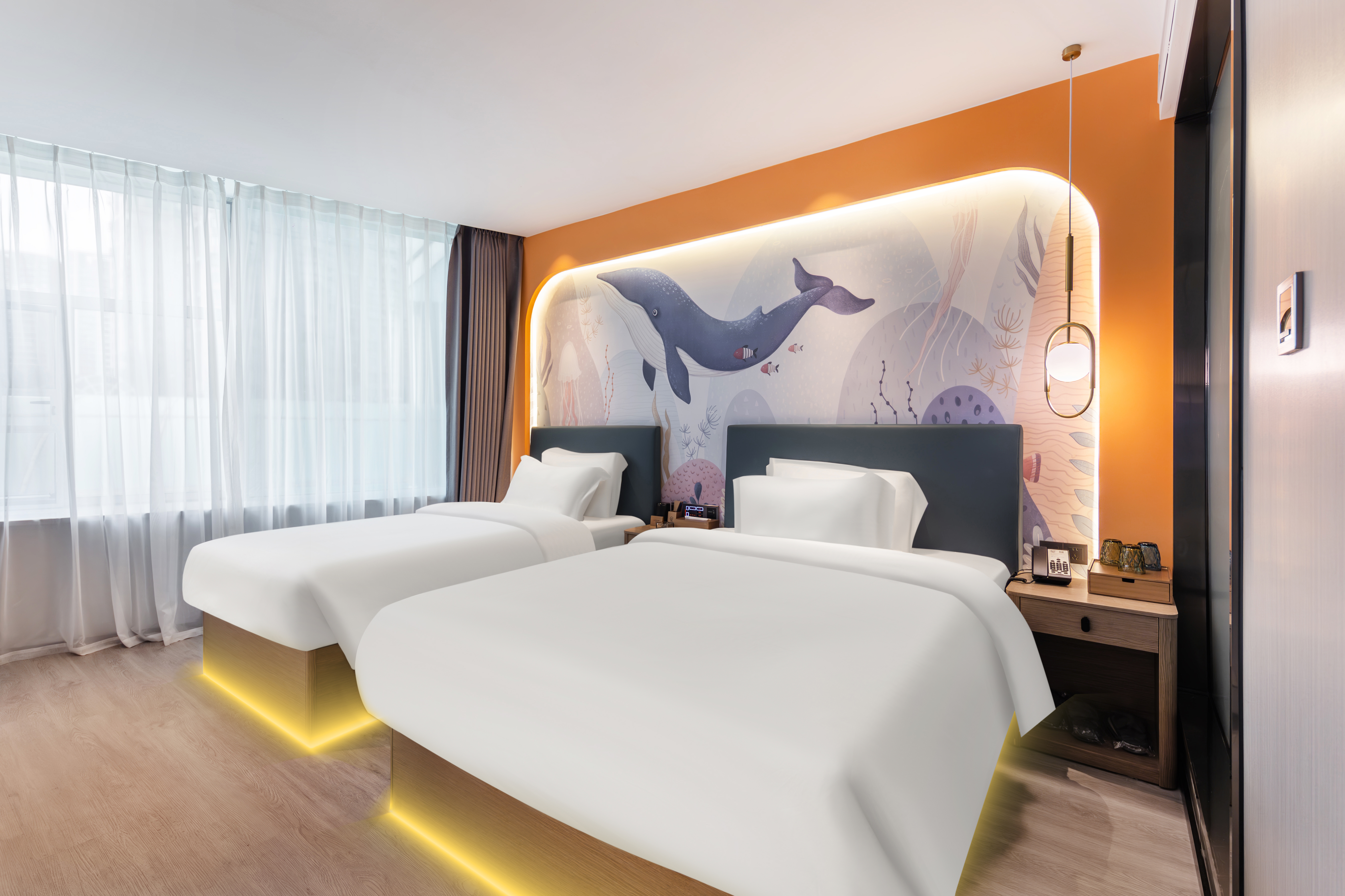 谧静大床房:特色拟真窗景