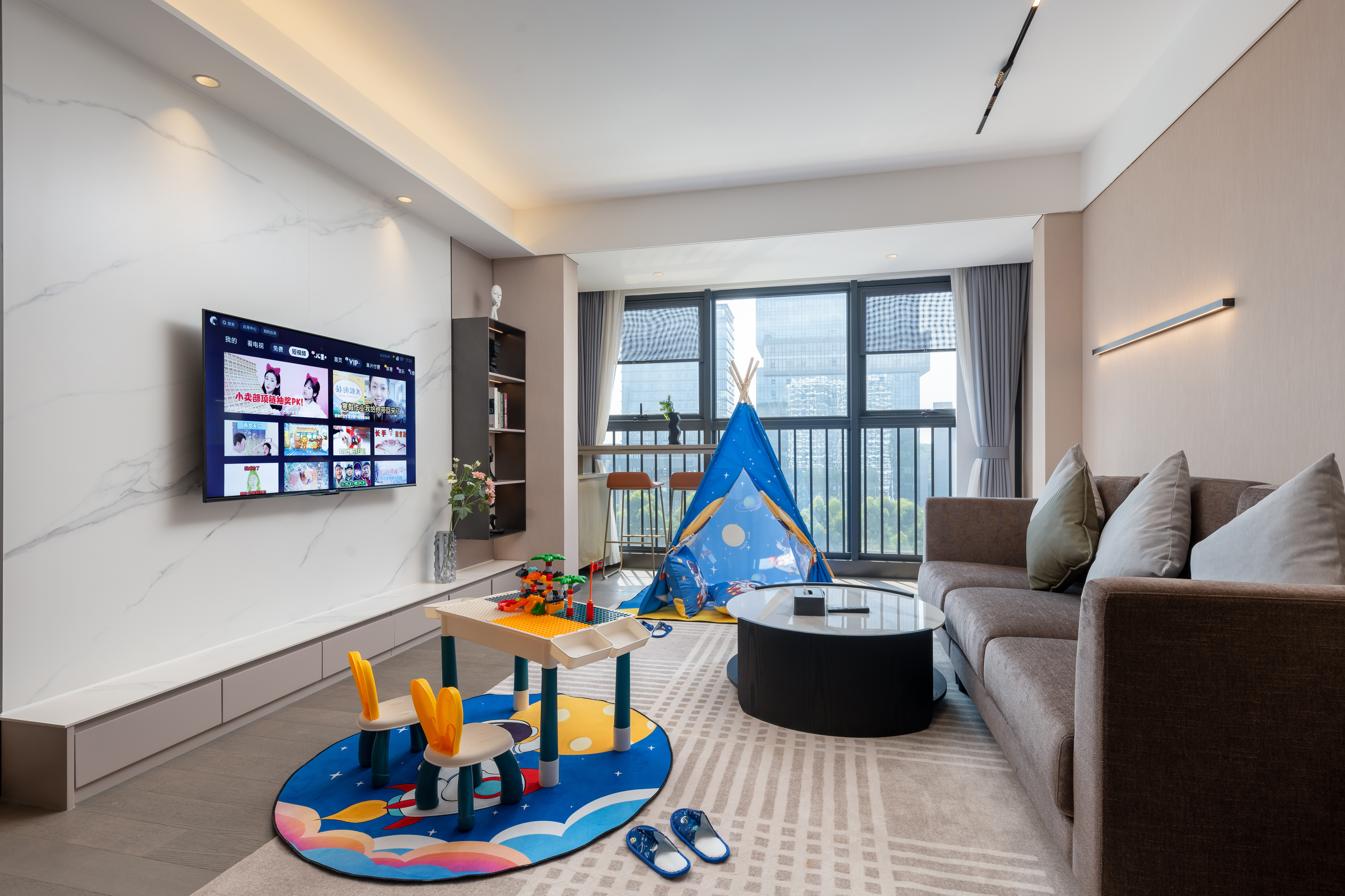 奇莫丨悦享亲子阳光城景双床房【两房一厅丨松下电视丨零压乳胶床垫丨全景落地窗丨洗烘一体丨科勒衞浴丨浴缸丨智能马桶丨冰箱丨微波炉】