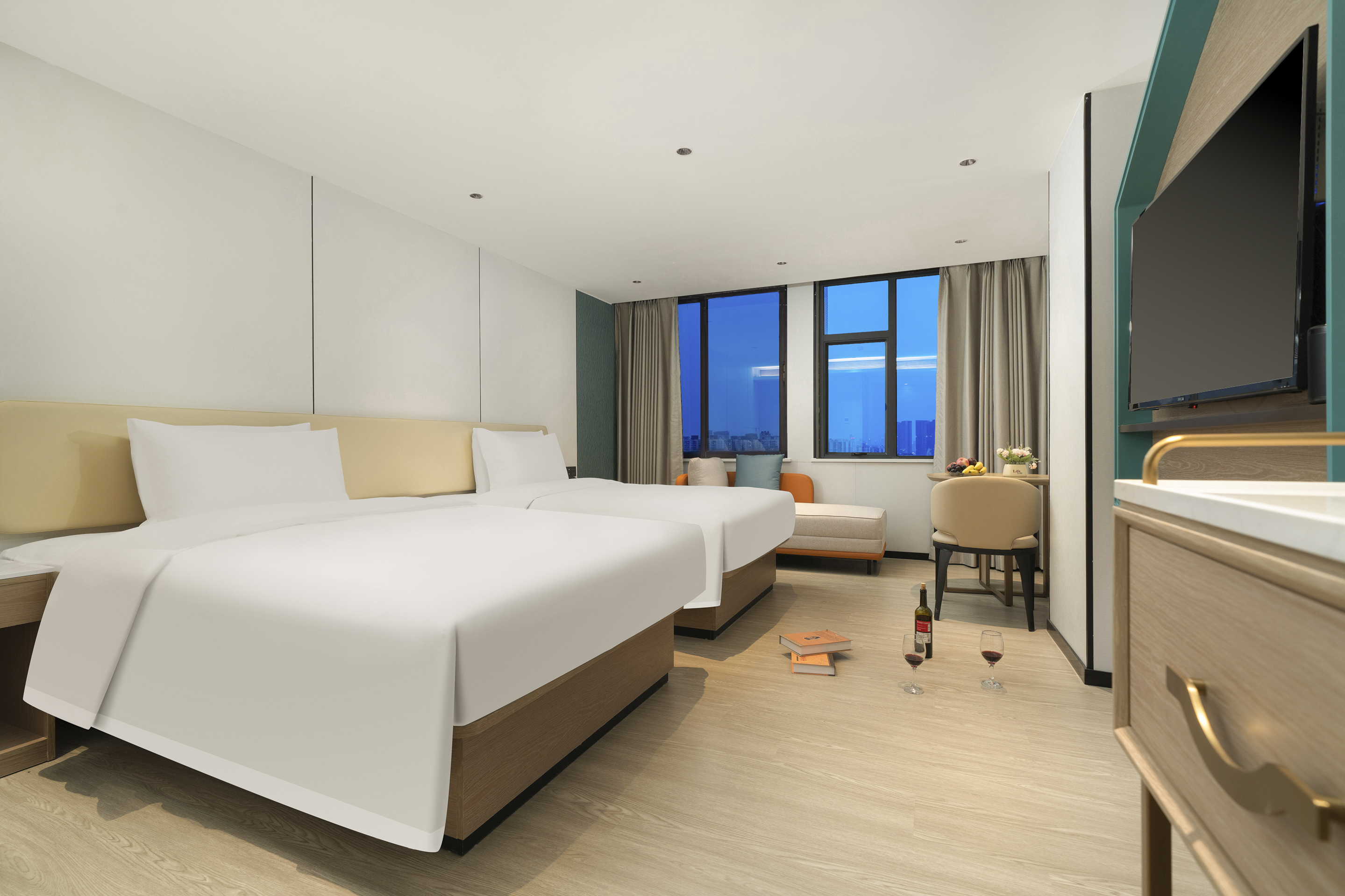 行政双床房丨高空夜景·明亮视野·小度智能客控