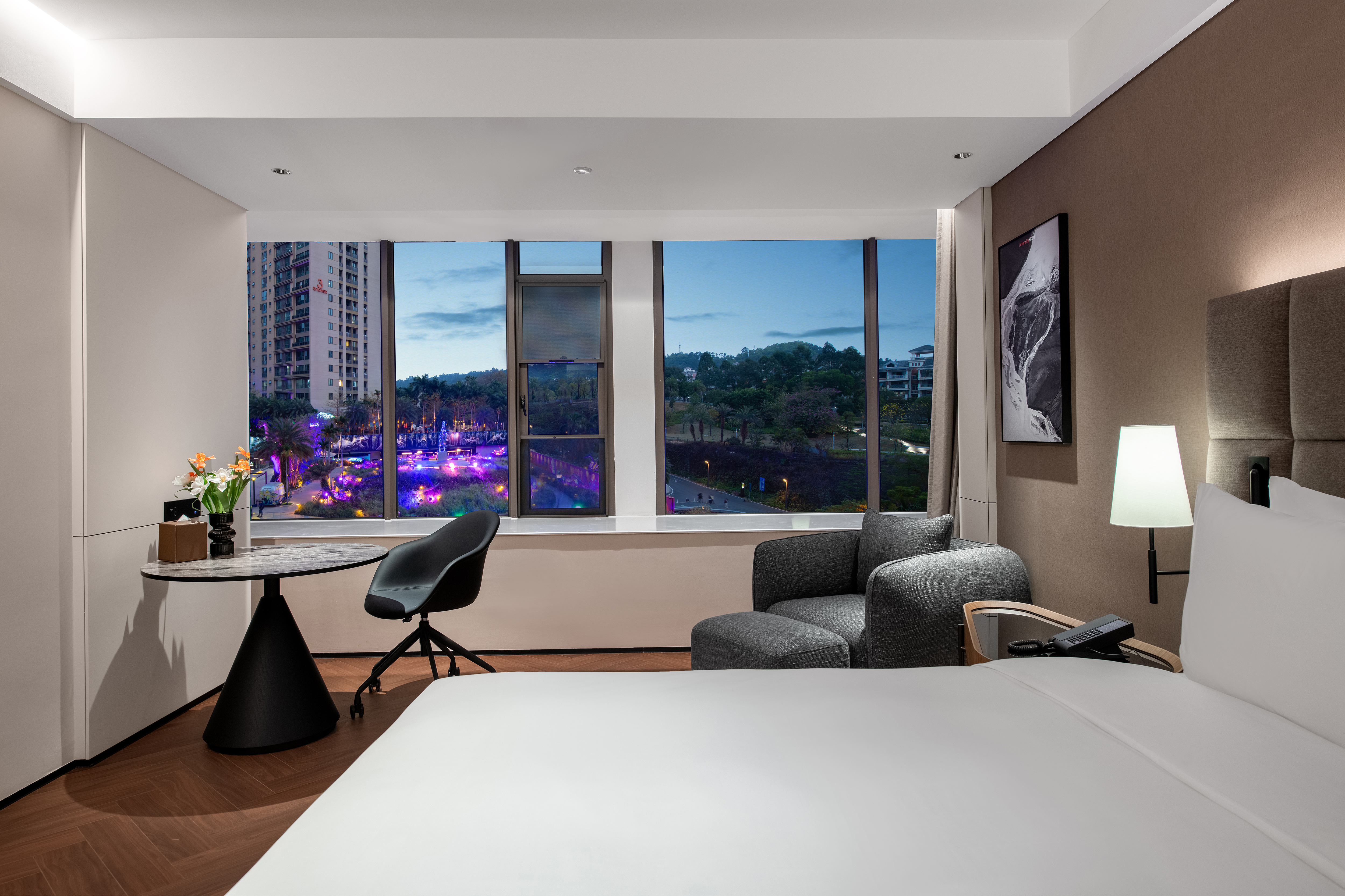 城际高级园景大床房(大飘窗+恐龙公园璀璨夜景)