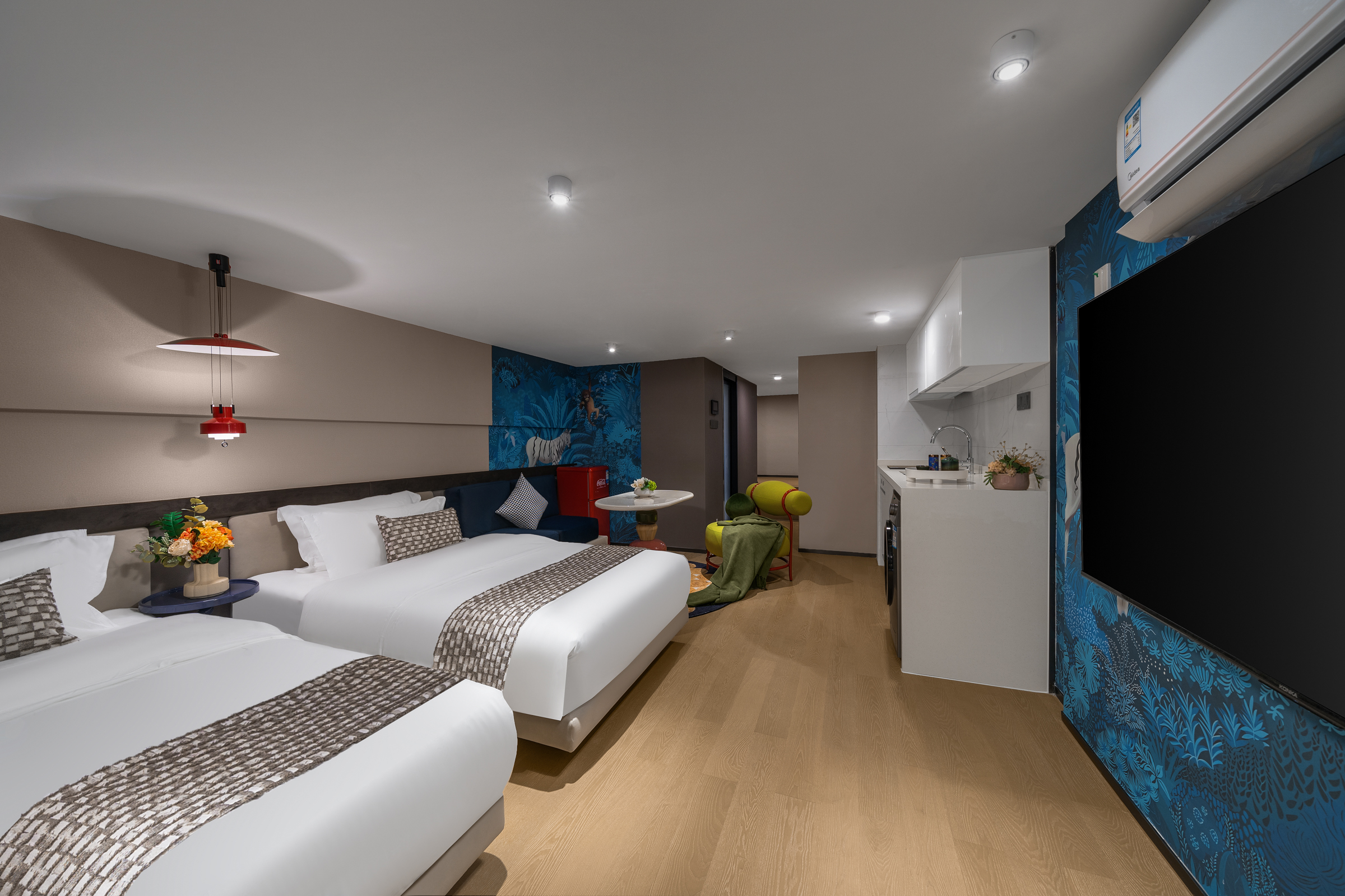 梦幻森语轻奢双床LOFT上叠(65寸高清电视投屏+烘乾洗衣机+乳胶床垫)