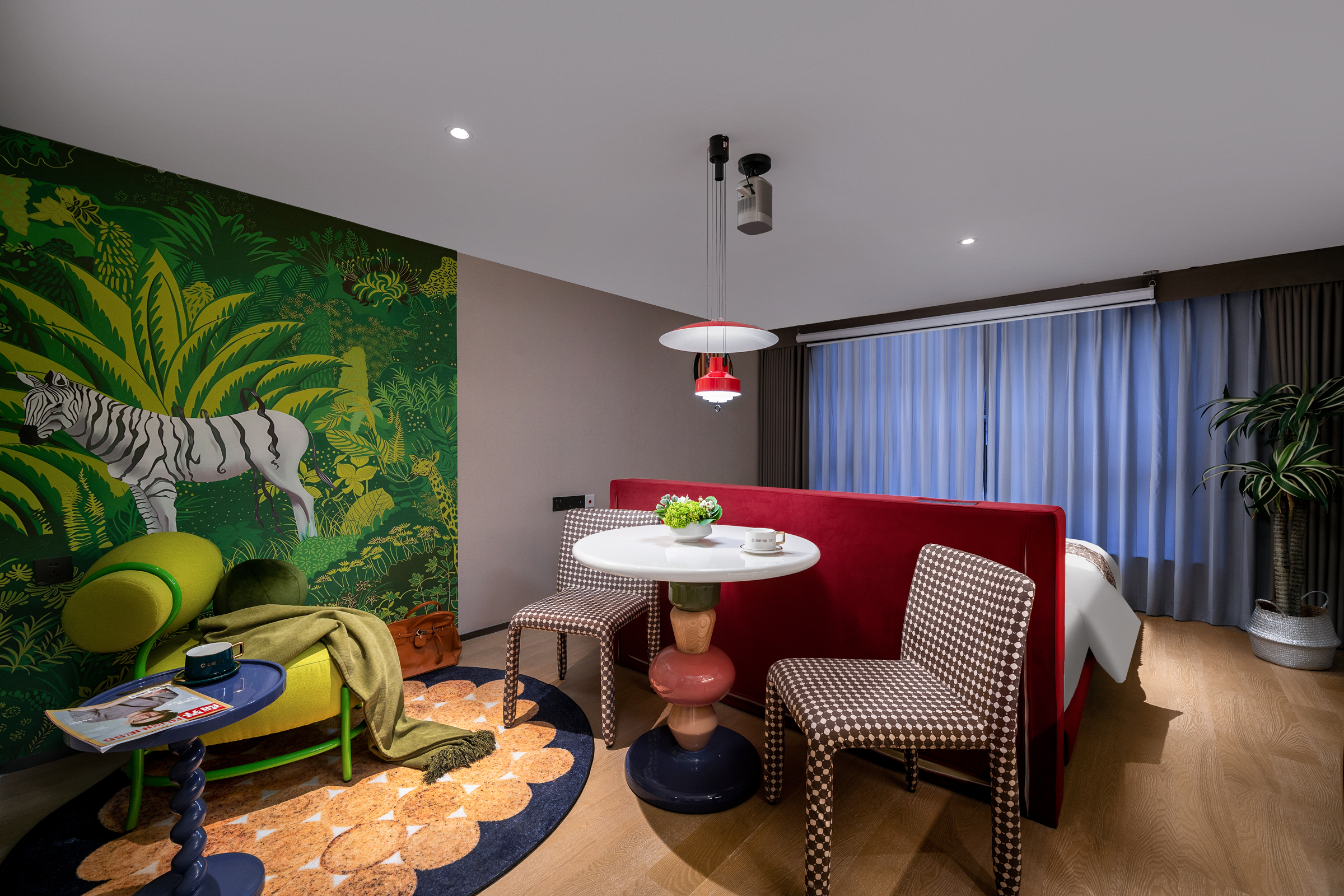 奇幻森林轻奢大床LOFT下叠(百寸巨幕影音+烘乾洗衣机+乳胶床垫)