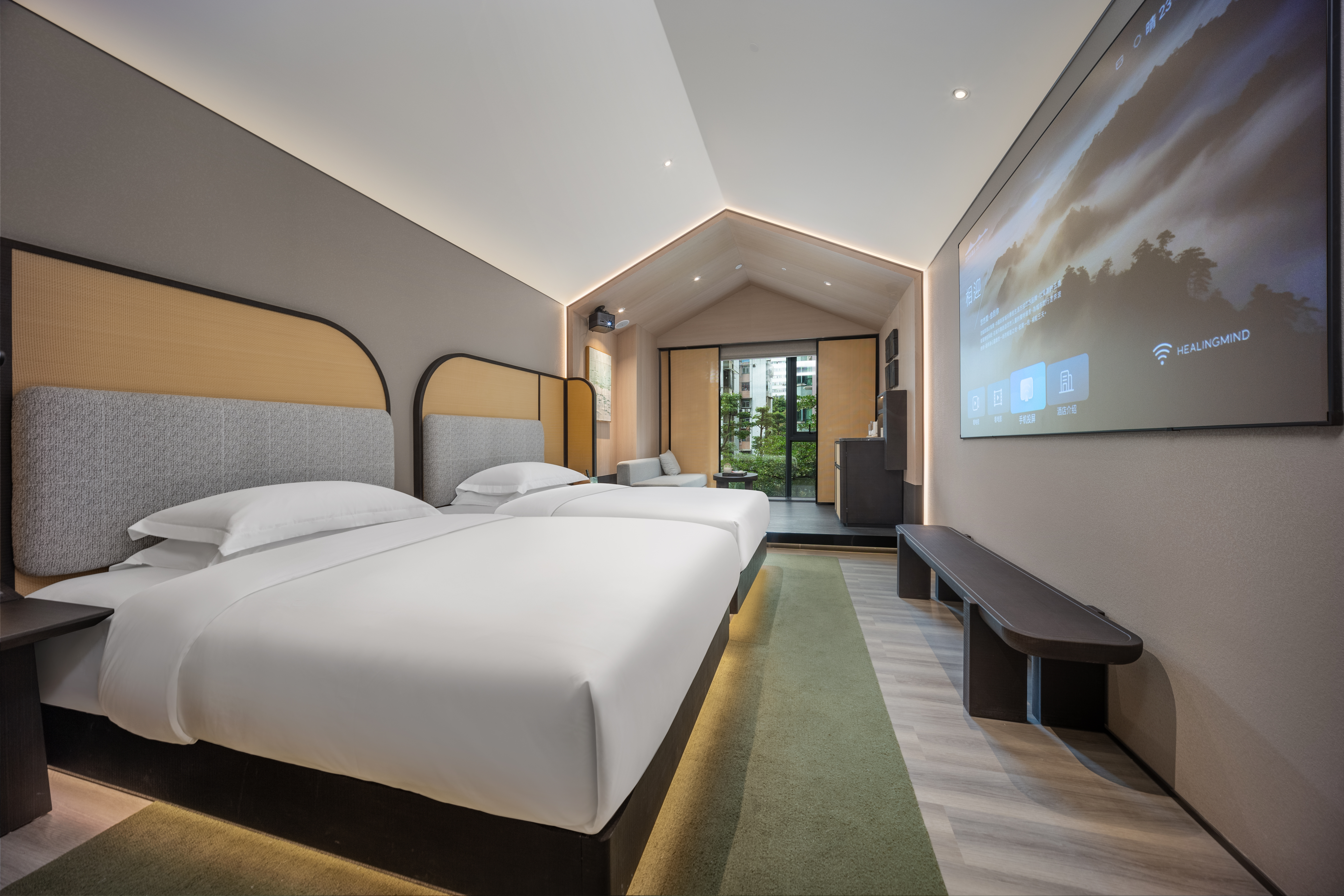 沐岚园景双床房?泊心茶亭|冥想睡眠 | 巨幕投影