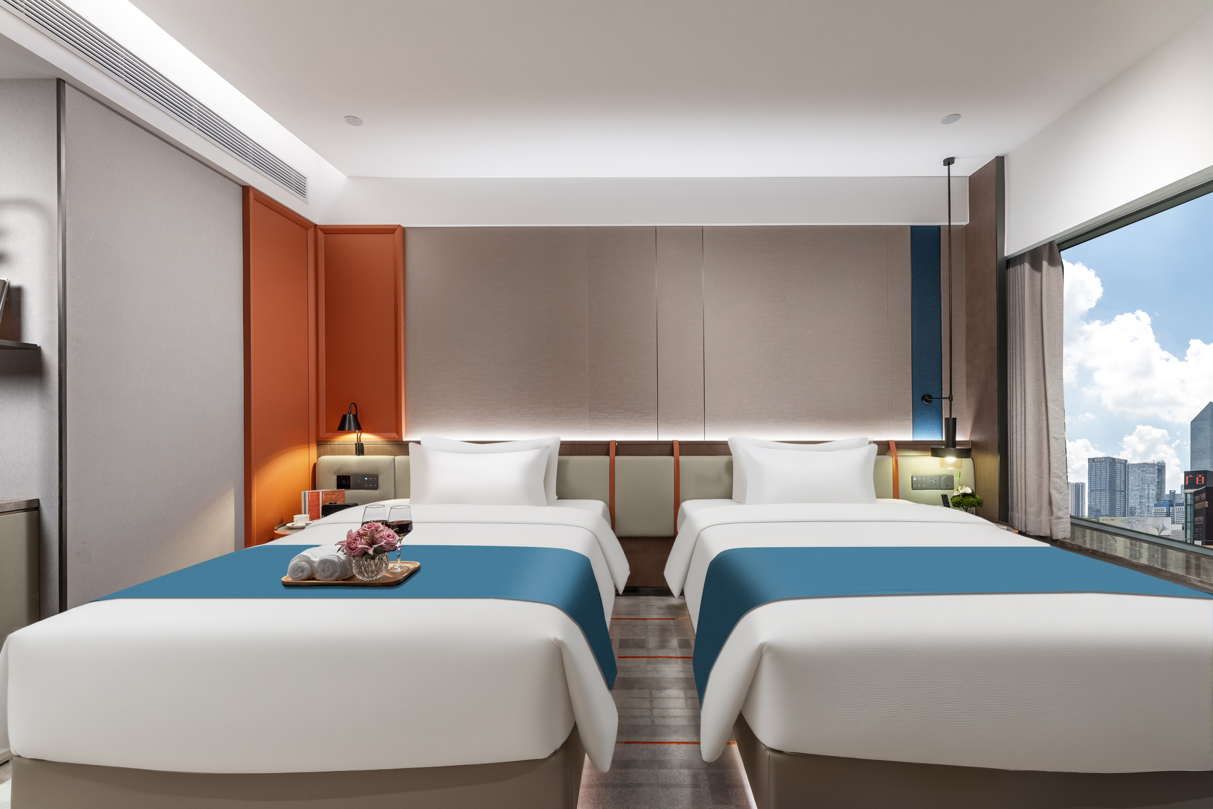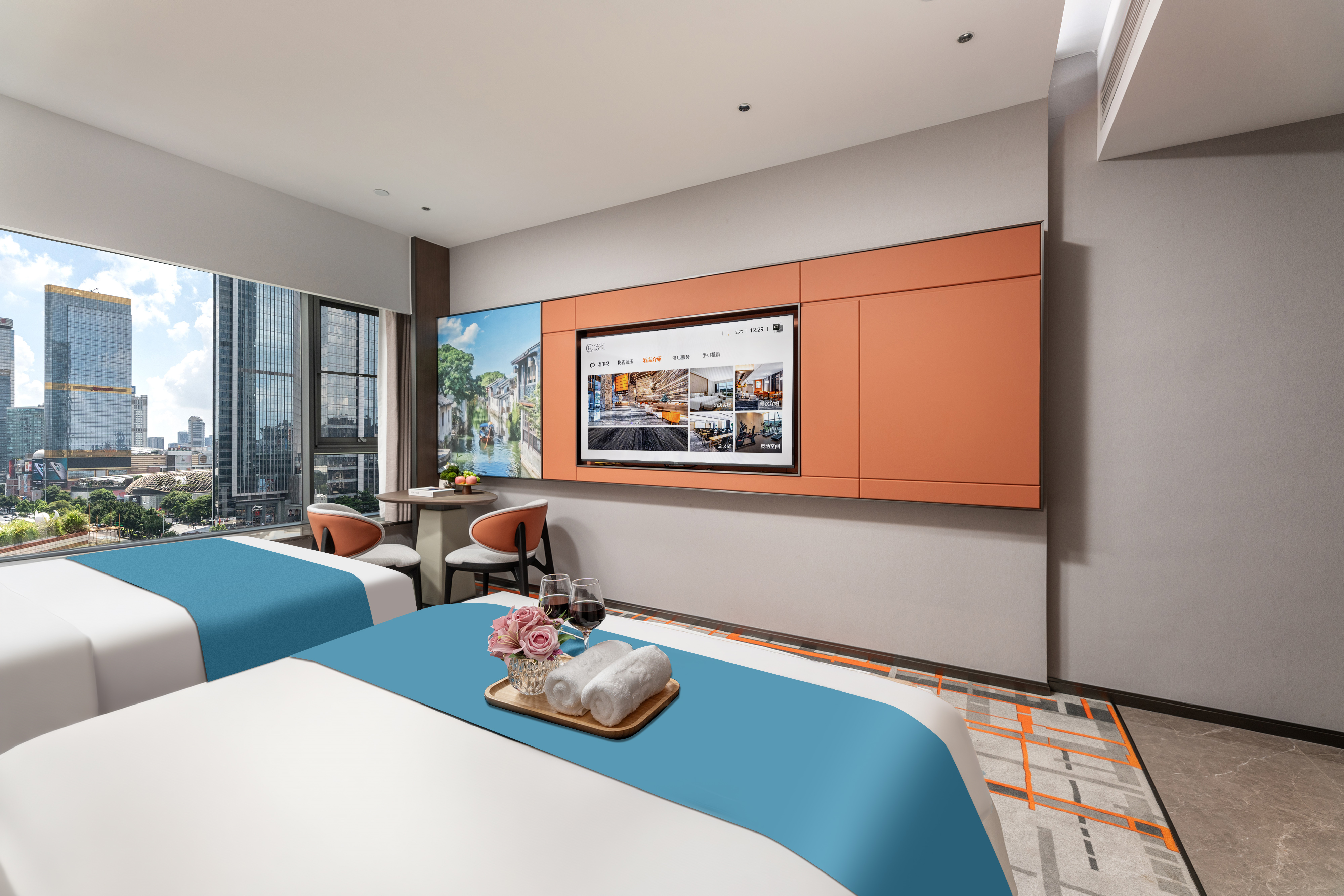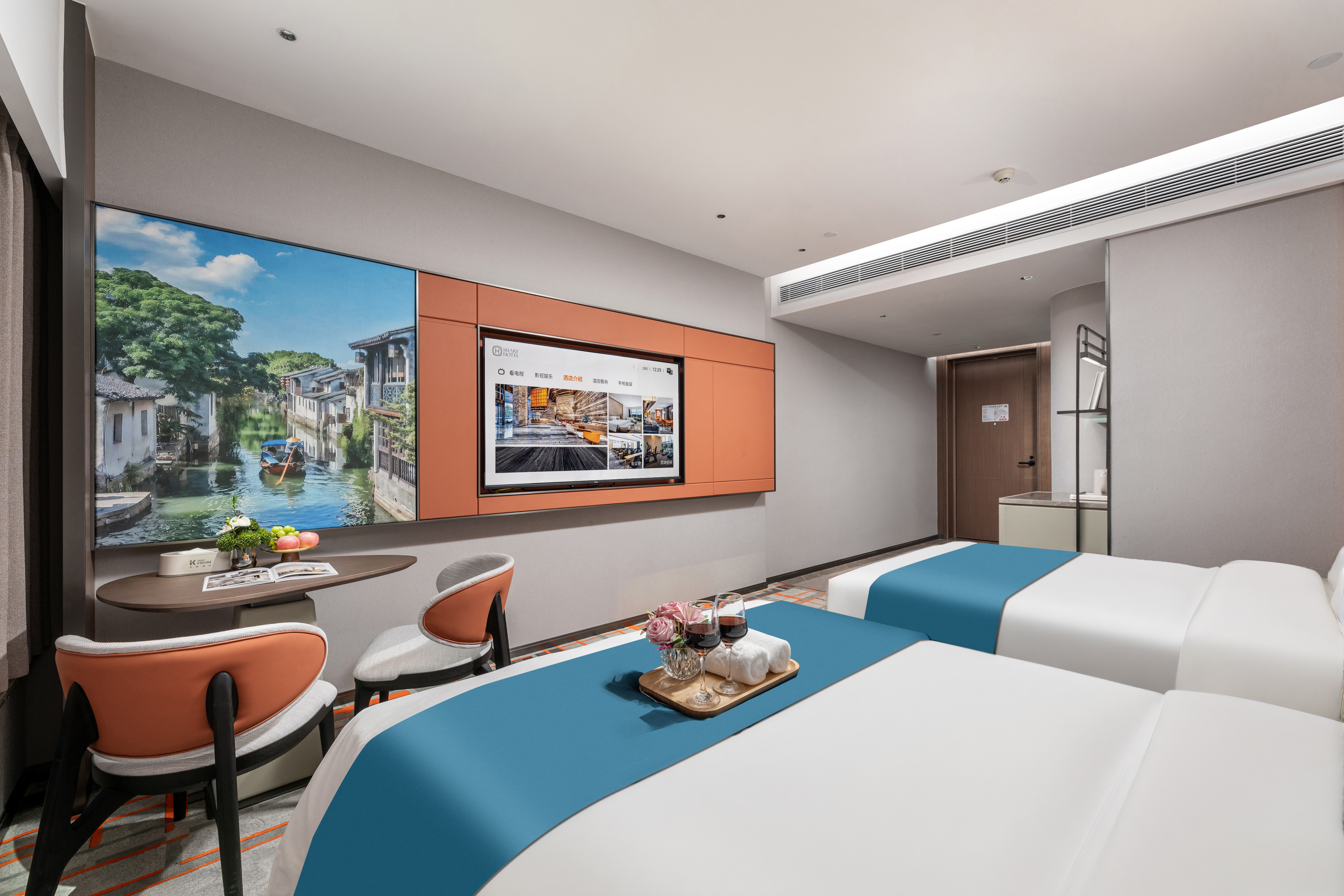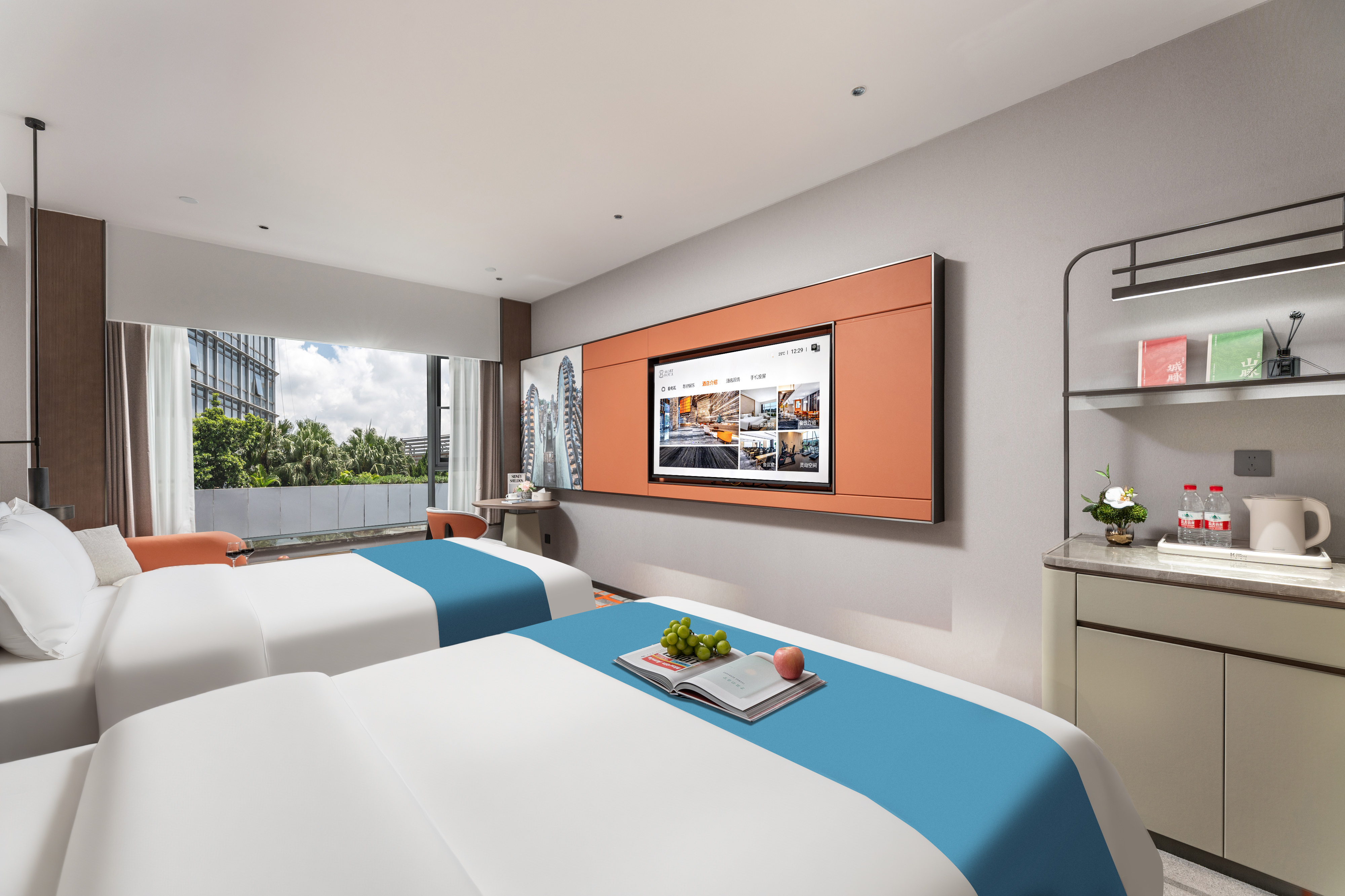 商务双床房(智能客控+65寸投屏电视+冰箱)
