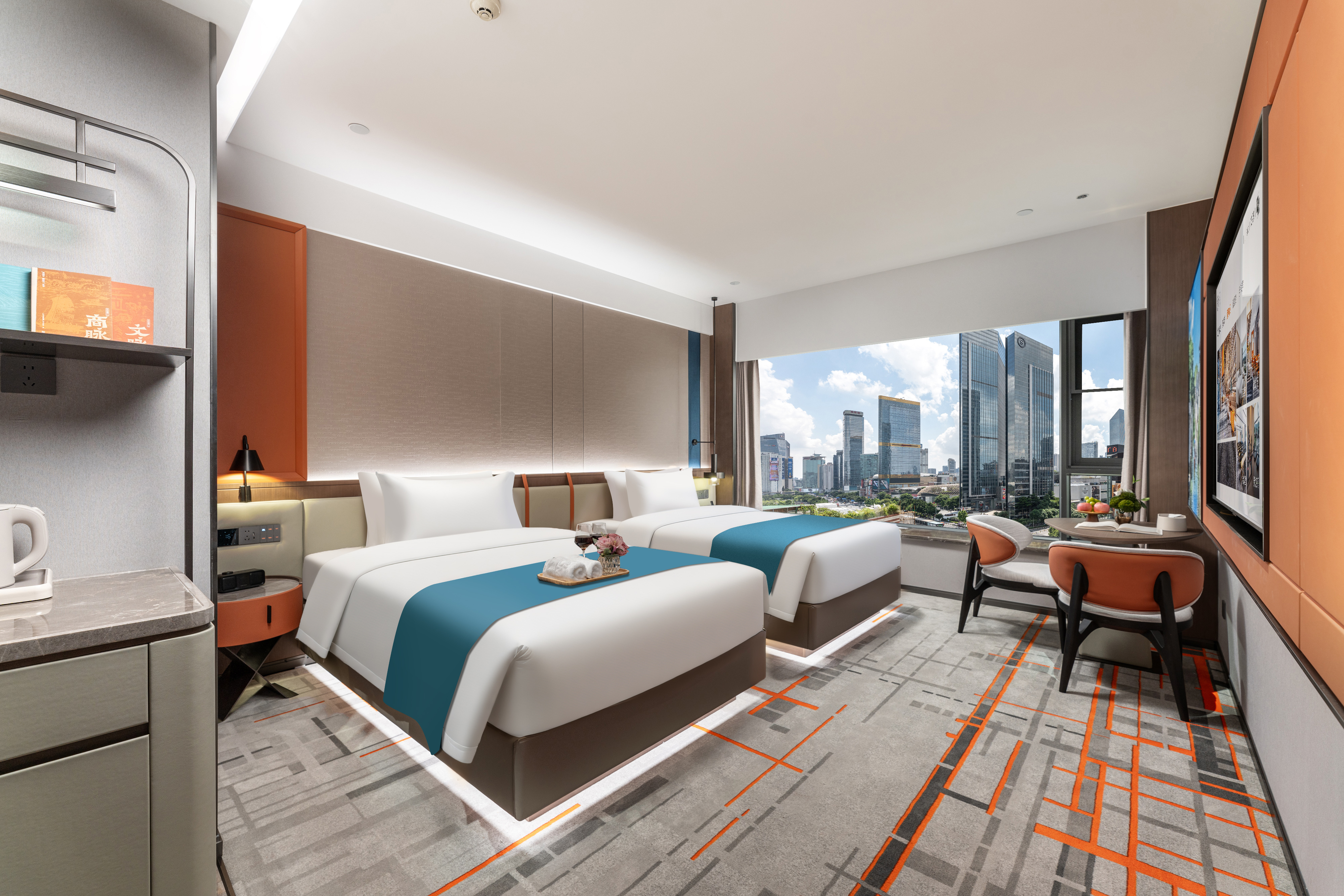 城景|豪华双床房(览天河夜景+65寸投屏电视+冰箱)