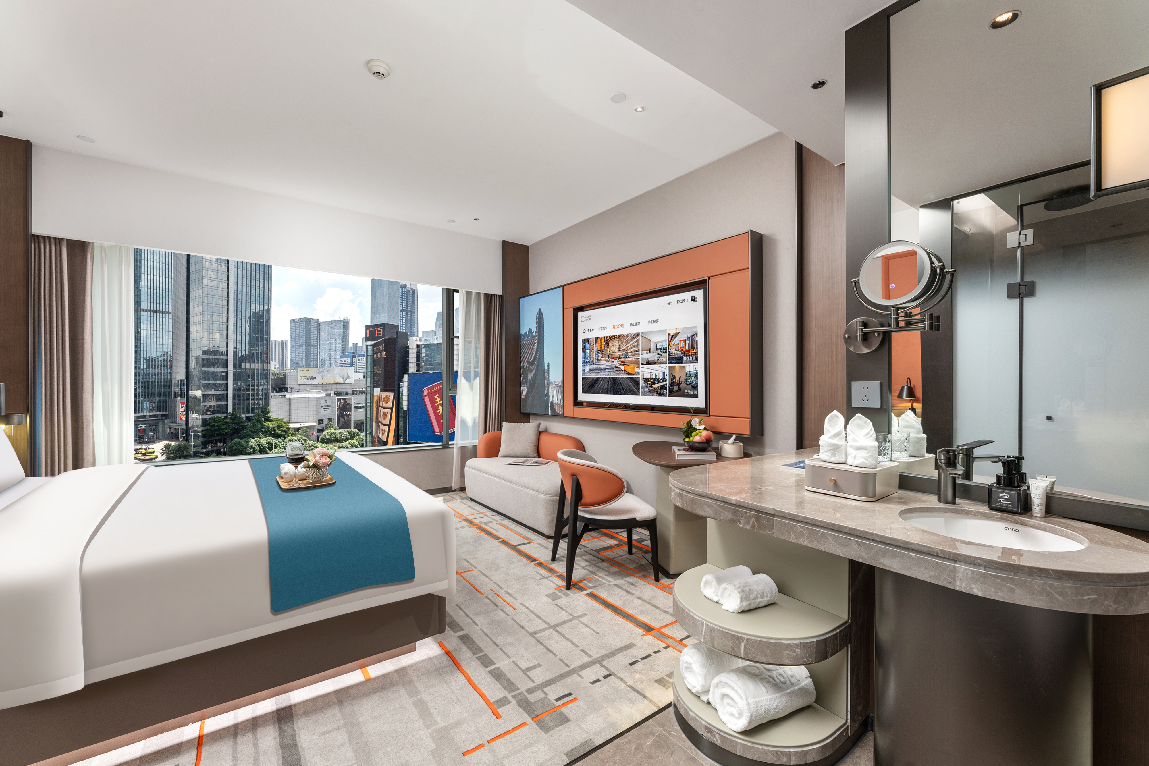 城景|豪华大床房(览天河夜景+65寸投屏电视+冰箱)