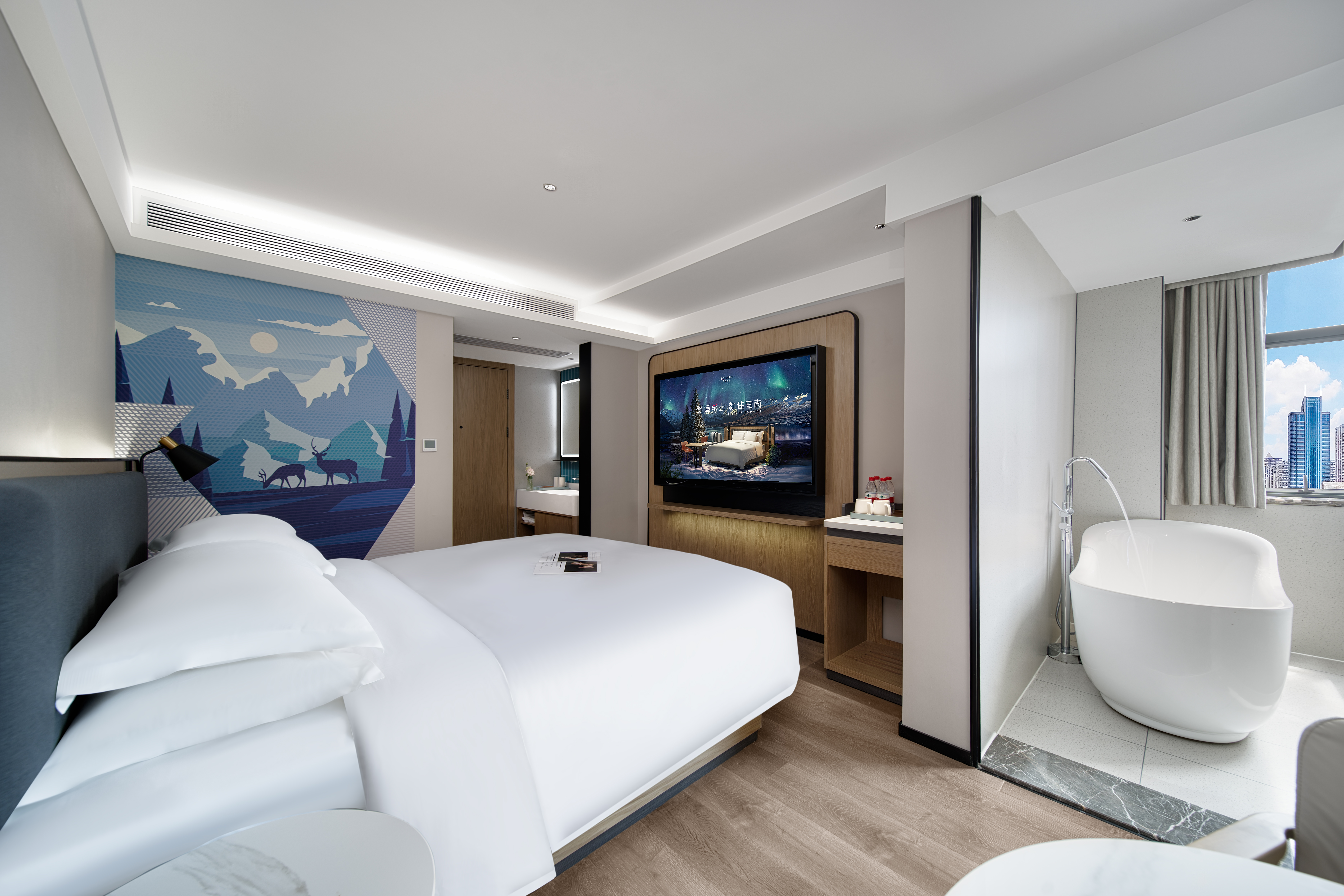零压泡浴大床房【超大可投屏电视+浴缸+超大玻璃窗】