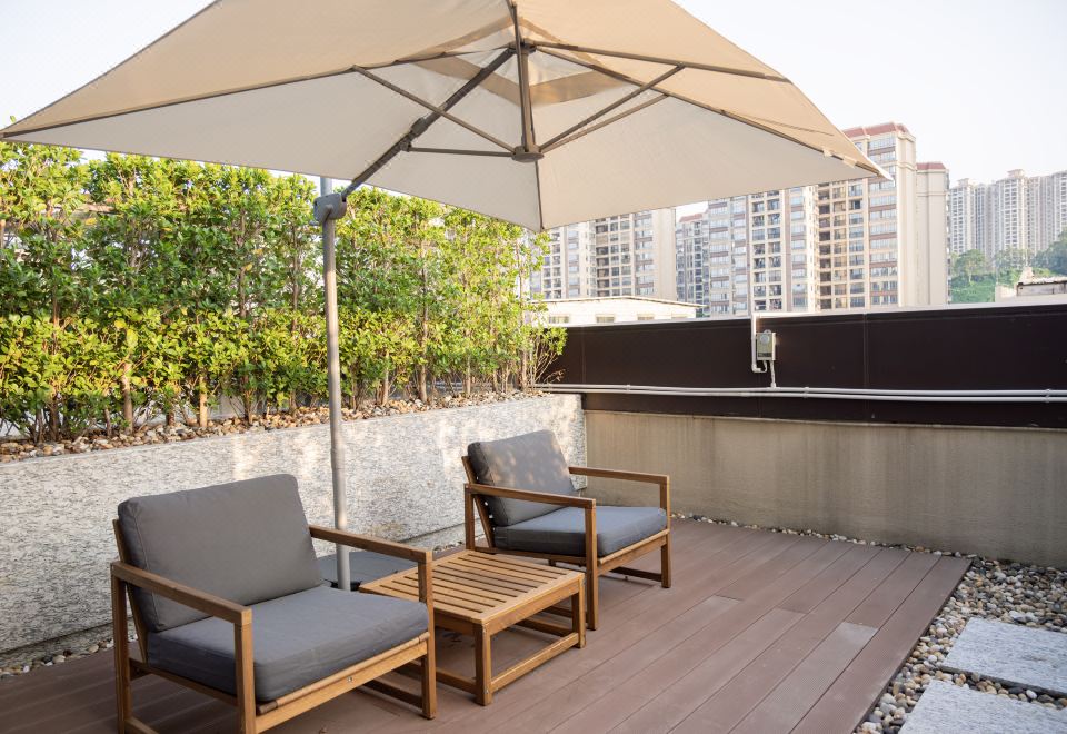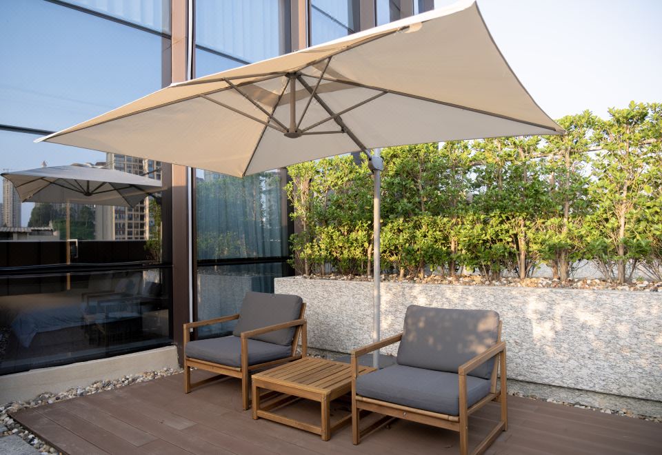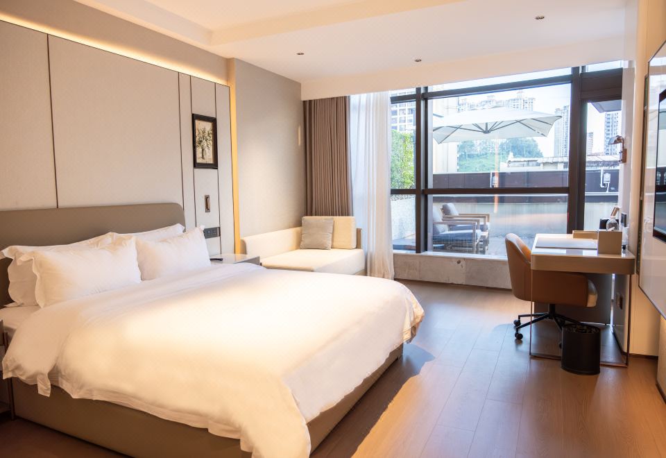 阳台行政豪华大床房(180度景观露台+茶具+小冰箱)