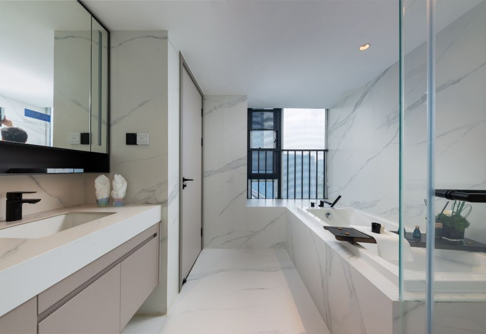 奇莫丨阳光园林城景大床房【松下投屏电视丨皇朝零压乳胶床垫丨观景阳台丨洗烘一体洗衣机丨科勒衞浴丨浴缸丨智能马桶丨冰箱】