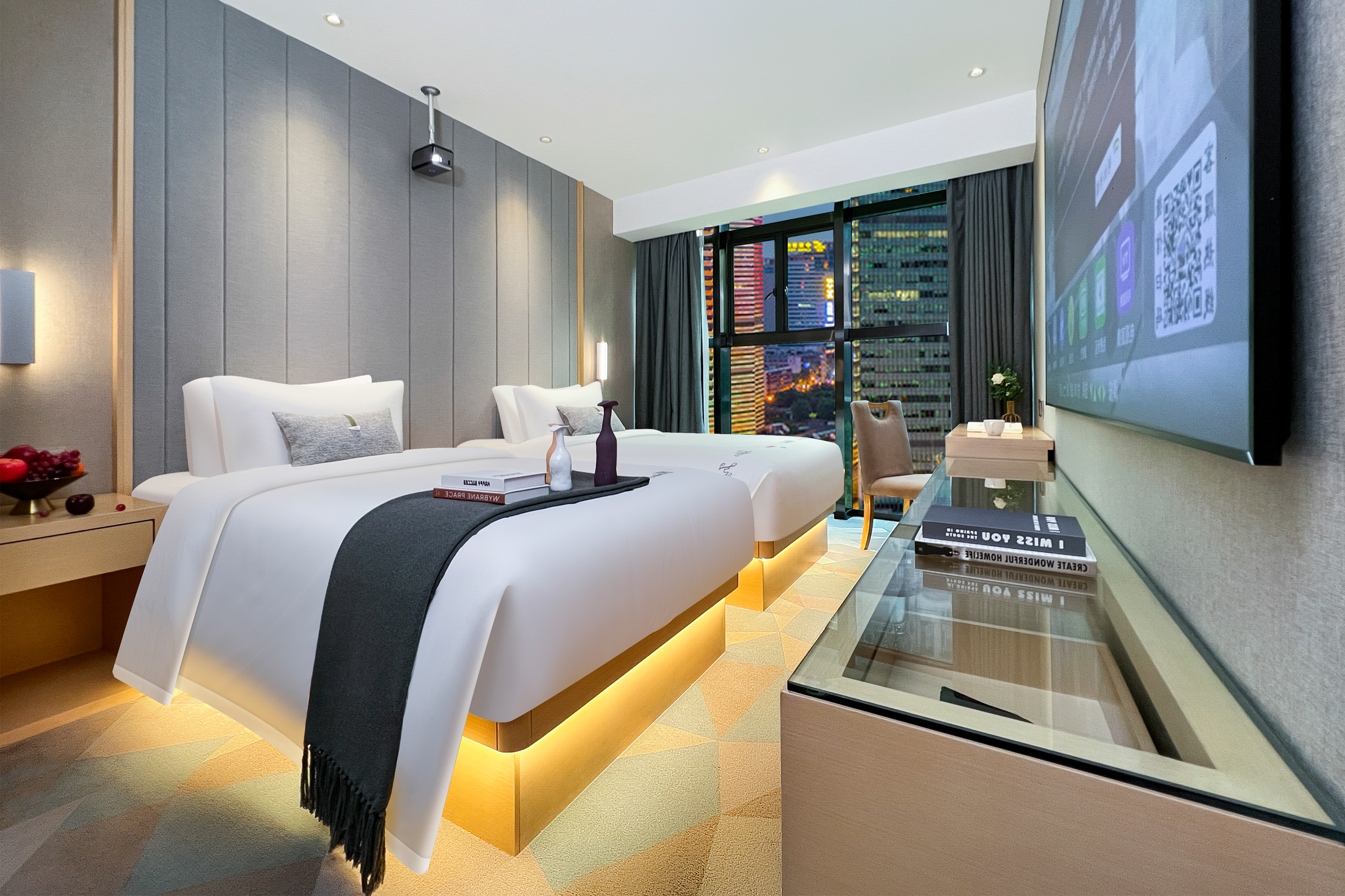 丽凡·观影双床房【120寸高清巨幕投屏·全景落地窗】