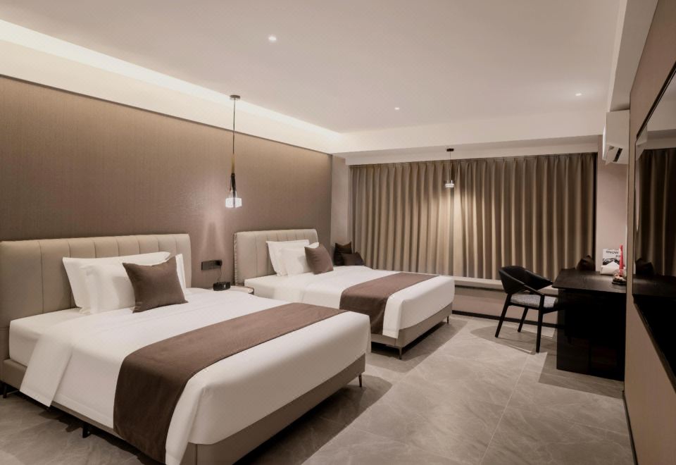 青石·行政双床房(安心舒睡+百米高空飘窗城景)