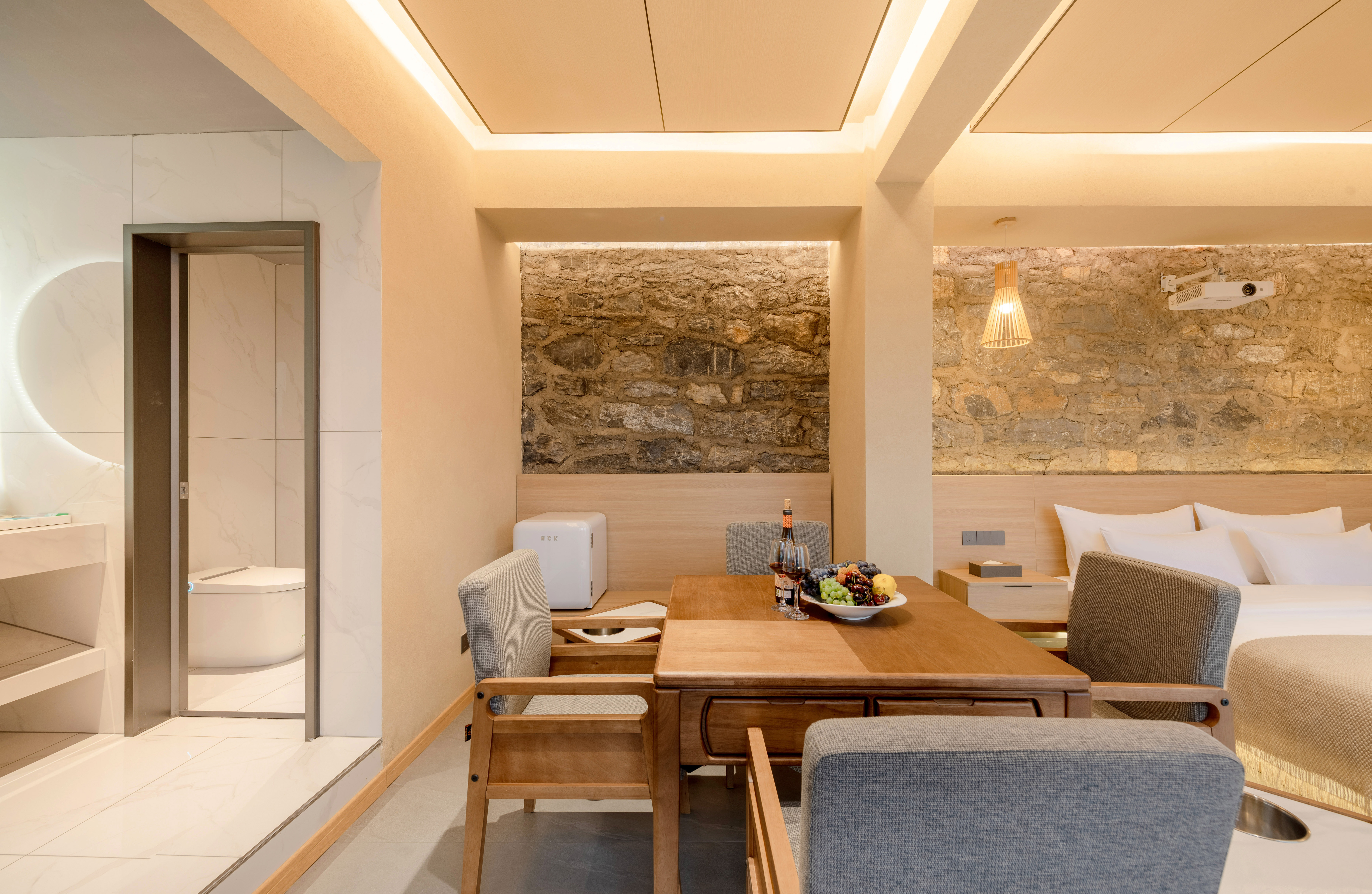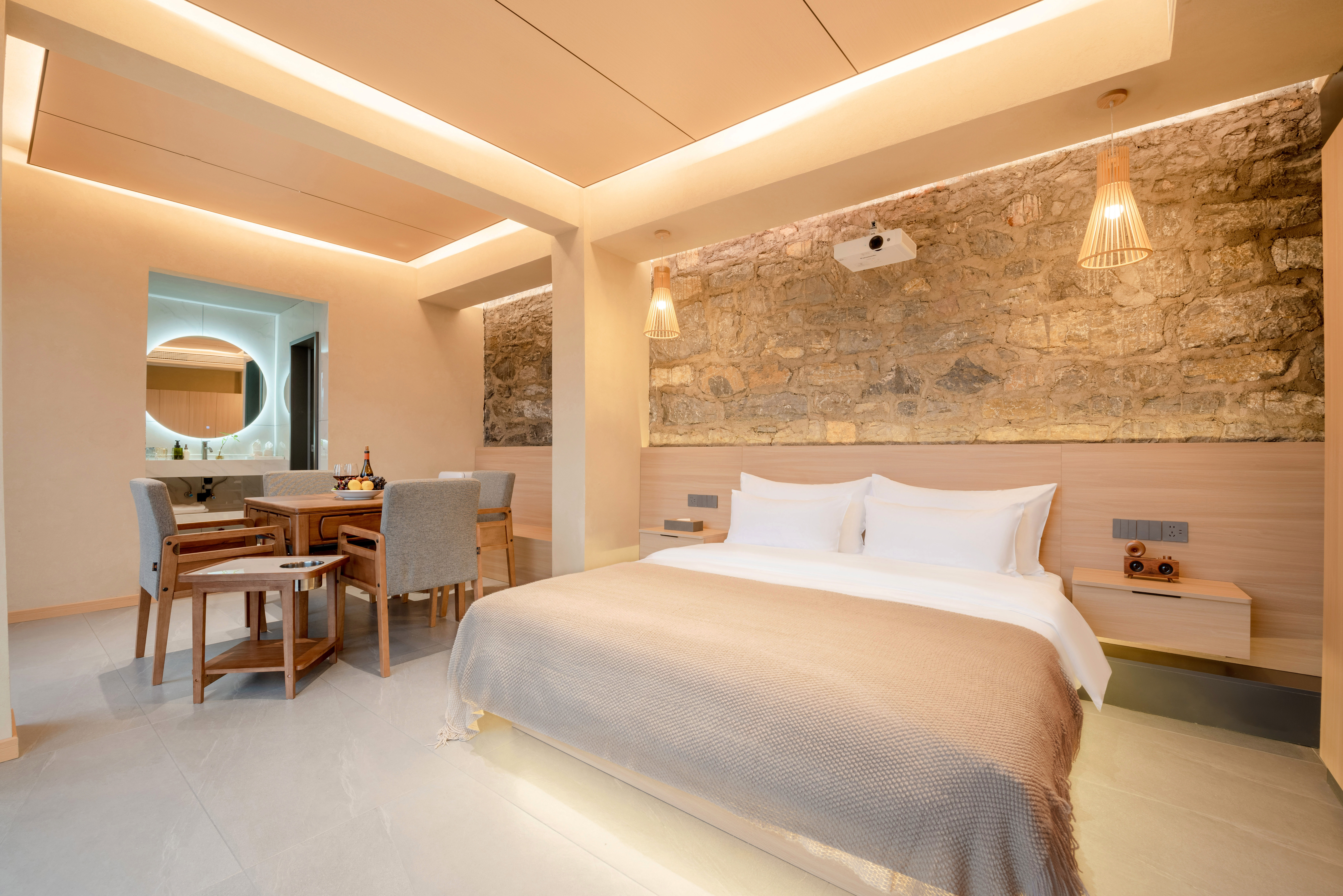 【天驿】精致瀑景大床房(巨幕投影+休闲棋牌+落地窗)