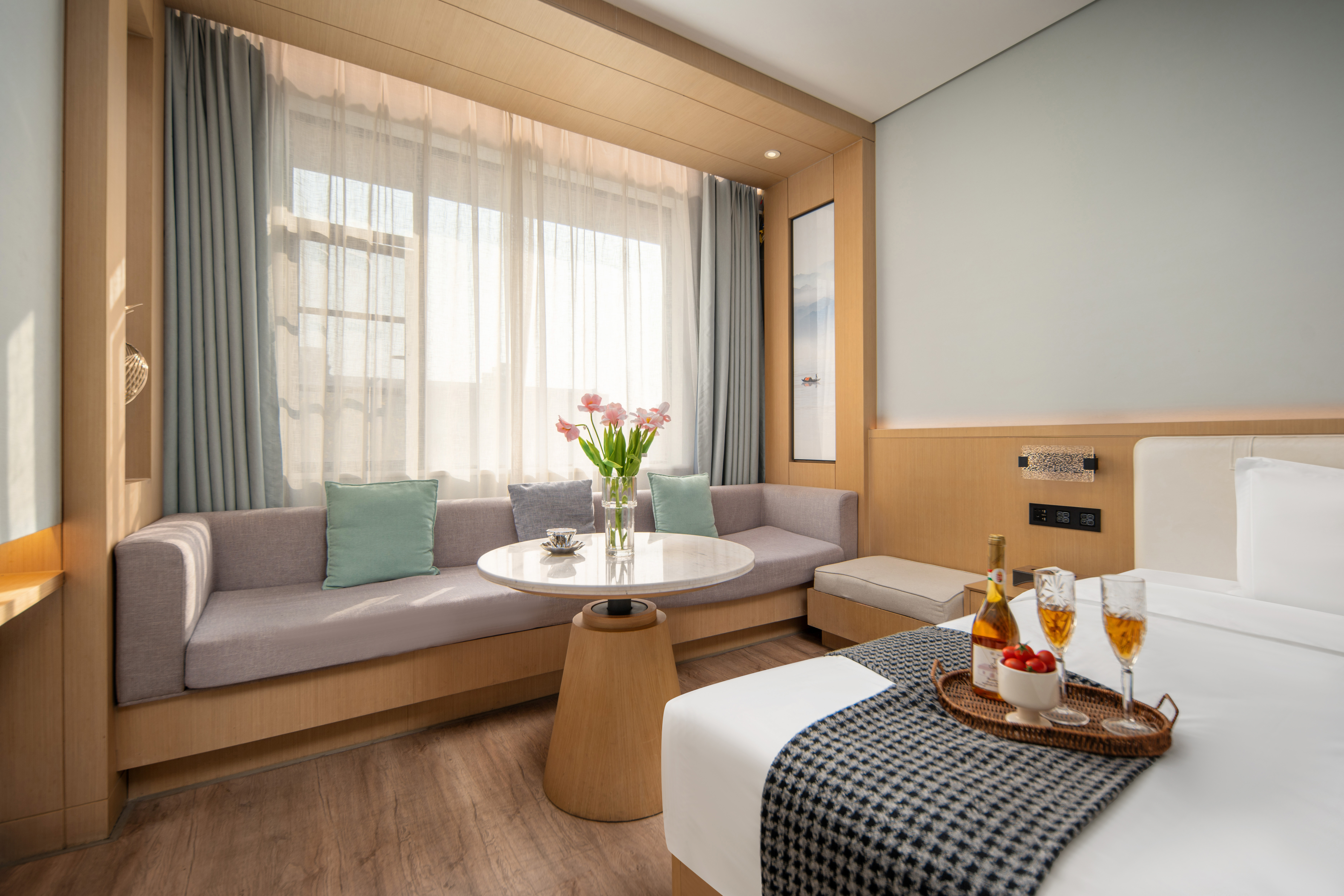 尊享套房+智能窗帘+浴缸+乳胶床垫+高级茶台