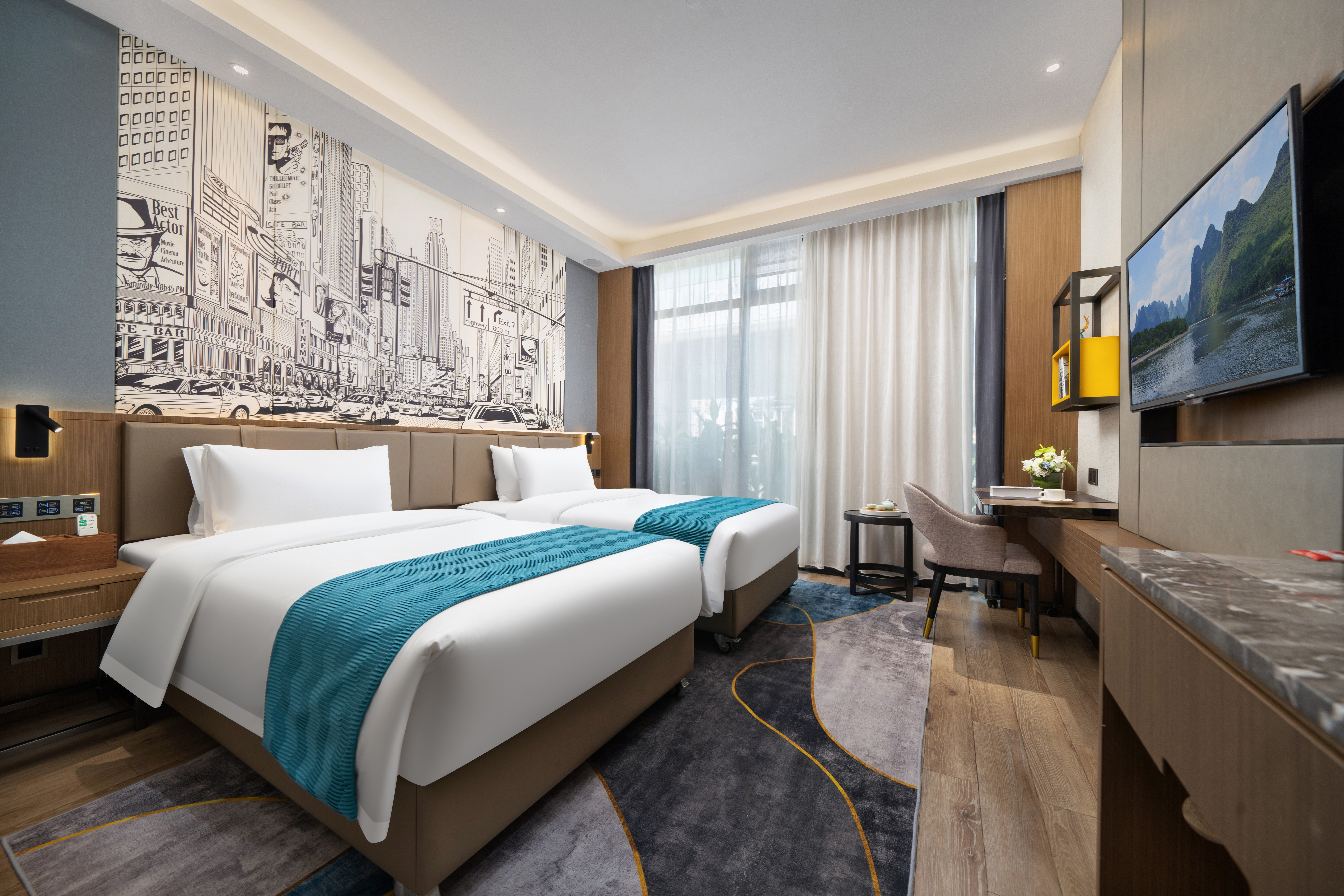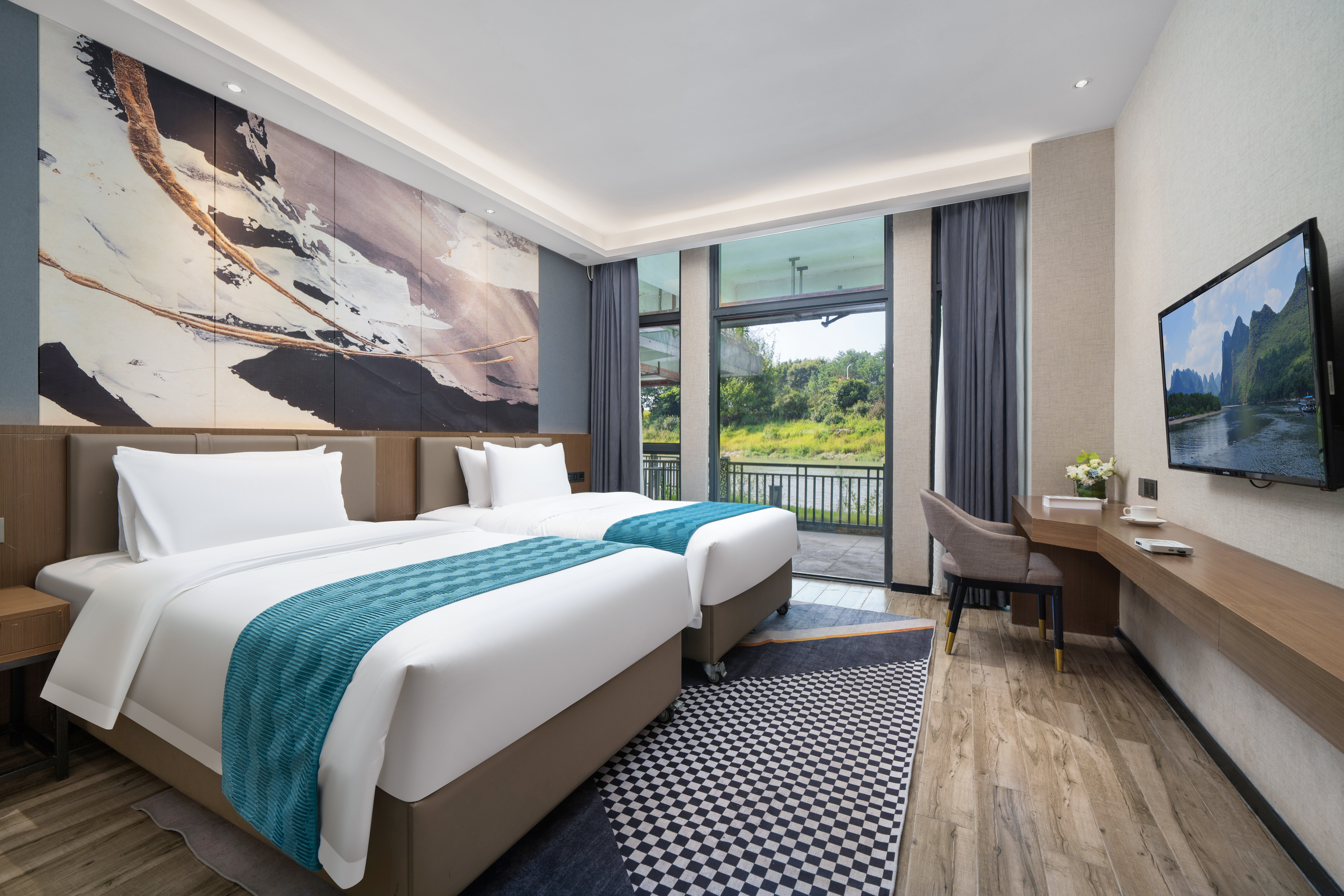 湖景双床房-电动窗帘+蓝牙音响