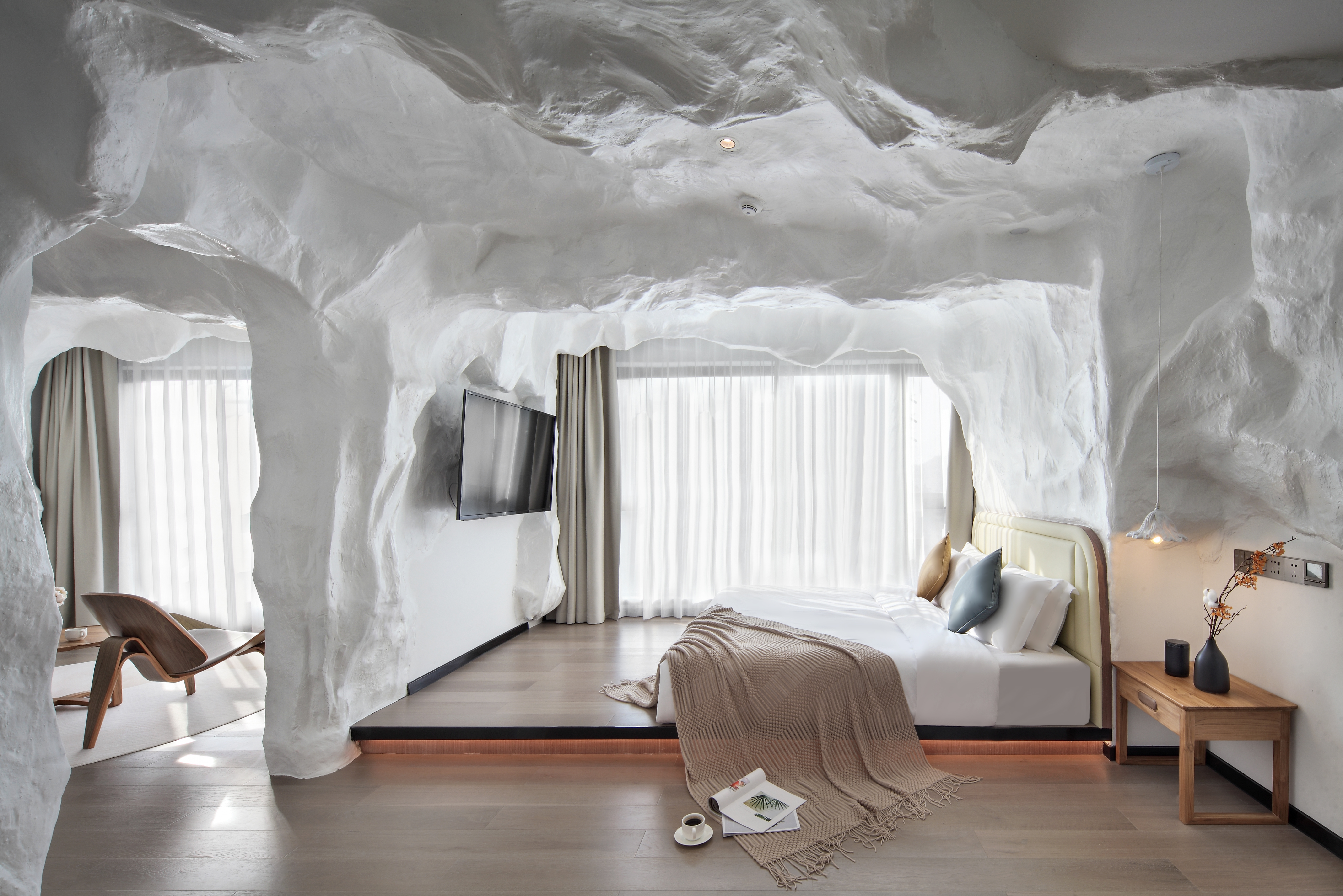 纯白梦幻||亲子洞穴大床房+童趣帐篷+摇摇马+星空泡池