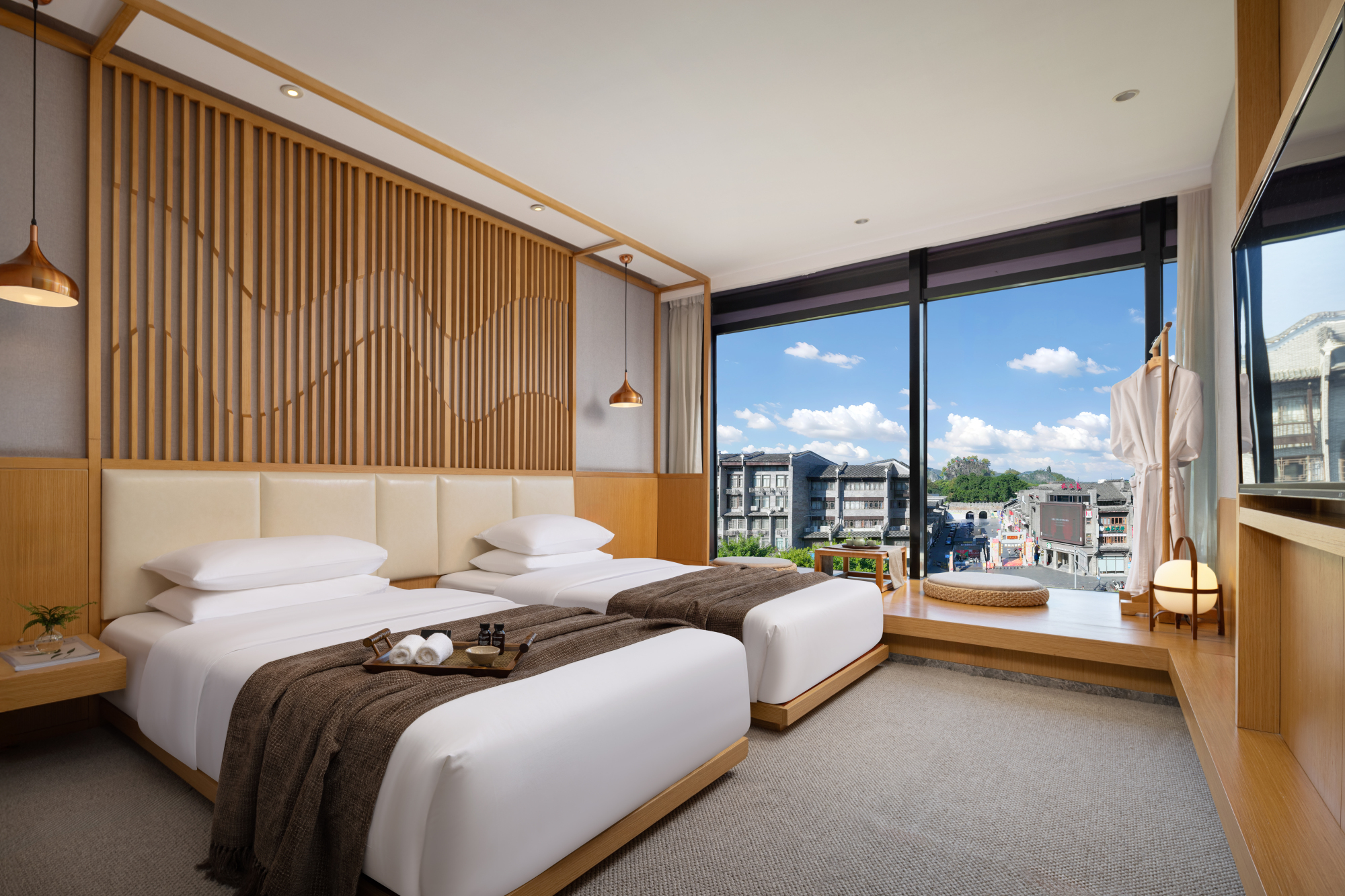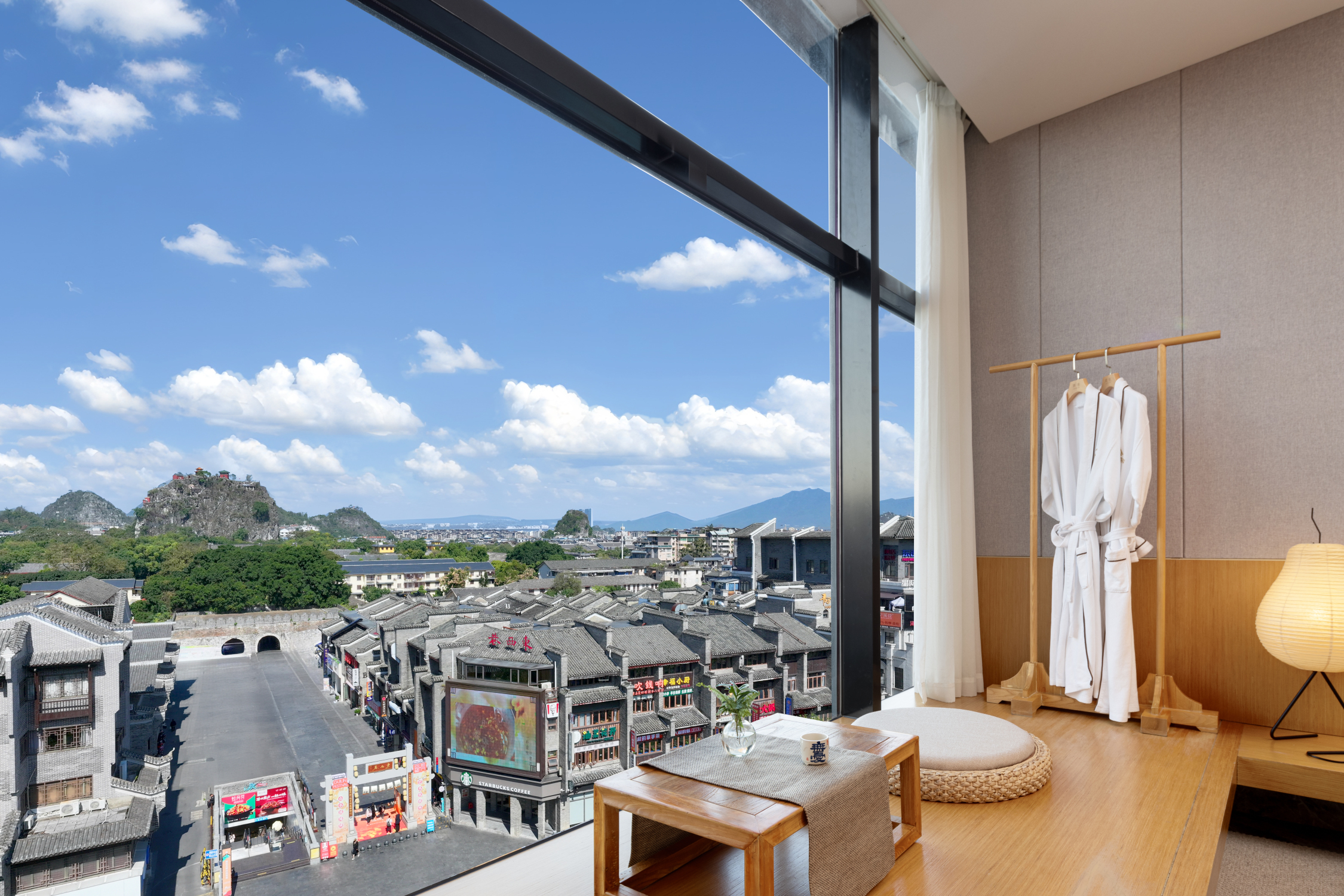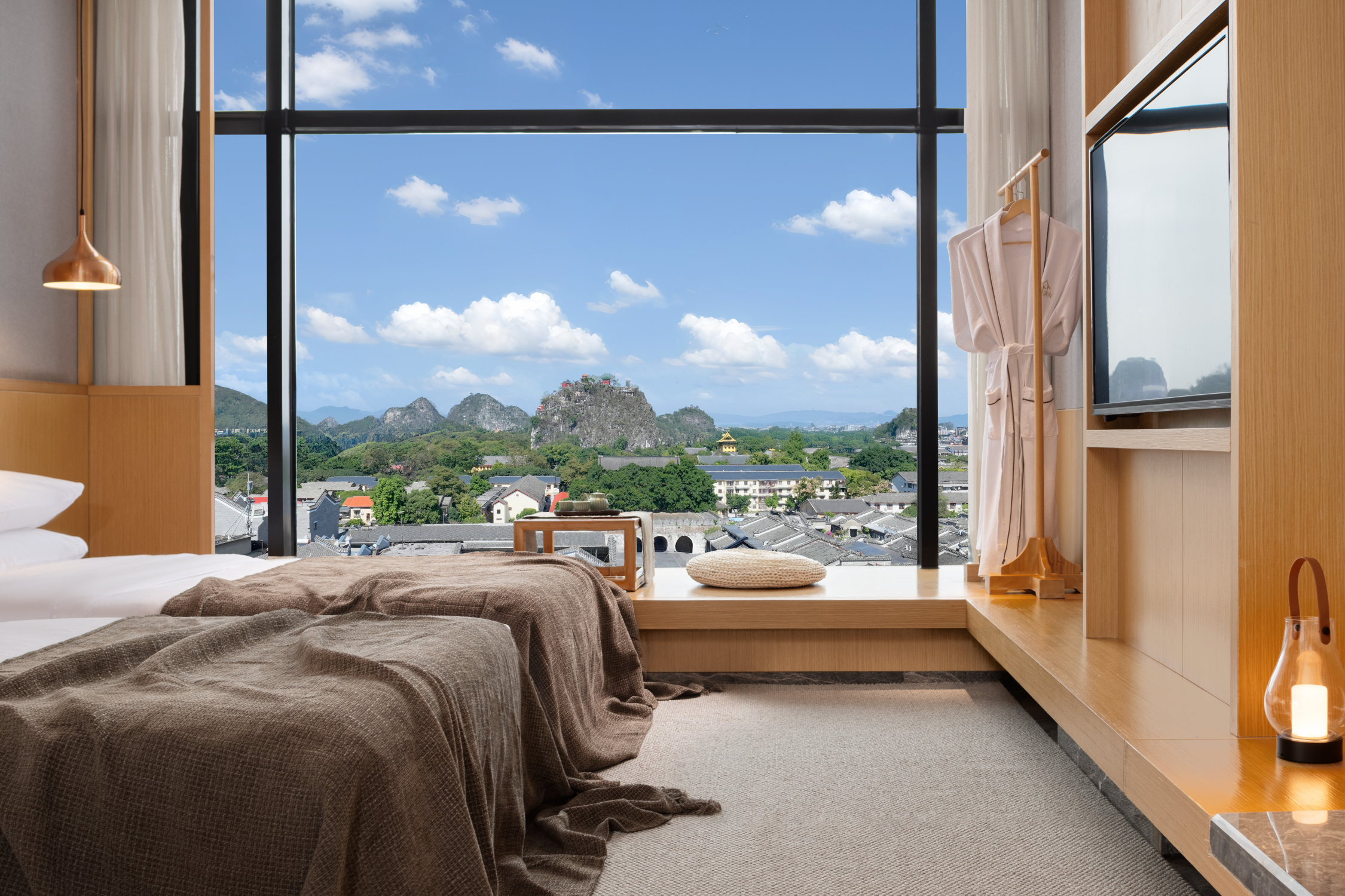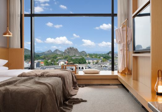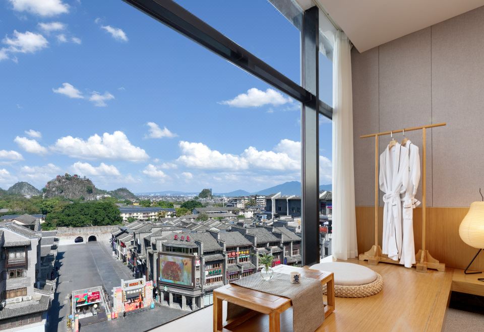 顶楼270°羣山如画全景套房丨躺看靖江王城东西古巷+赏醉美晚霞+观景圆形浴缸