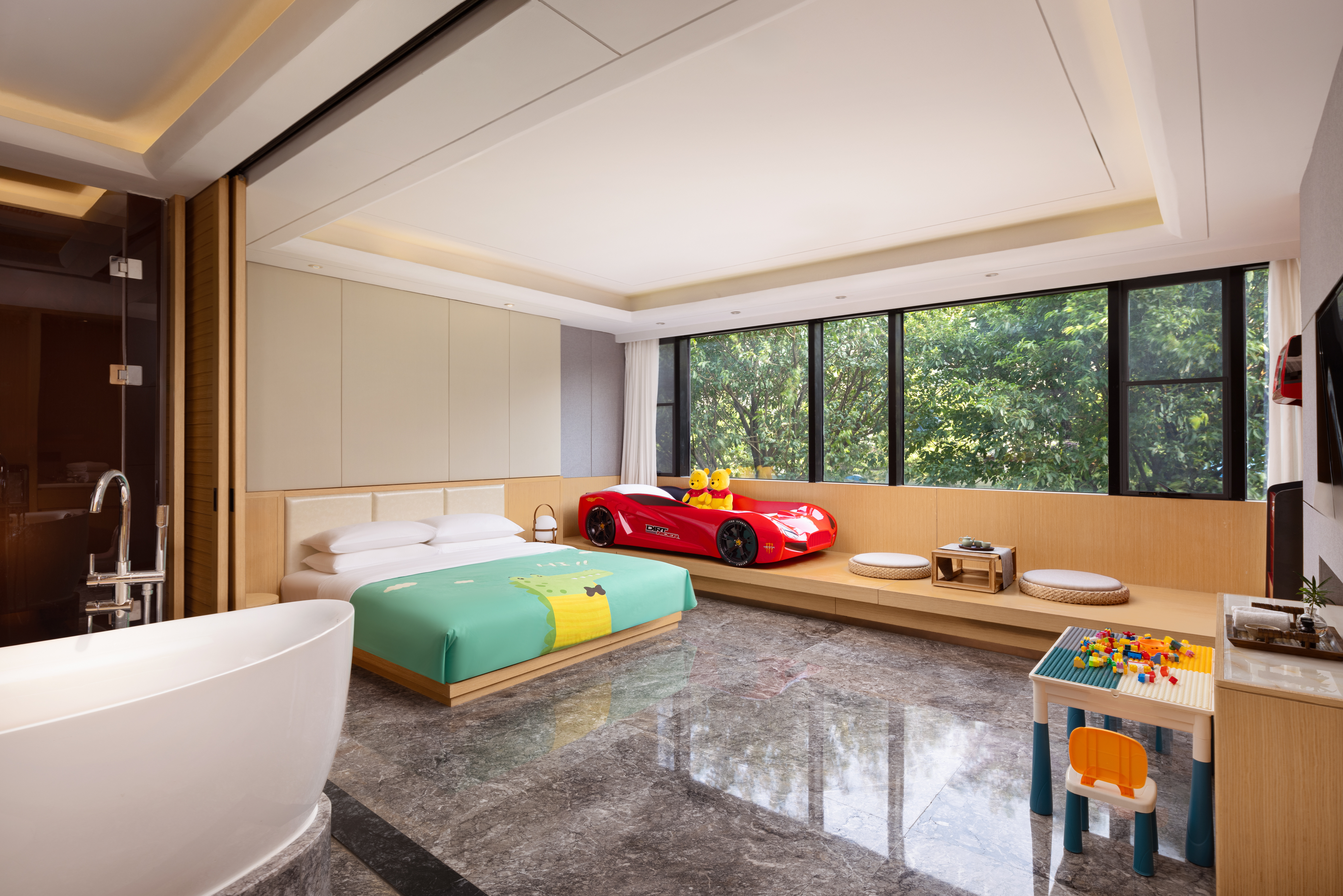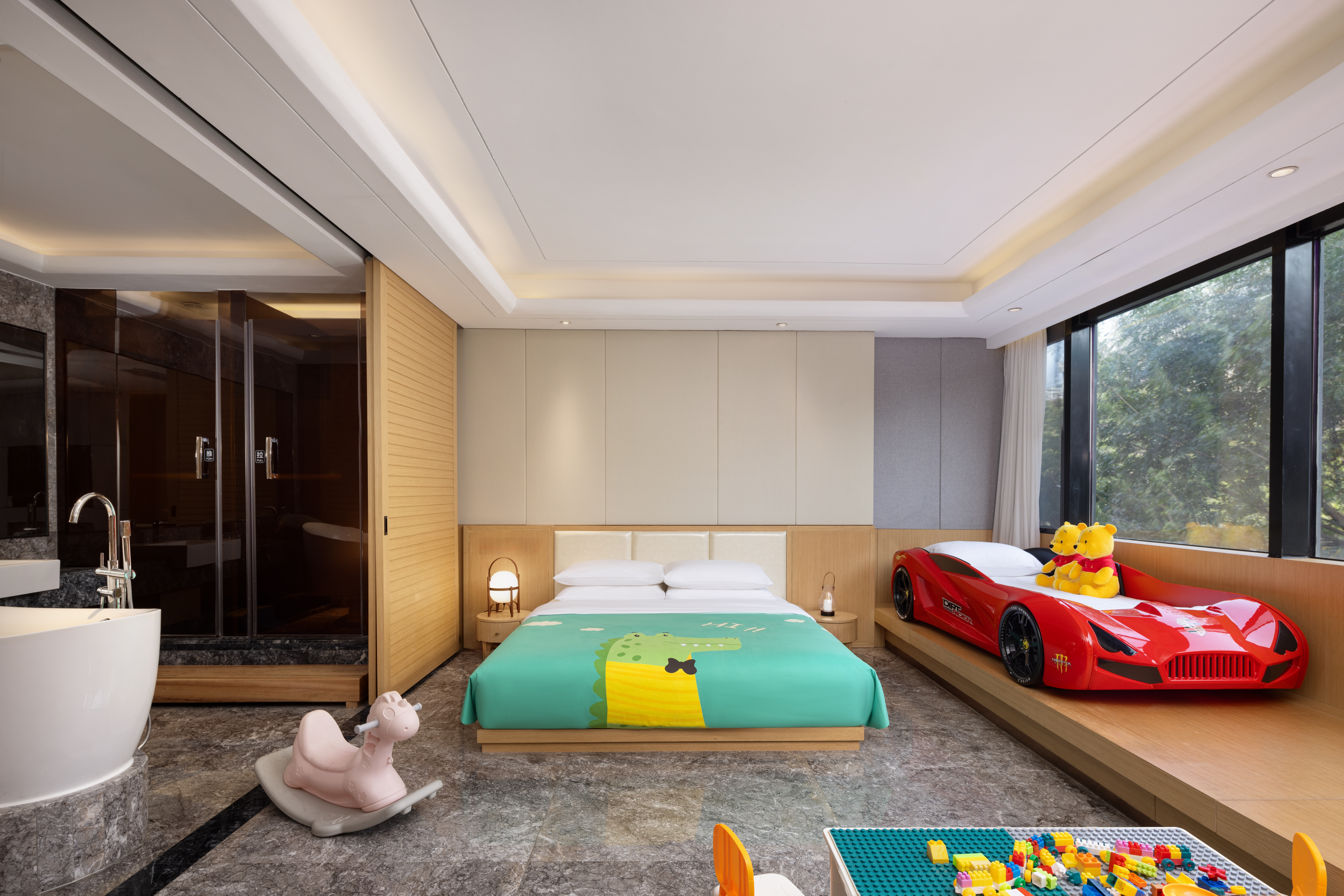 炫酷赛车亲子房 | LED紫外线杀菌除蟎+戏水浴缸+小童玩具