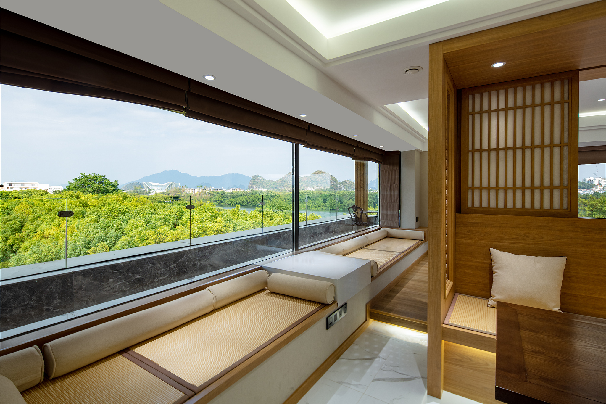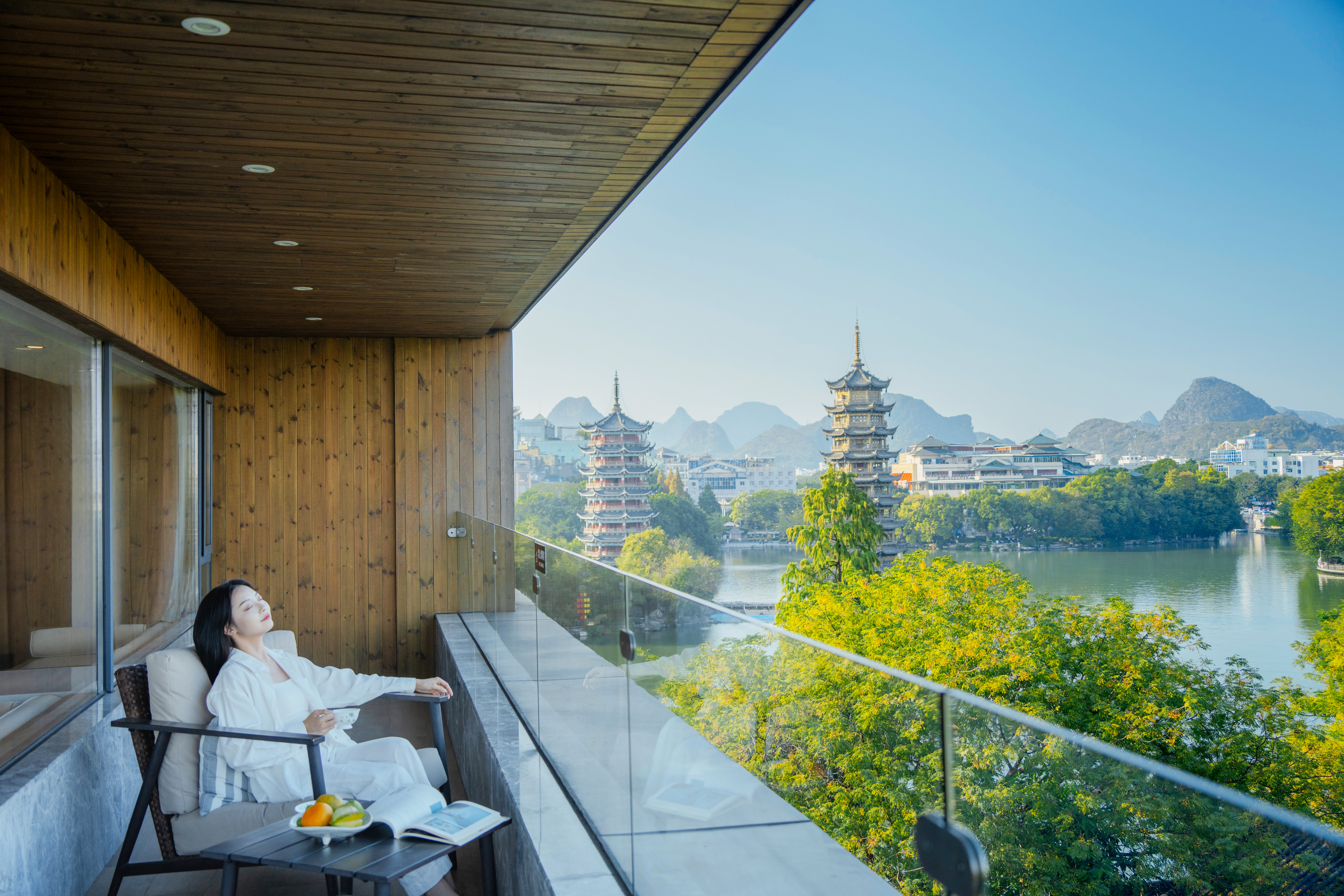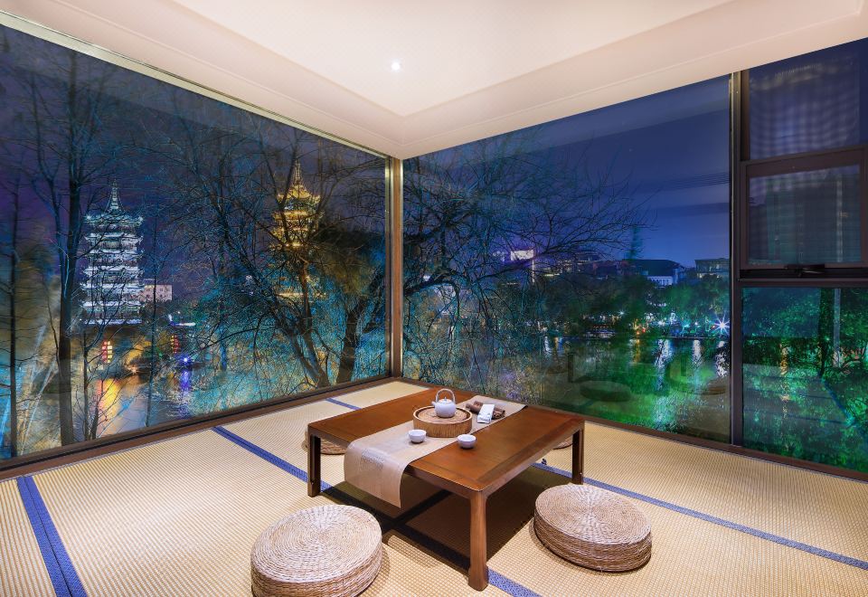 双塔湖景套房|独立会客厅|榻榻米全景茶室|超大露台