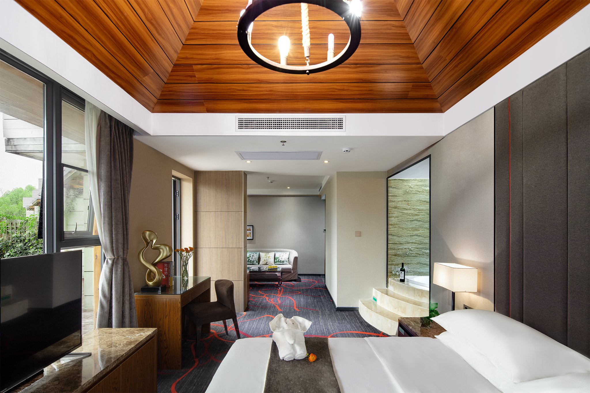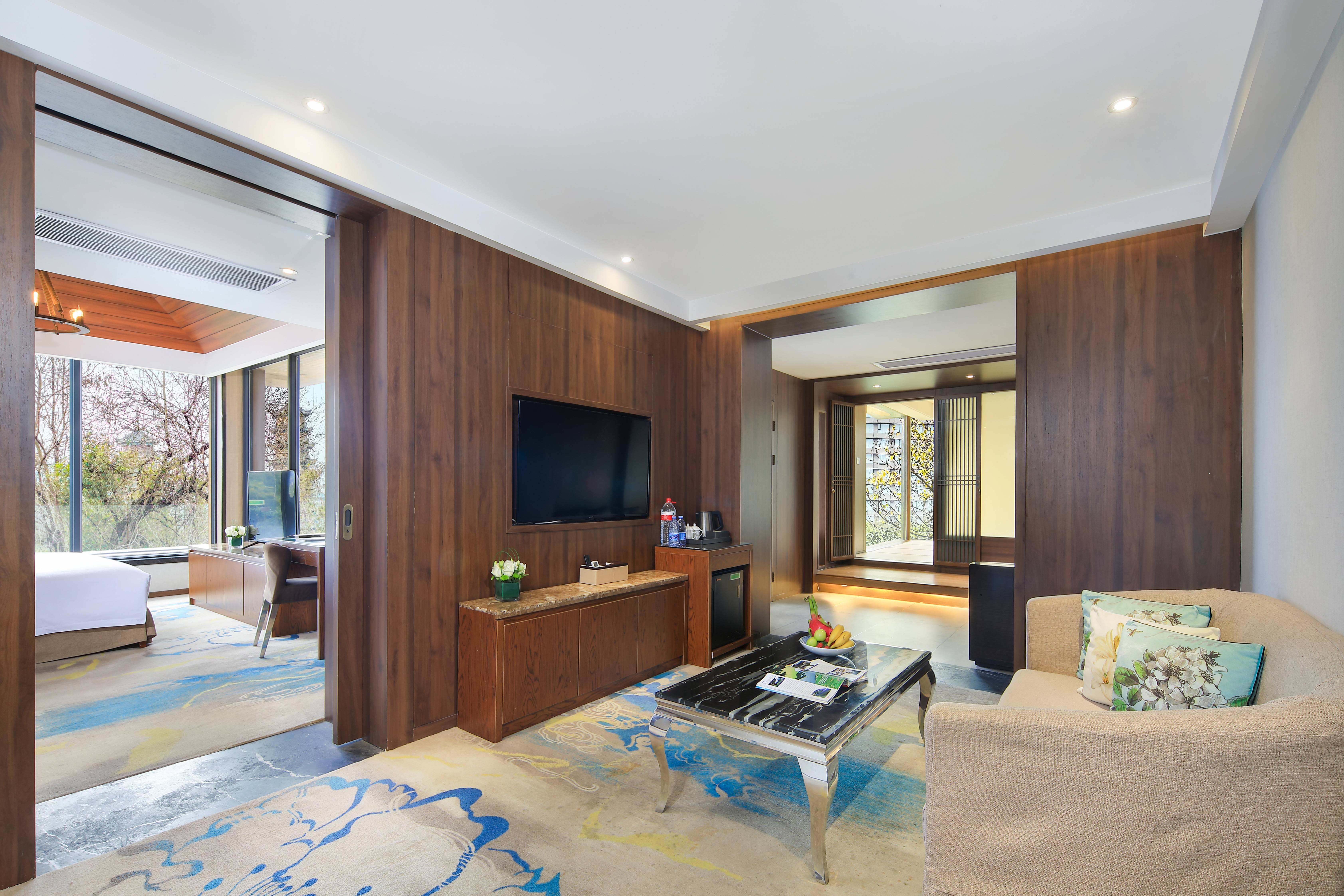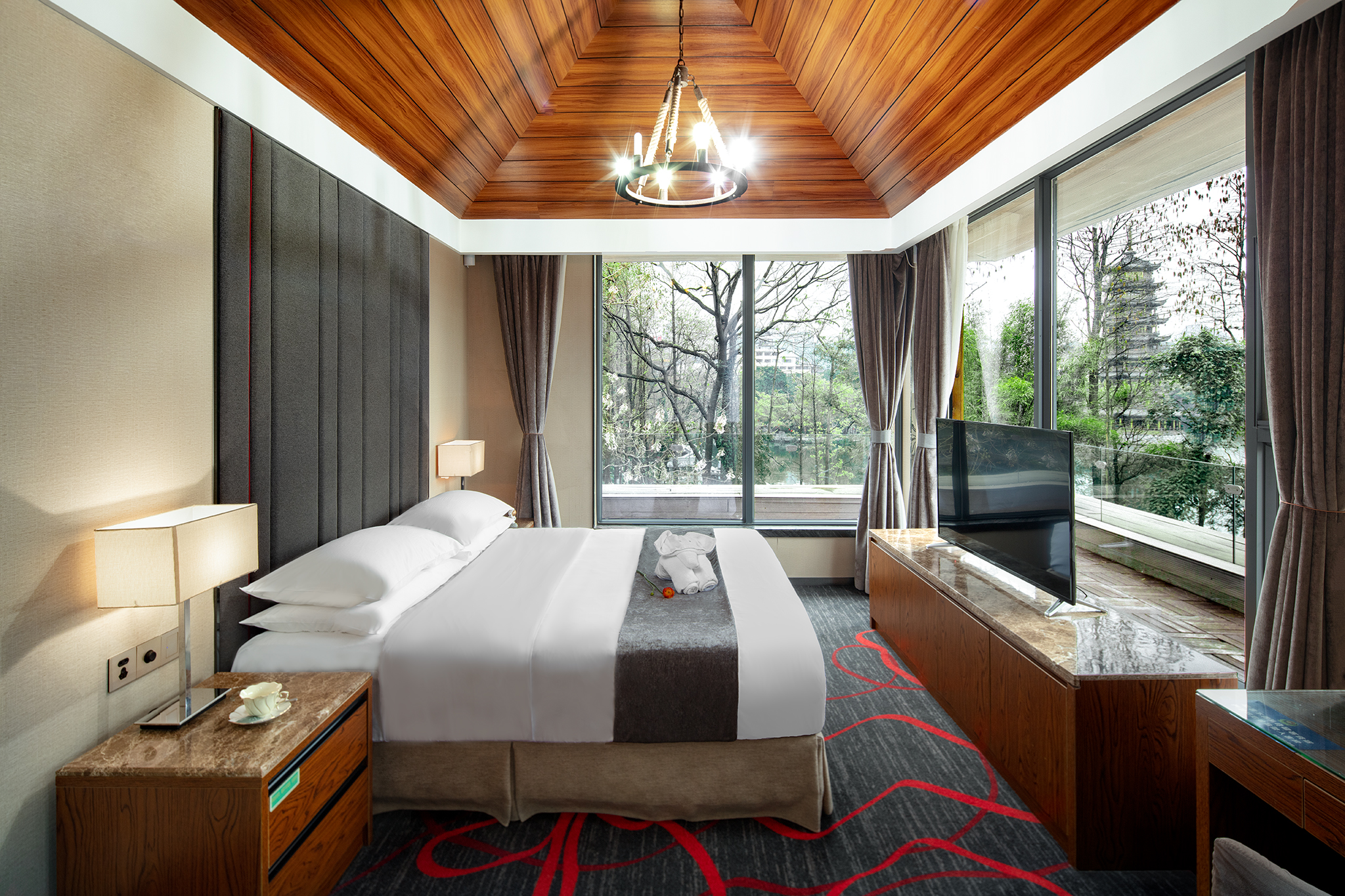 双塔湖景套房|独立会客厅|榻榻米全景茶室|超大露台