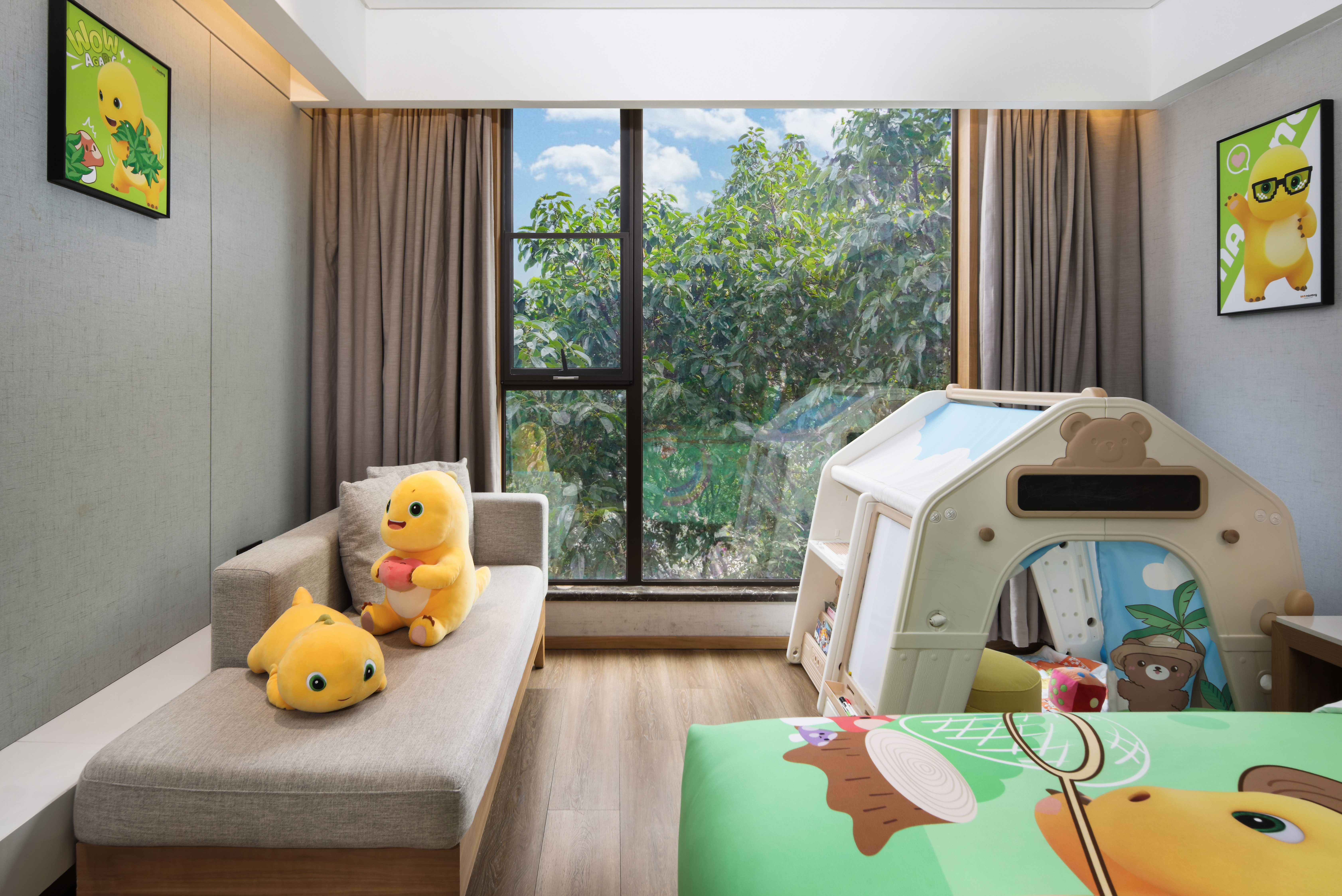 亲子童趣 | 可爱奶龙主题双床房 | 帐篷 | 小童玩偶